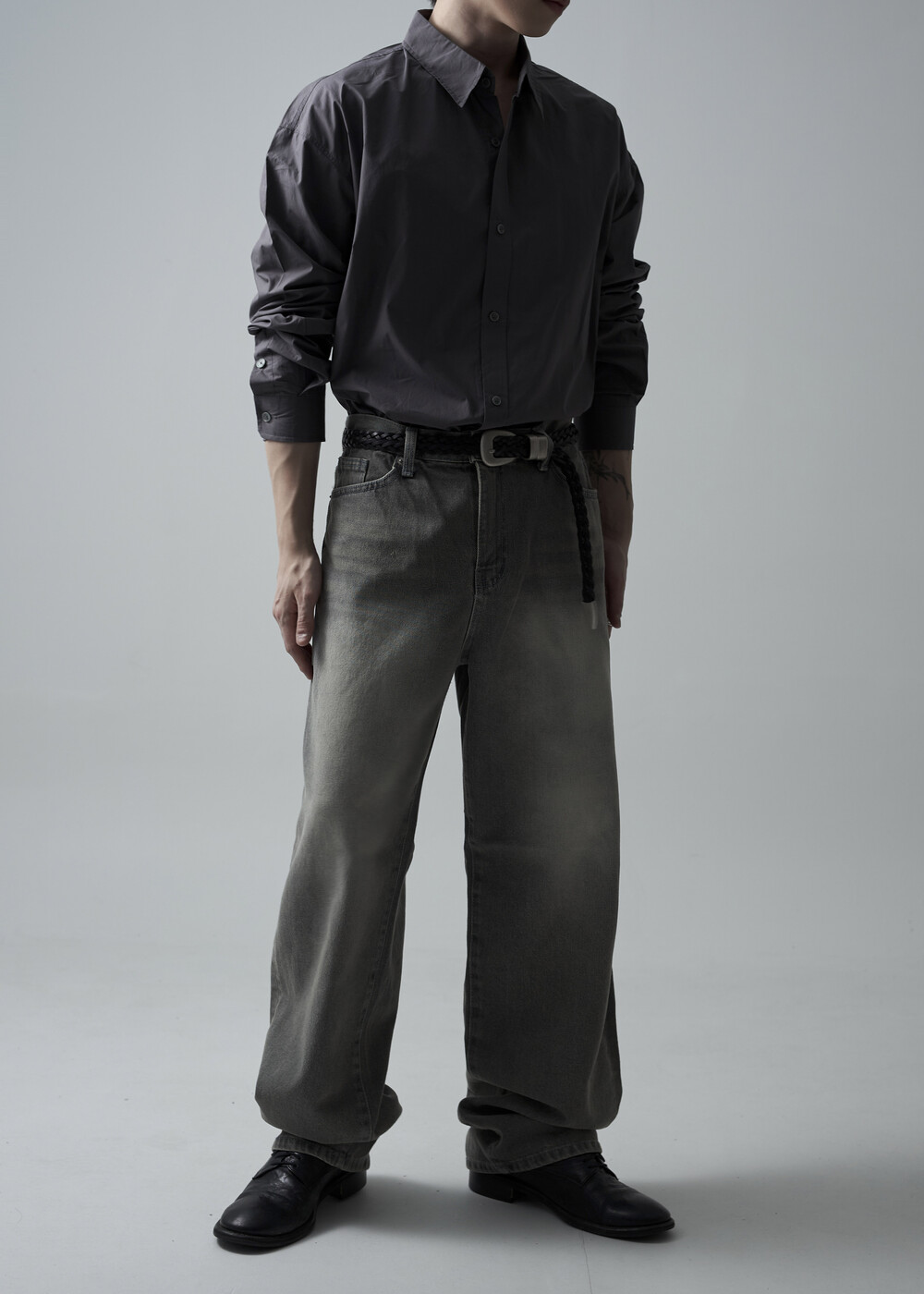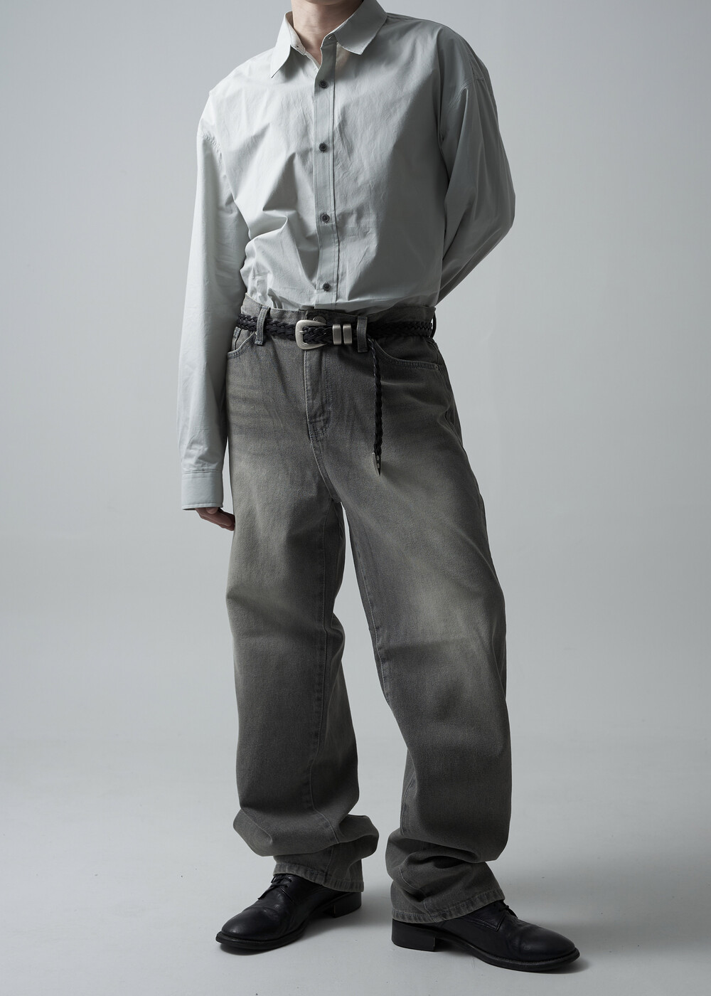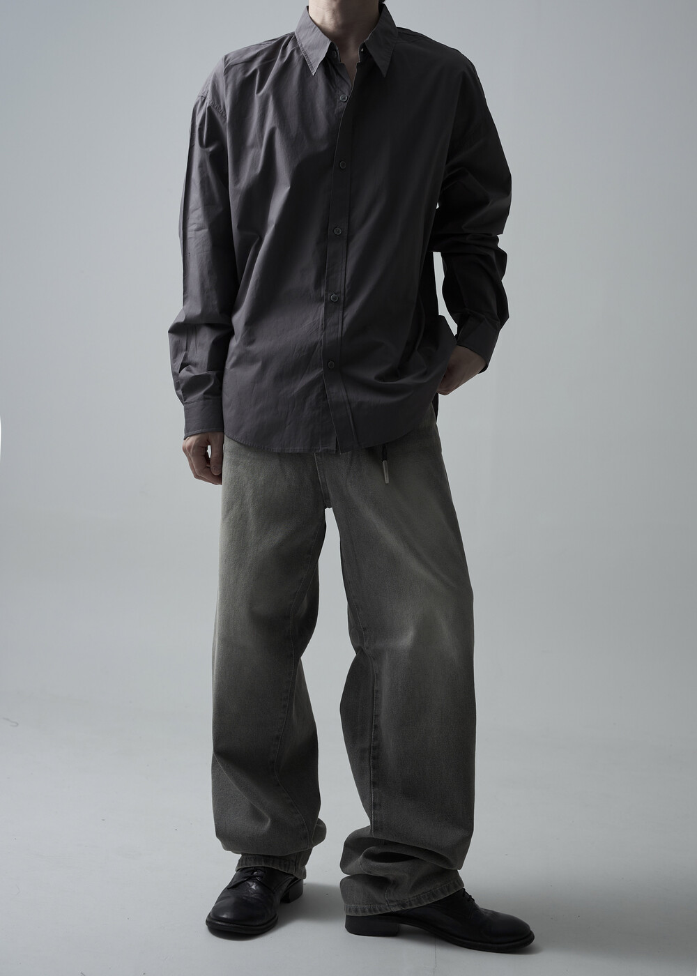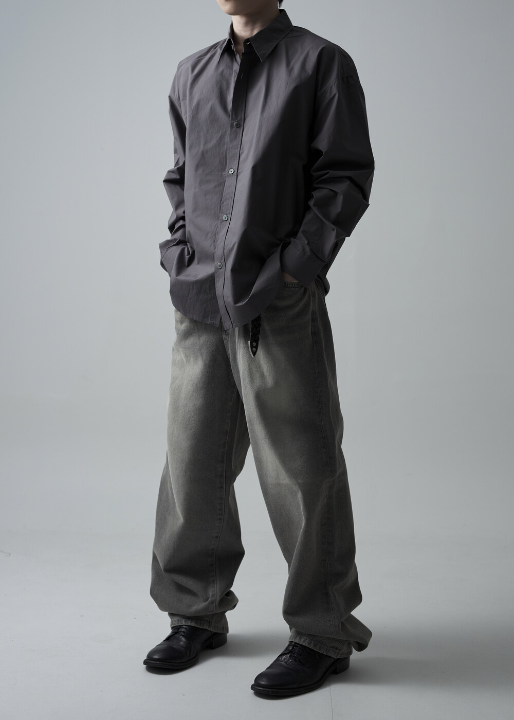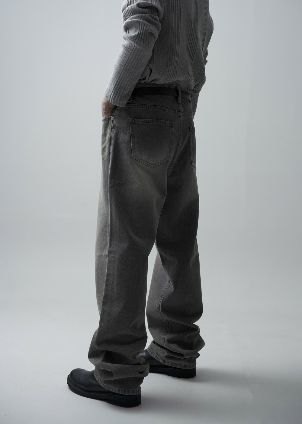 - 그레이 컬러 데님원단에 베이지 컬러감의 틴 염색을 통해 은은하게 웜한 컬러감 연출