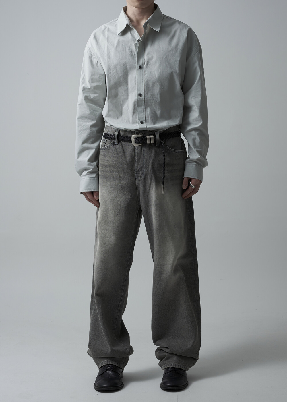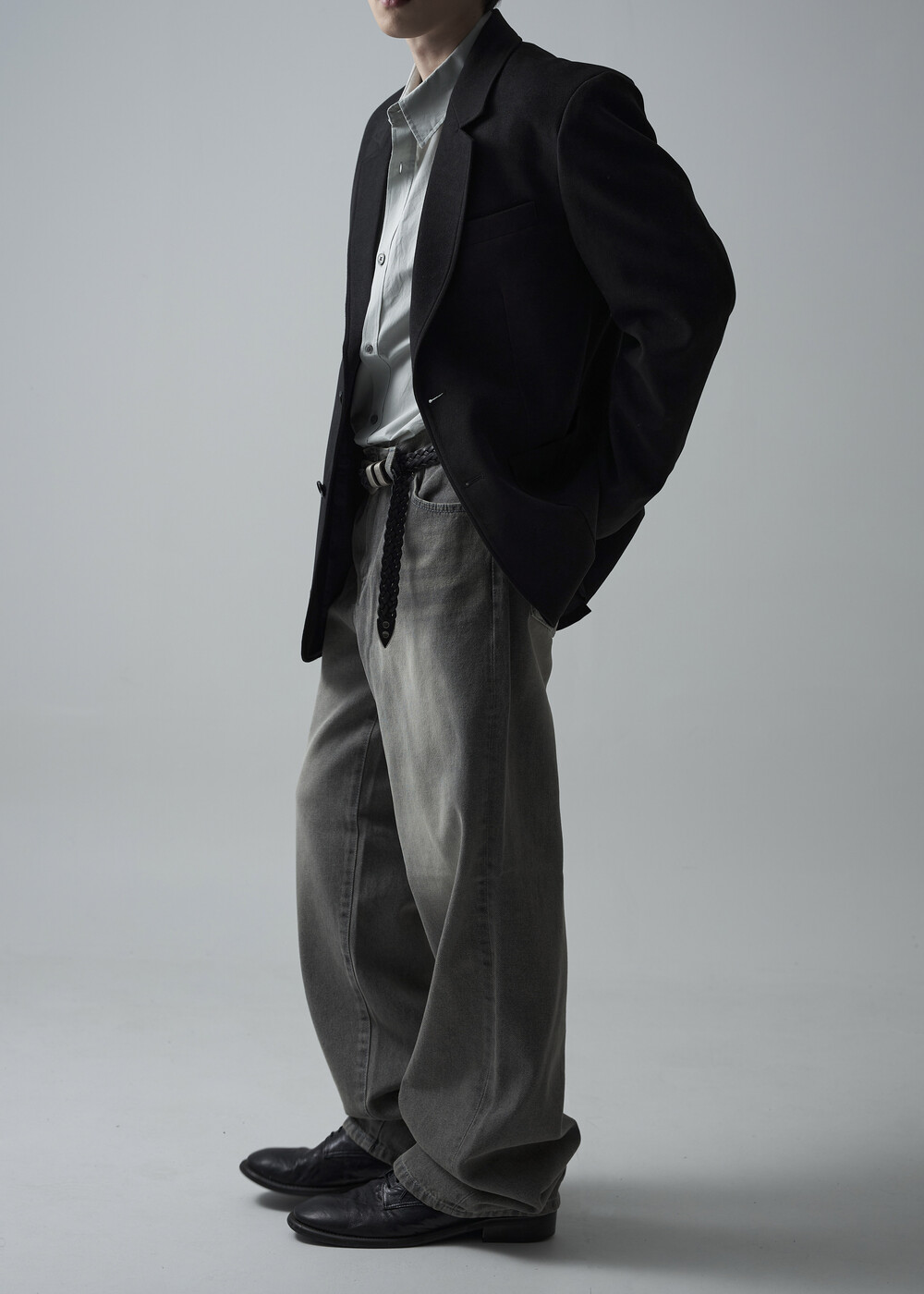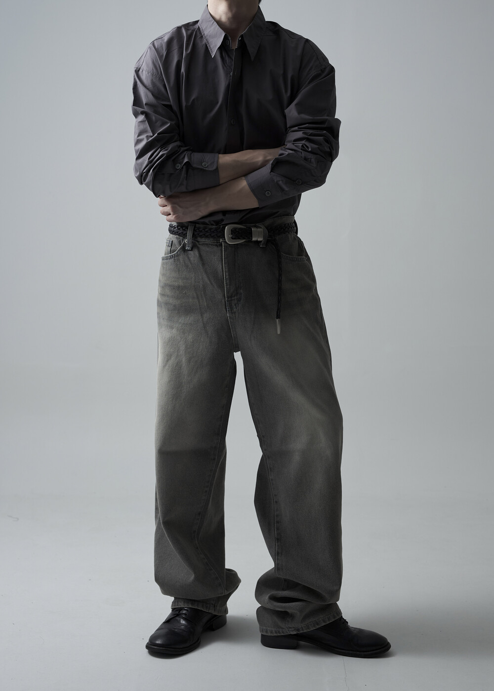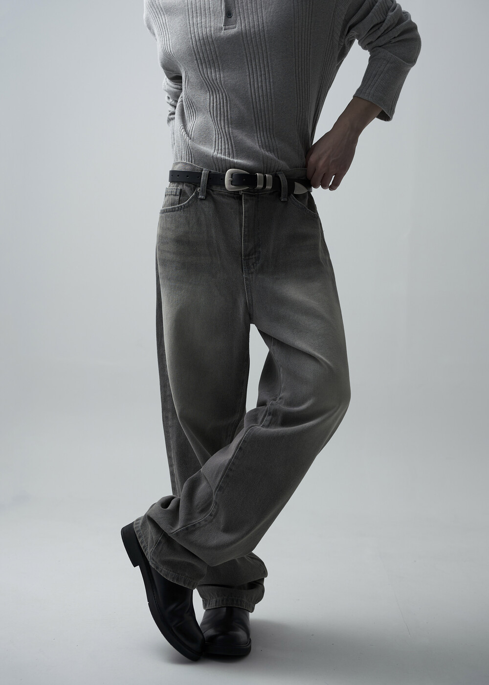 - 그레이 컬러 데님원단에 베이지 컬러감의 틴 염색을 통해 은은하게 웜한 컬러감 연출