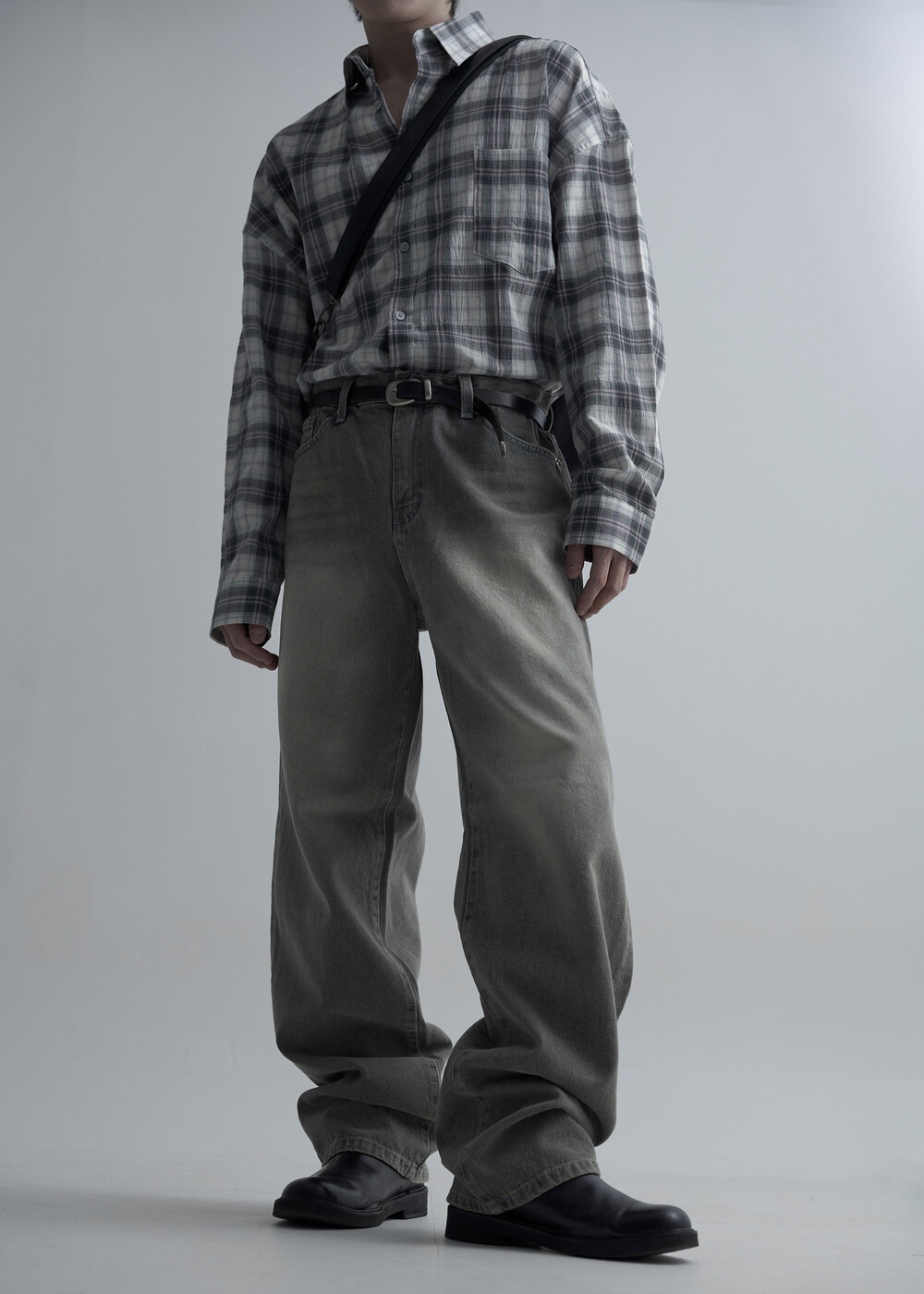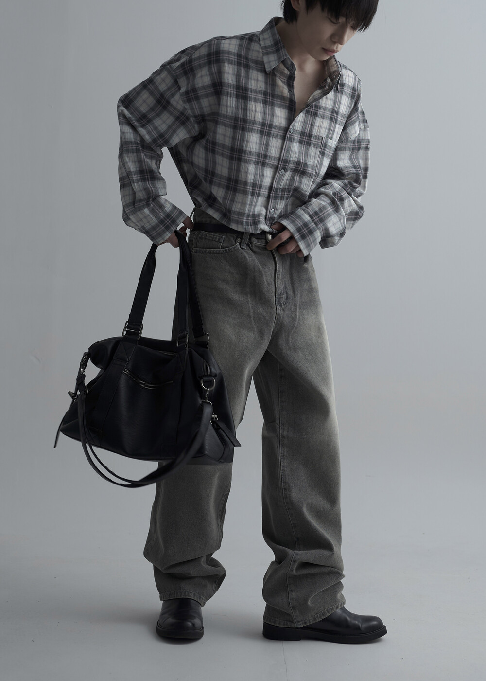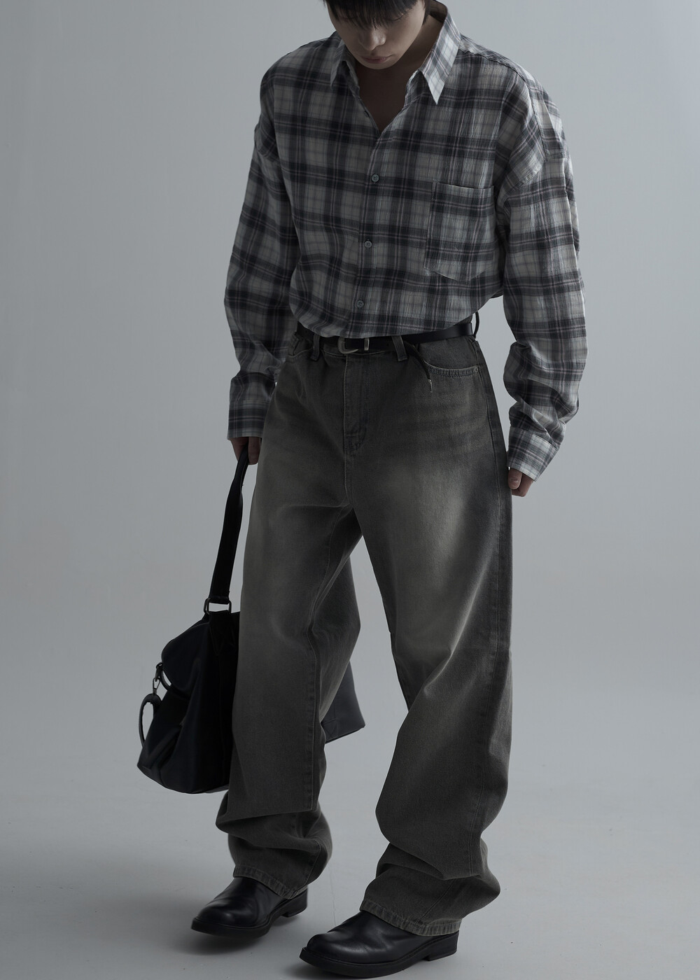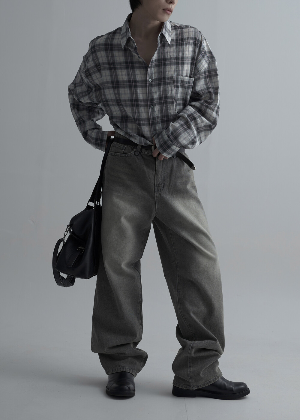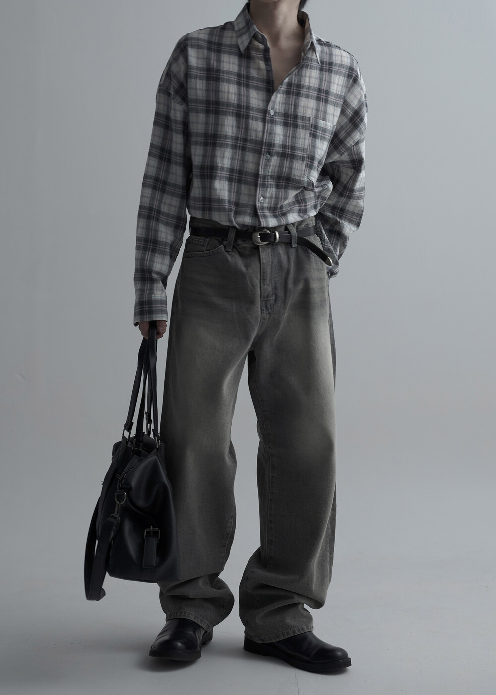 - 그레이 컬러 데님원단에 베이지 컬러감의 틴 염색을 통해 은은하게 웜한 컬러감 연출