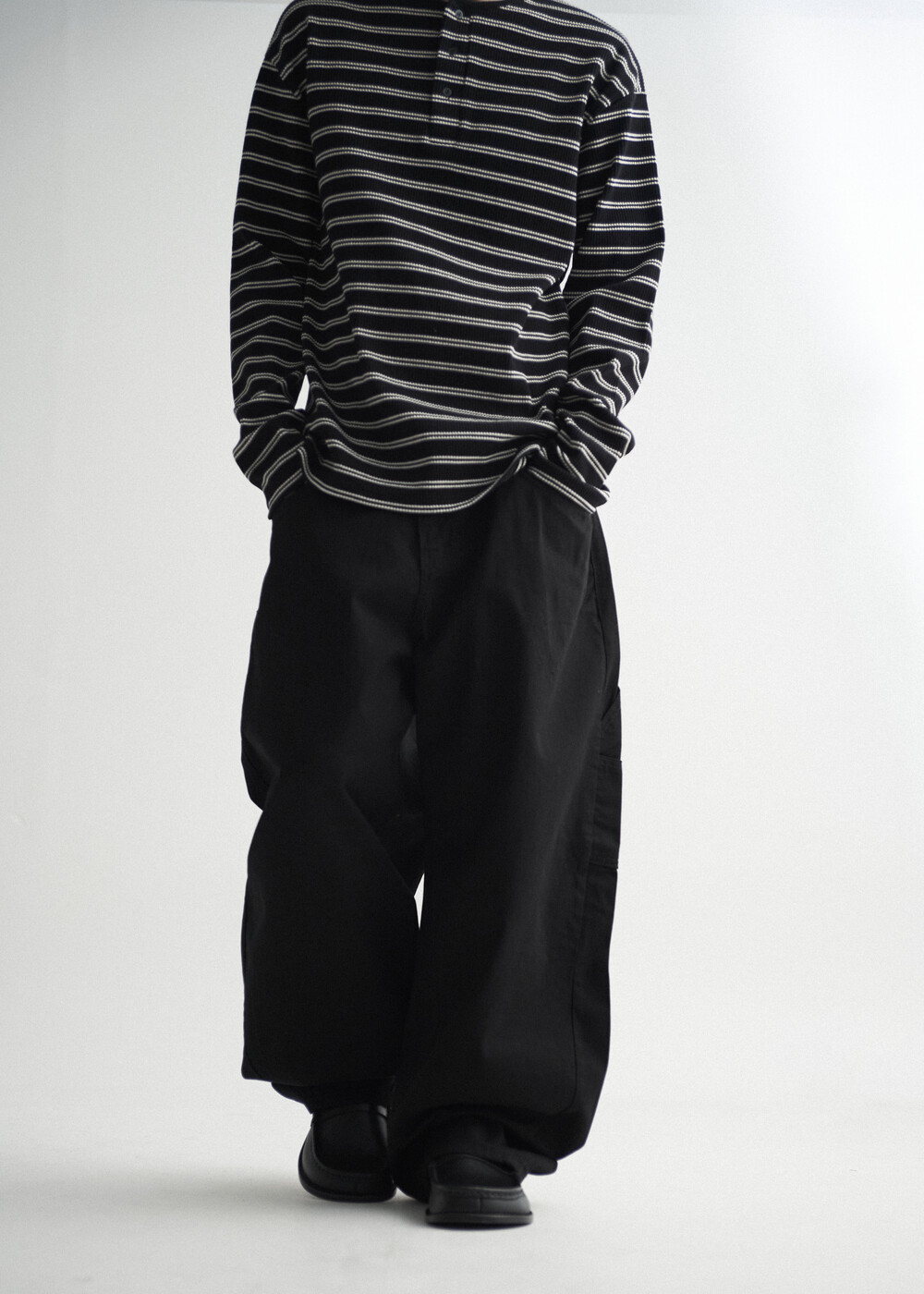 - 커브드 디테일의 벌룬 와이드 핏 코튼 팬츠 제품