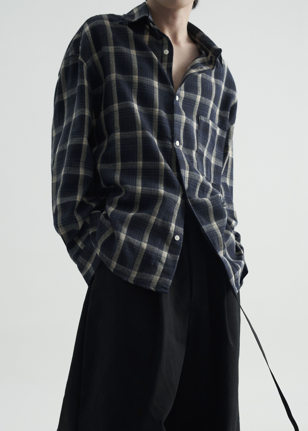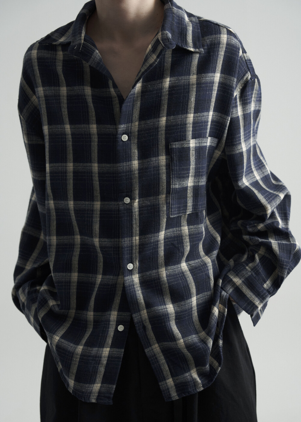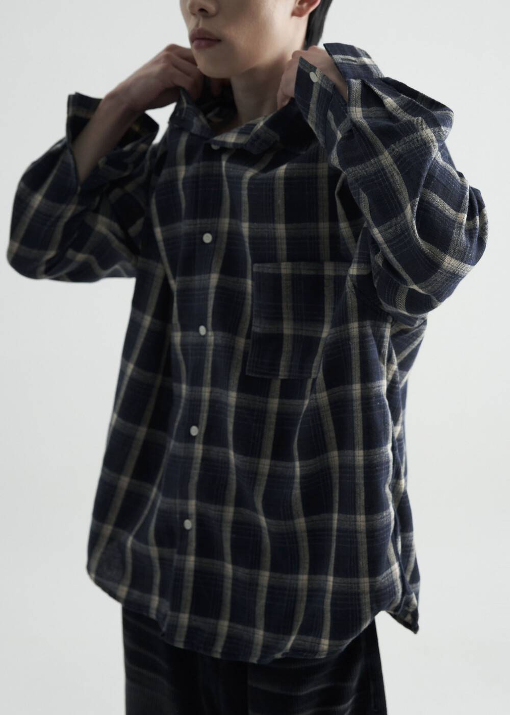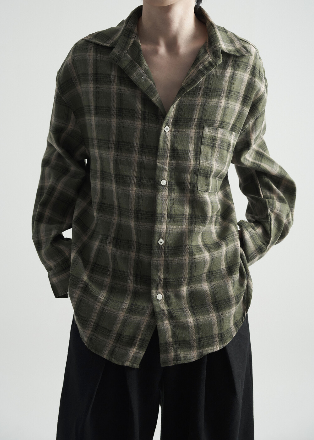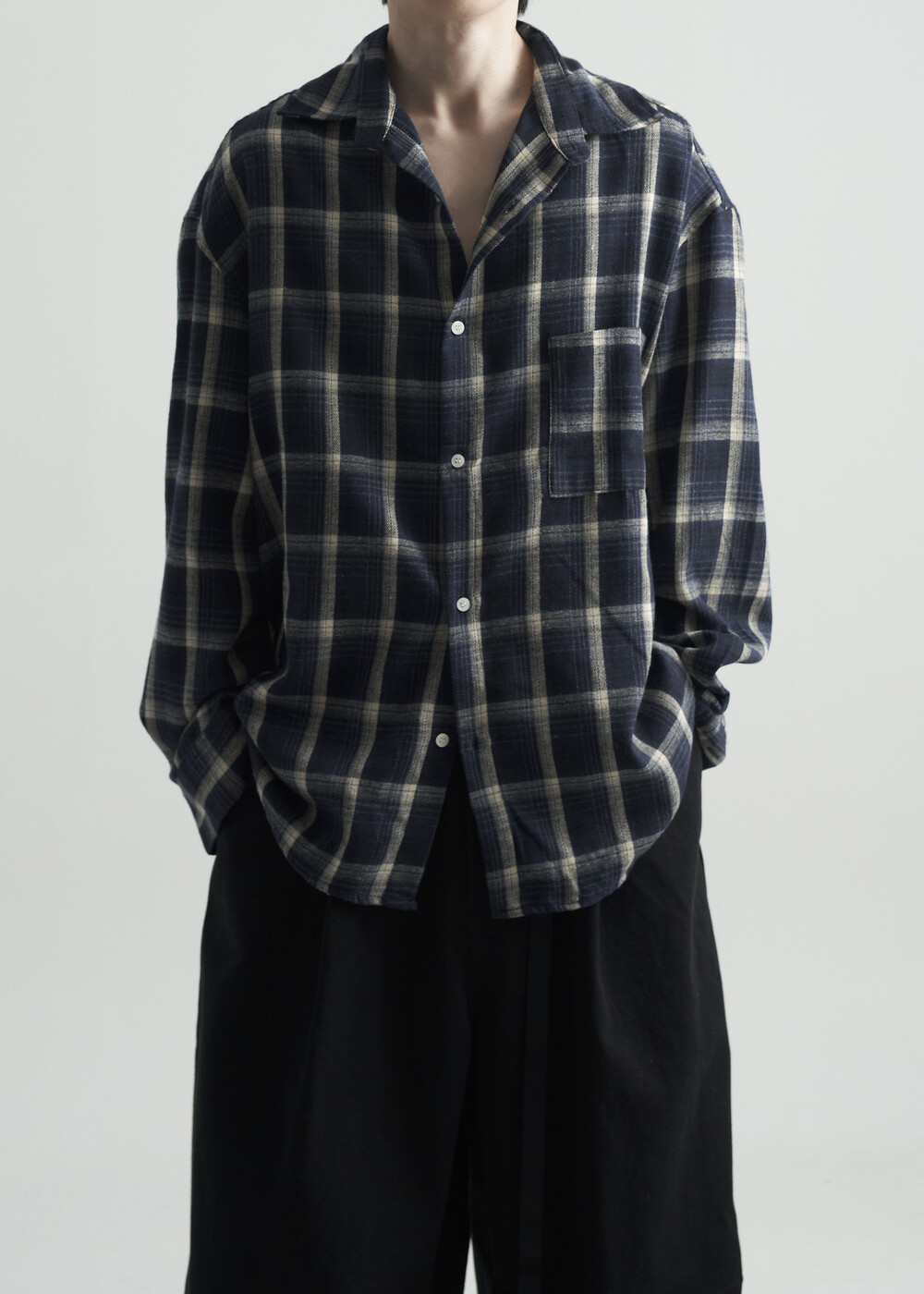 - 루즈한 실루엣의 클래식 카라가 적용된 체크 패턴의 셔츠 제품