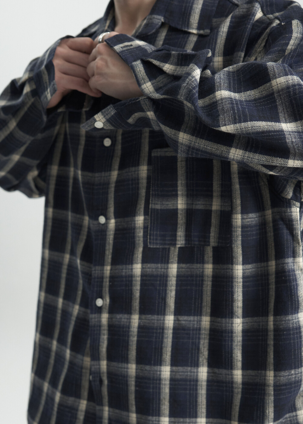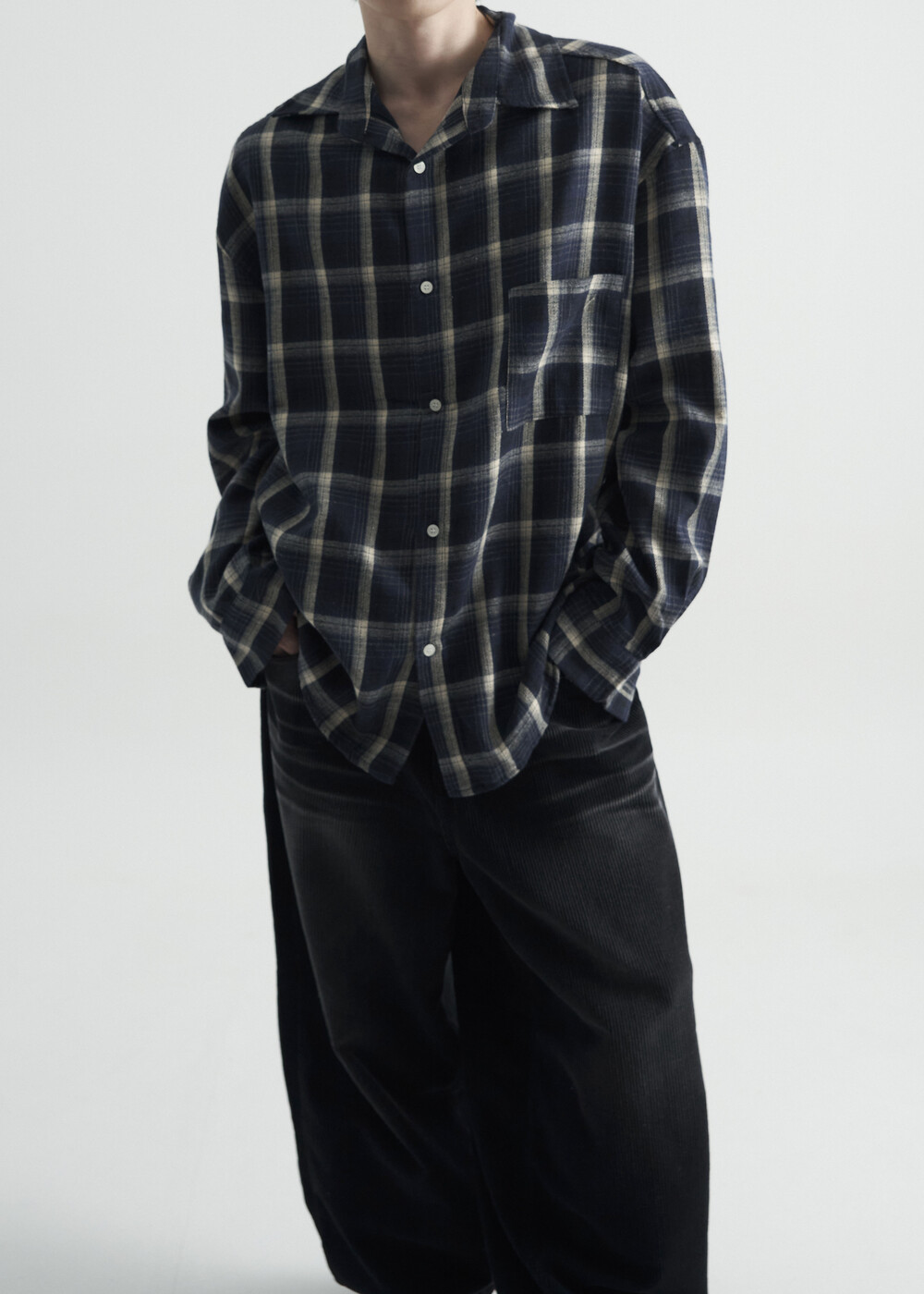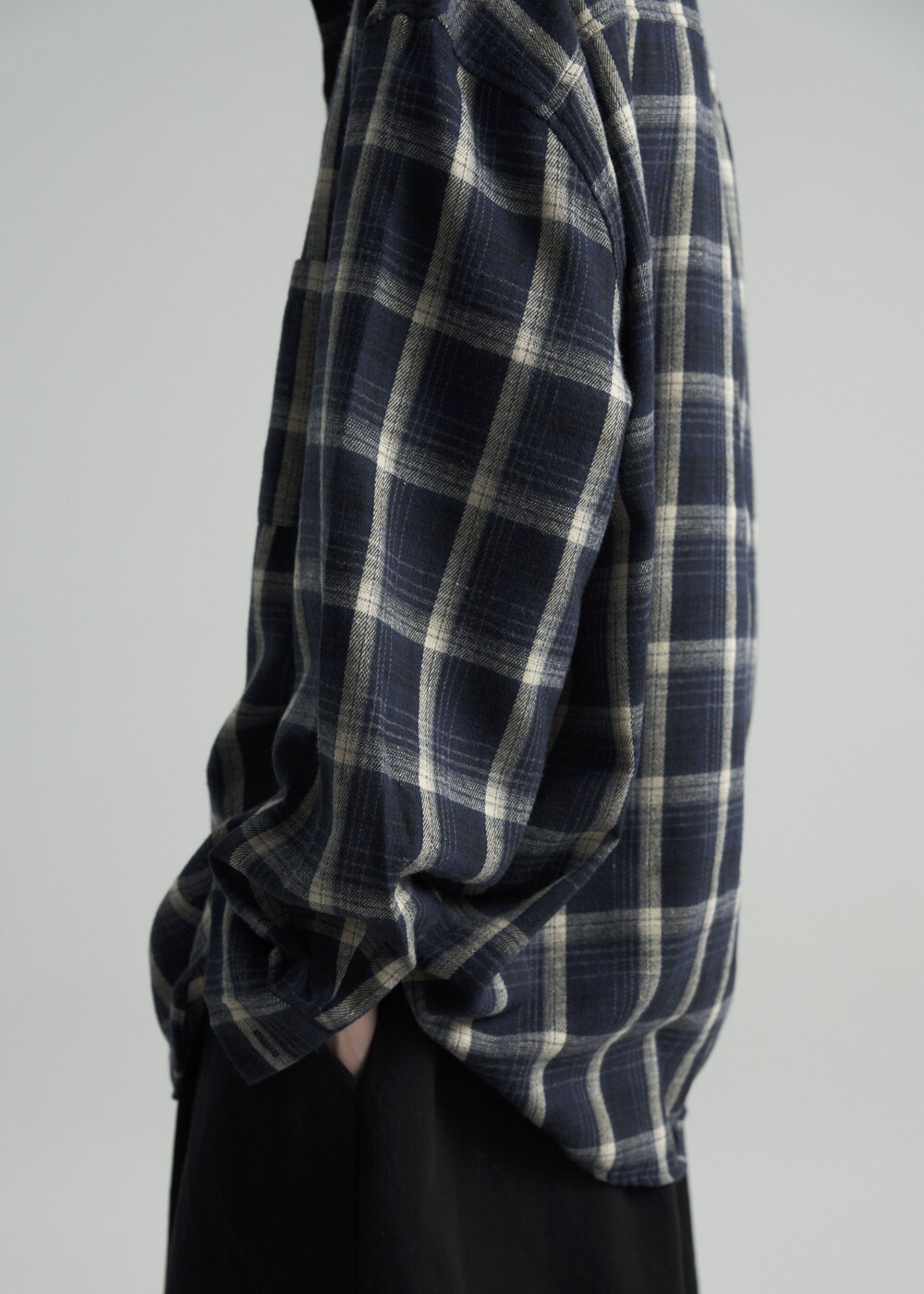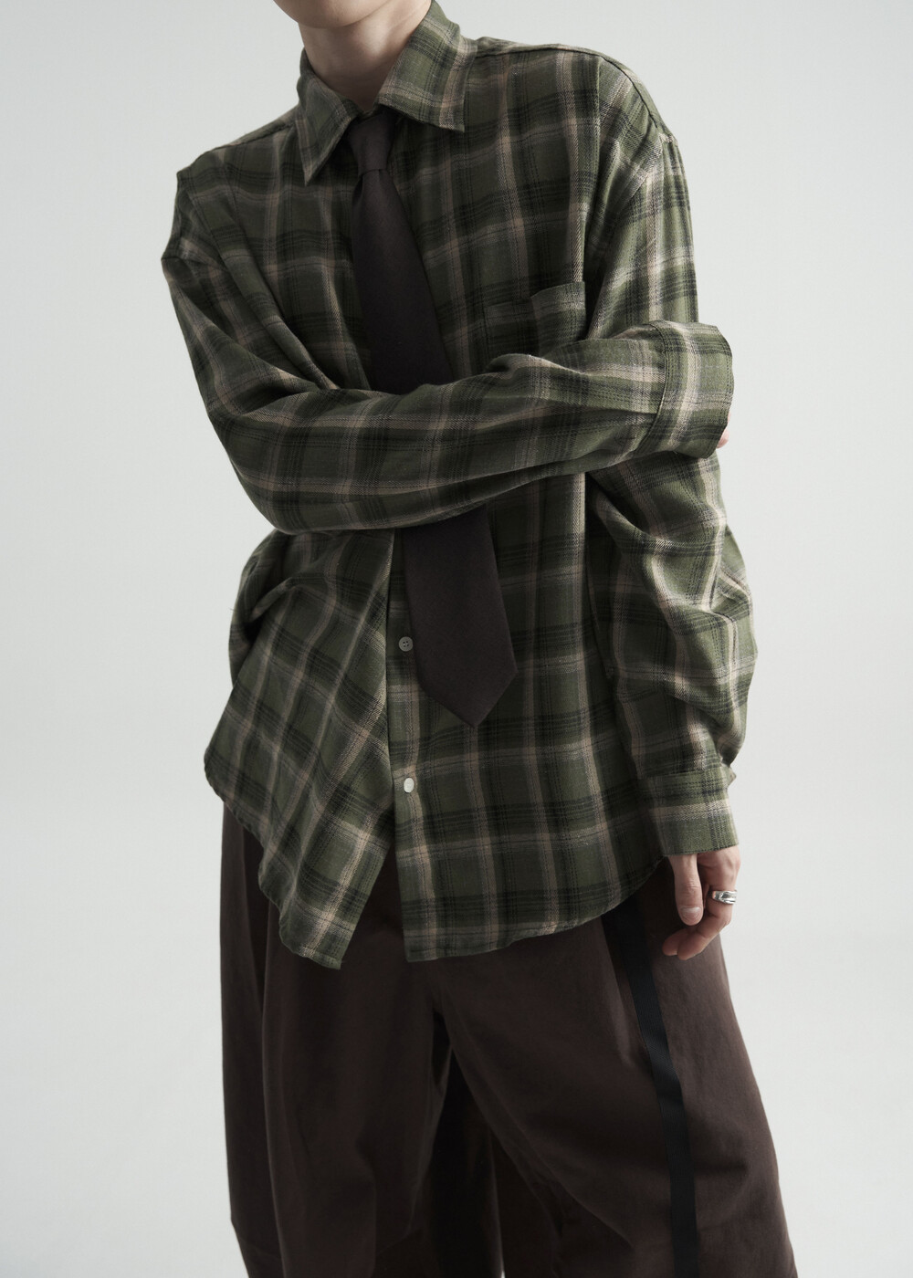 - 루즈한 실루엣의 클래식 카라가 적용된 체크 패턴의 셔츠 제품