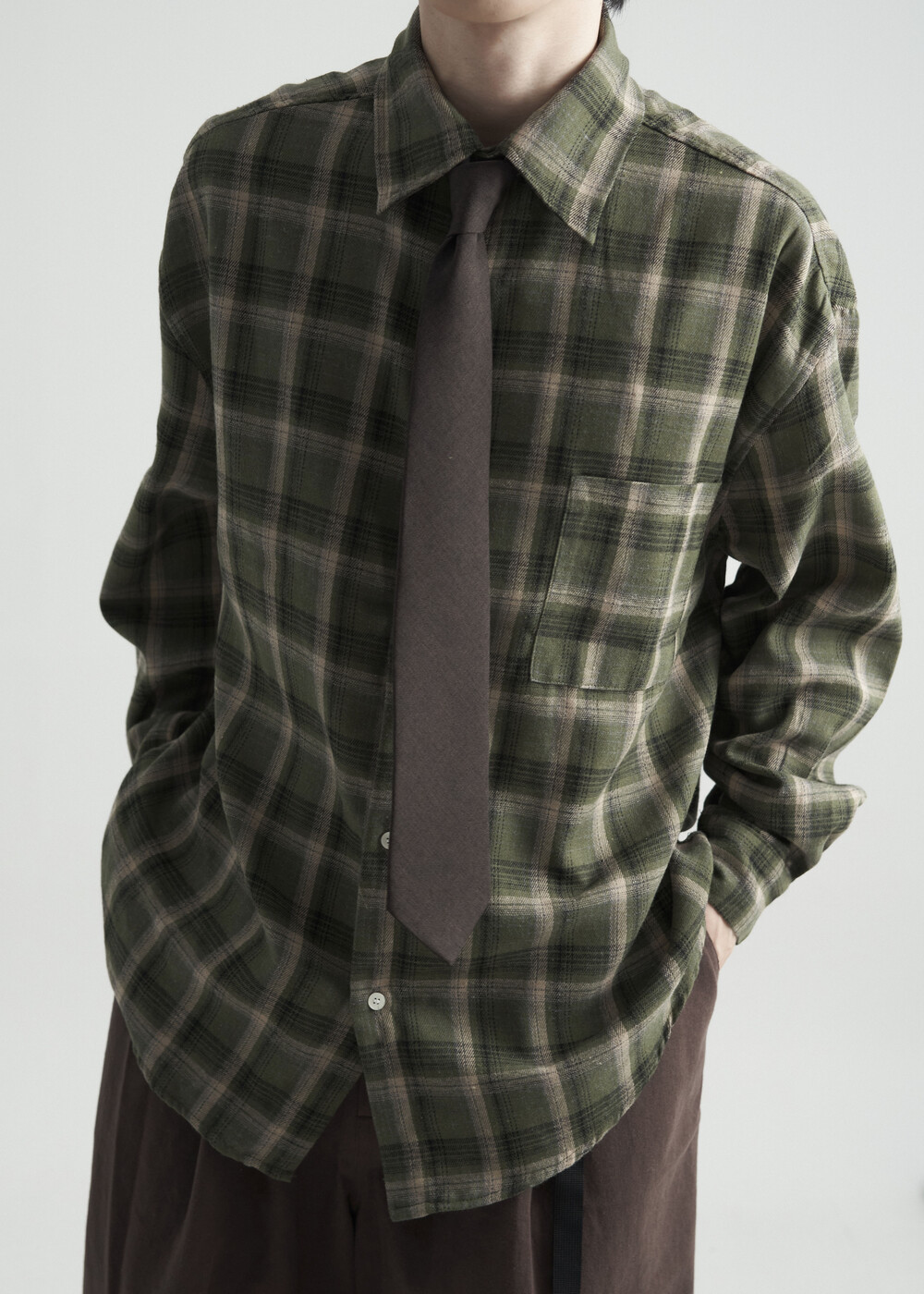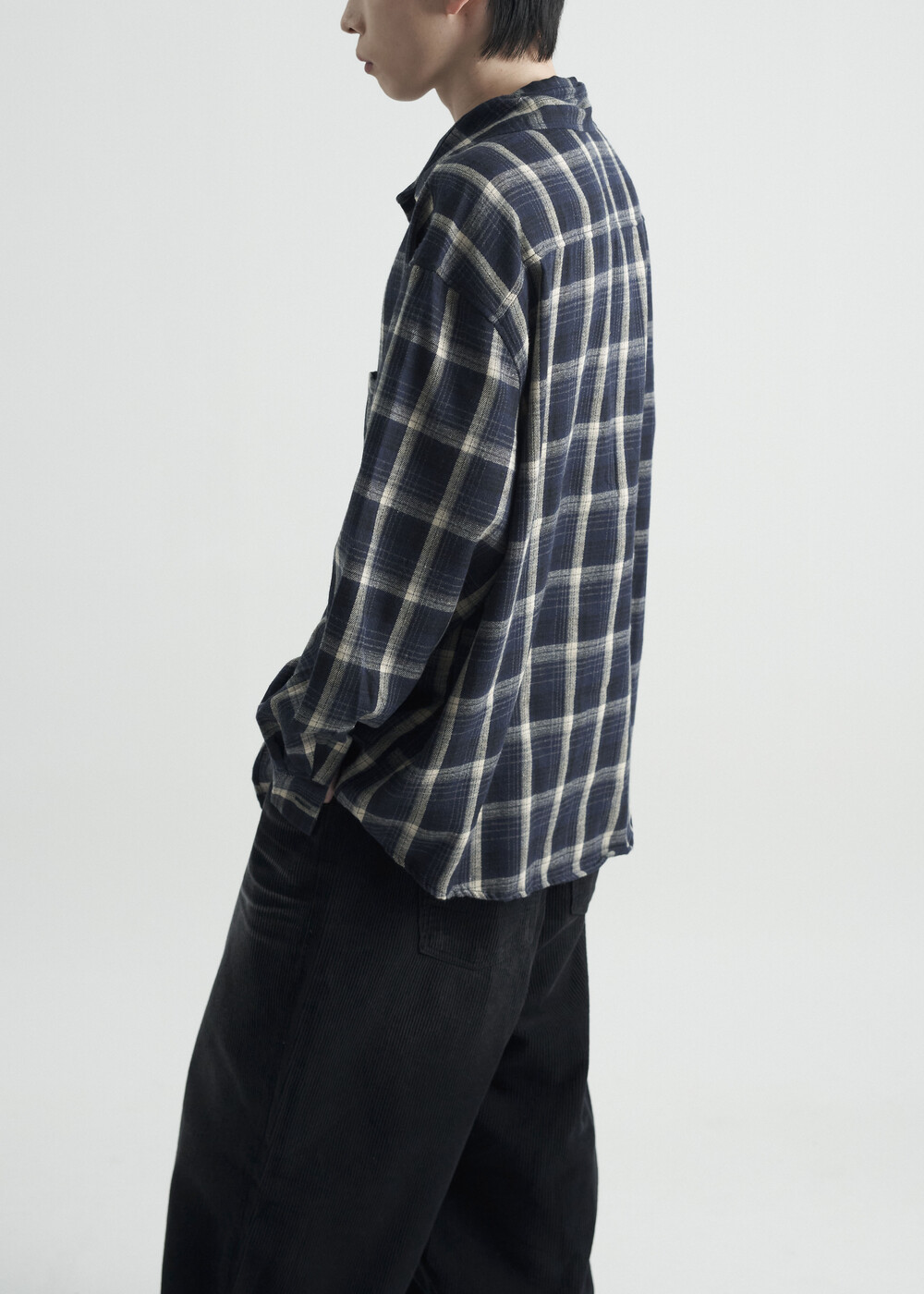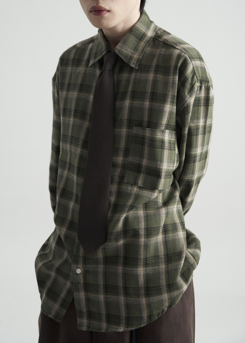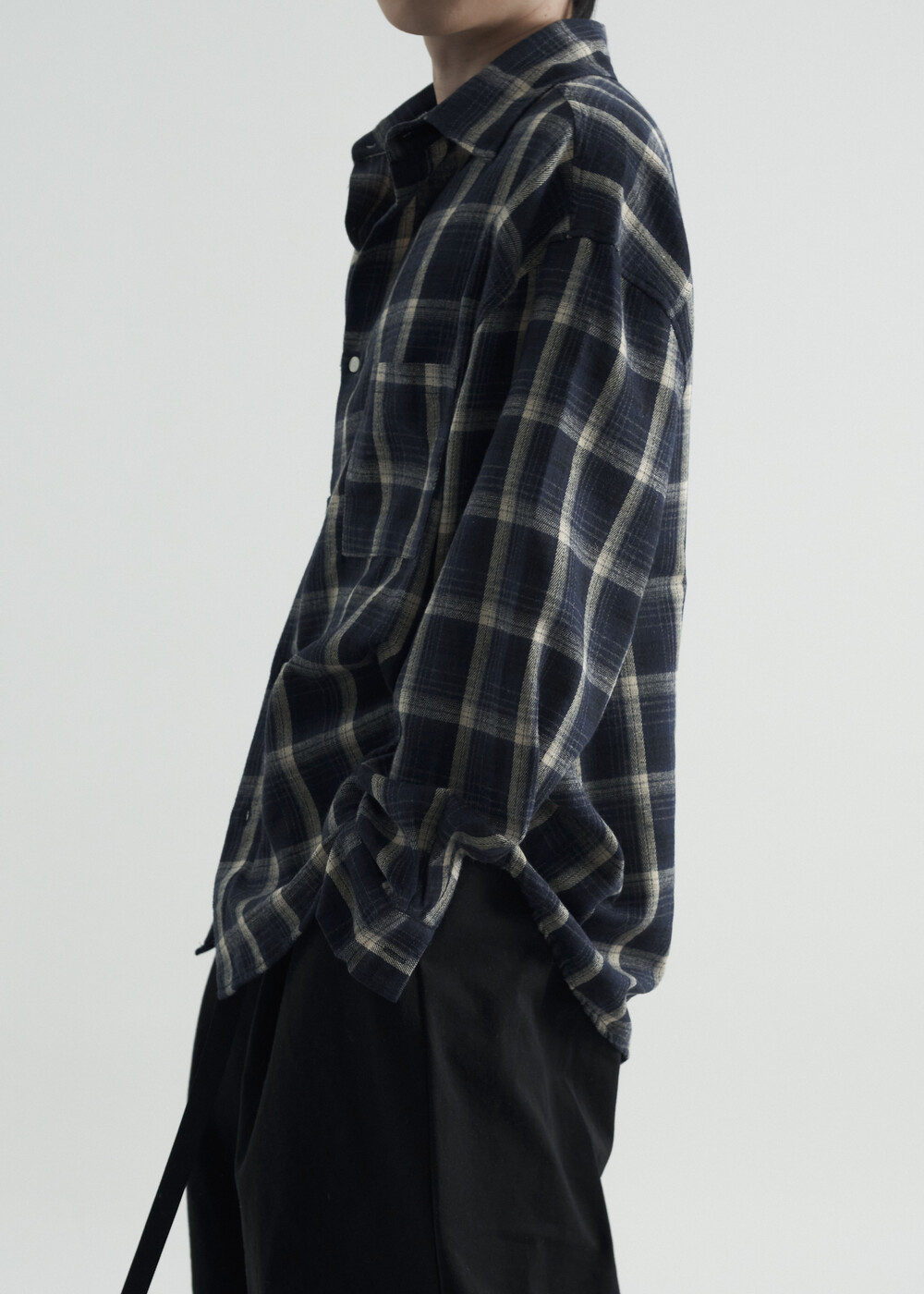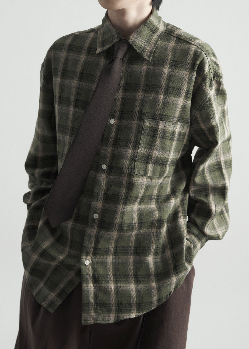 - 루즈한 실루엣의 클래식 카라가 적용된 체크 패턴의 셔츠 제품
