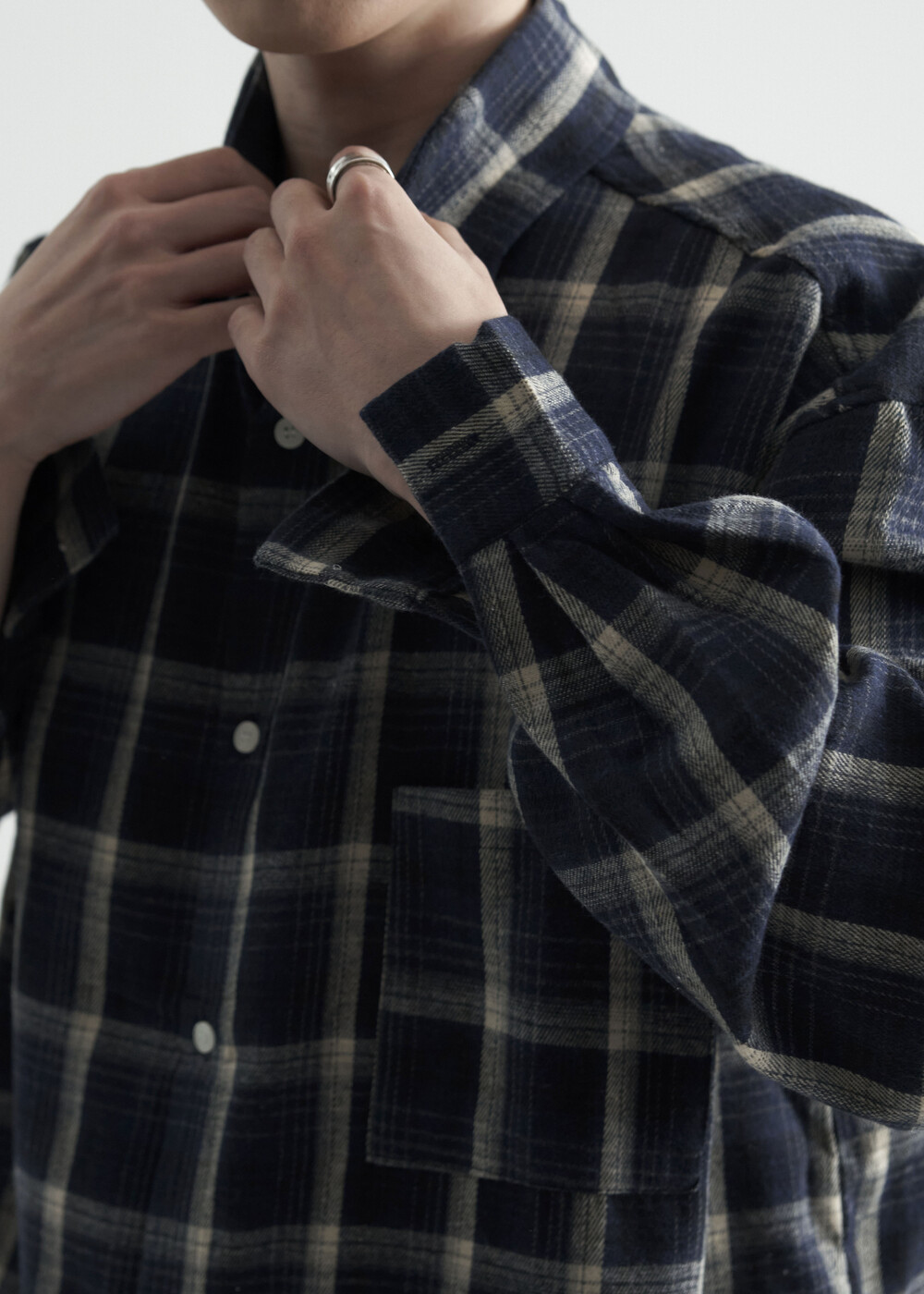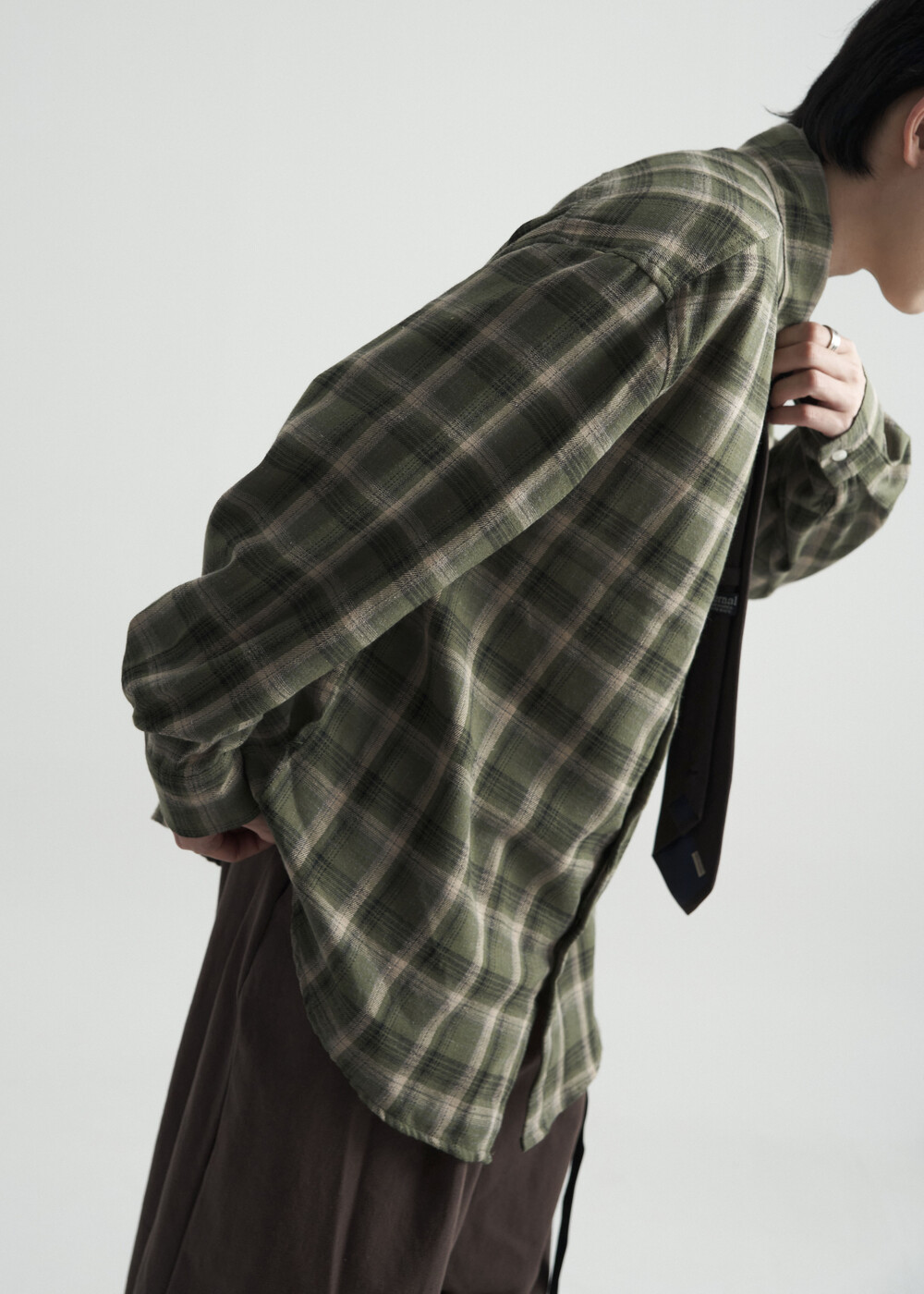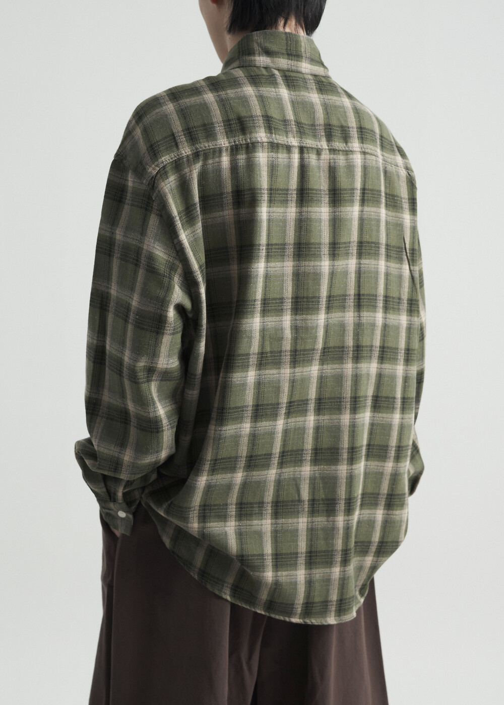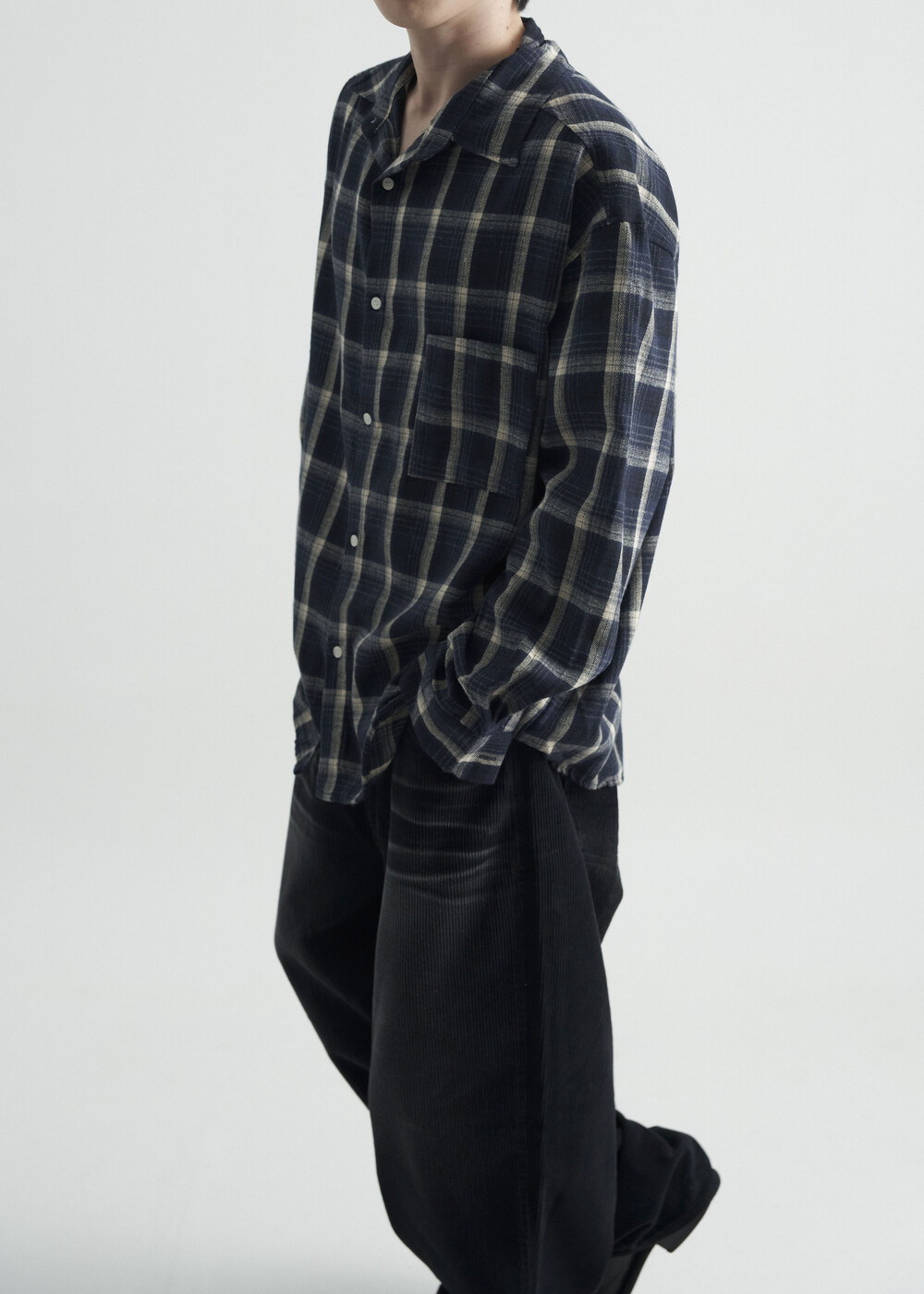 - 루즈한 실루엣의 클래식 카라가 적용된 체크 패턴의 셔츠 제품
