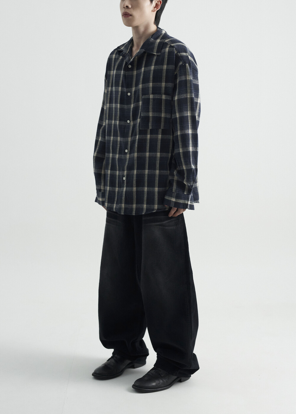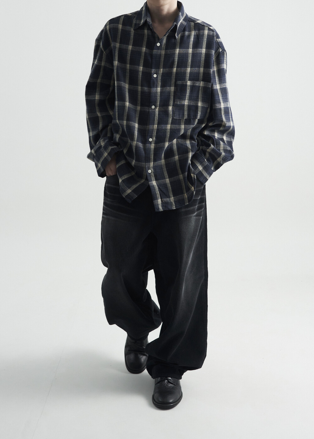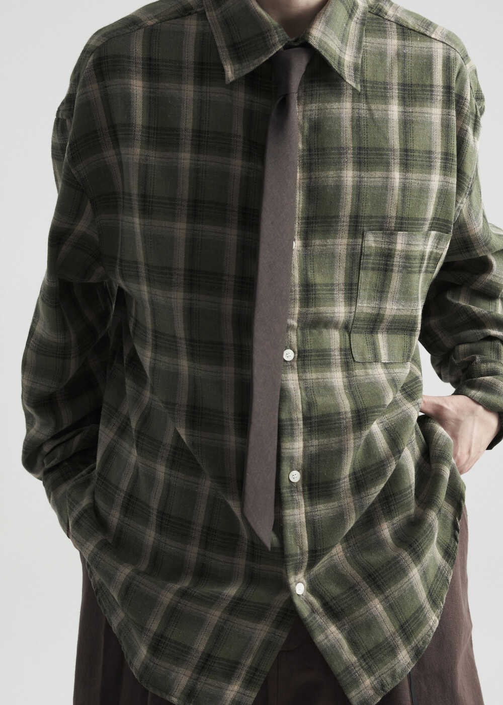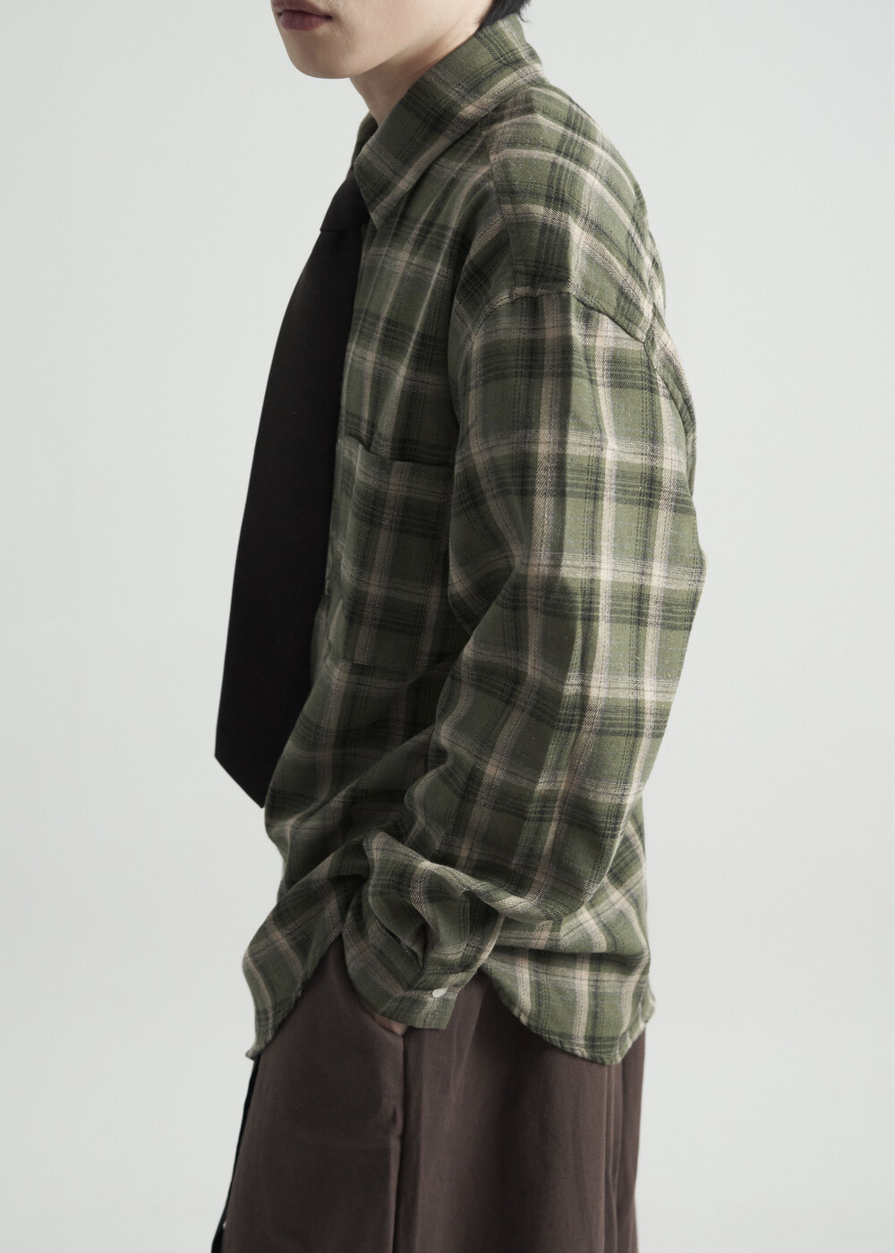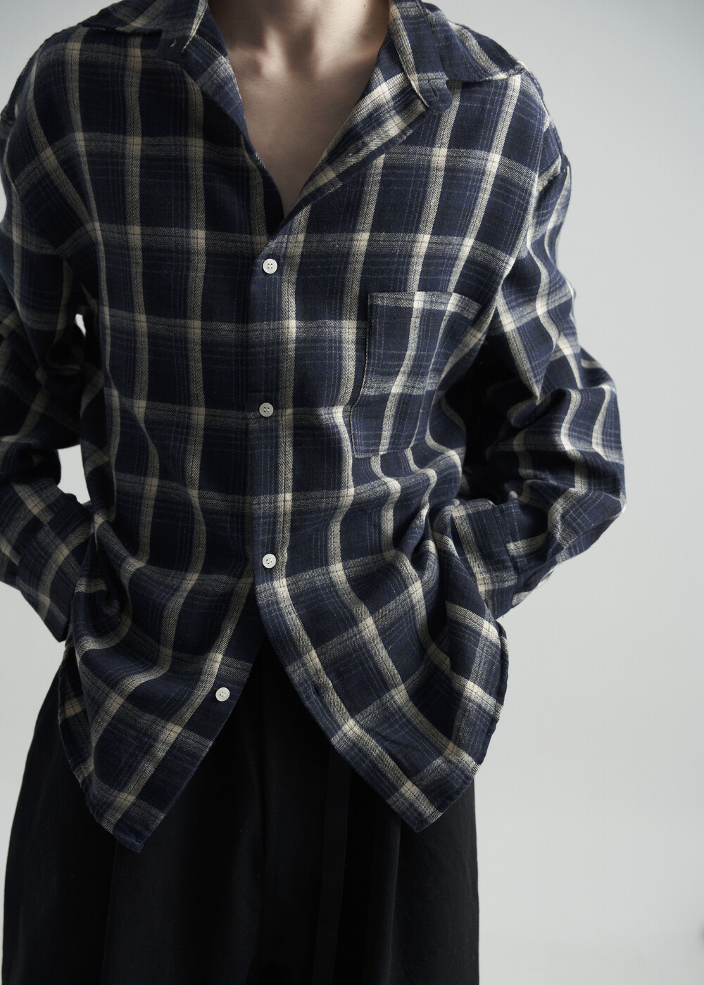 - 루즈한 실루엣의 클래식 카라가 적용된 체크 패턴의 셔츠 제품