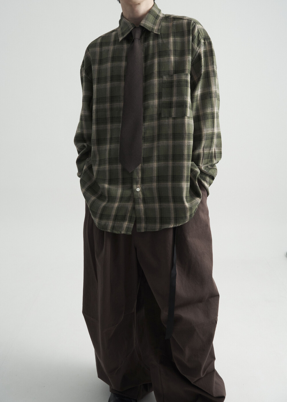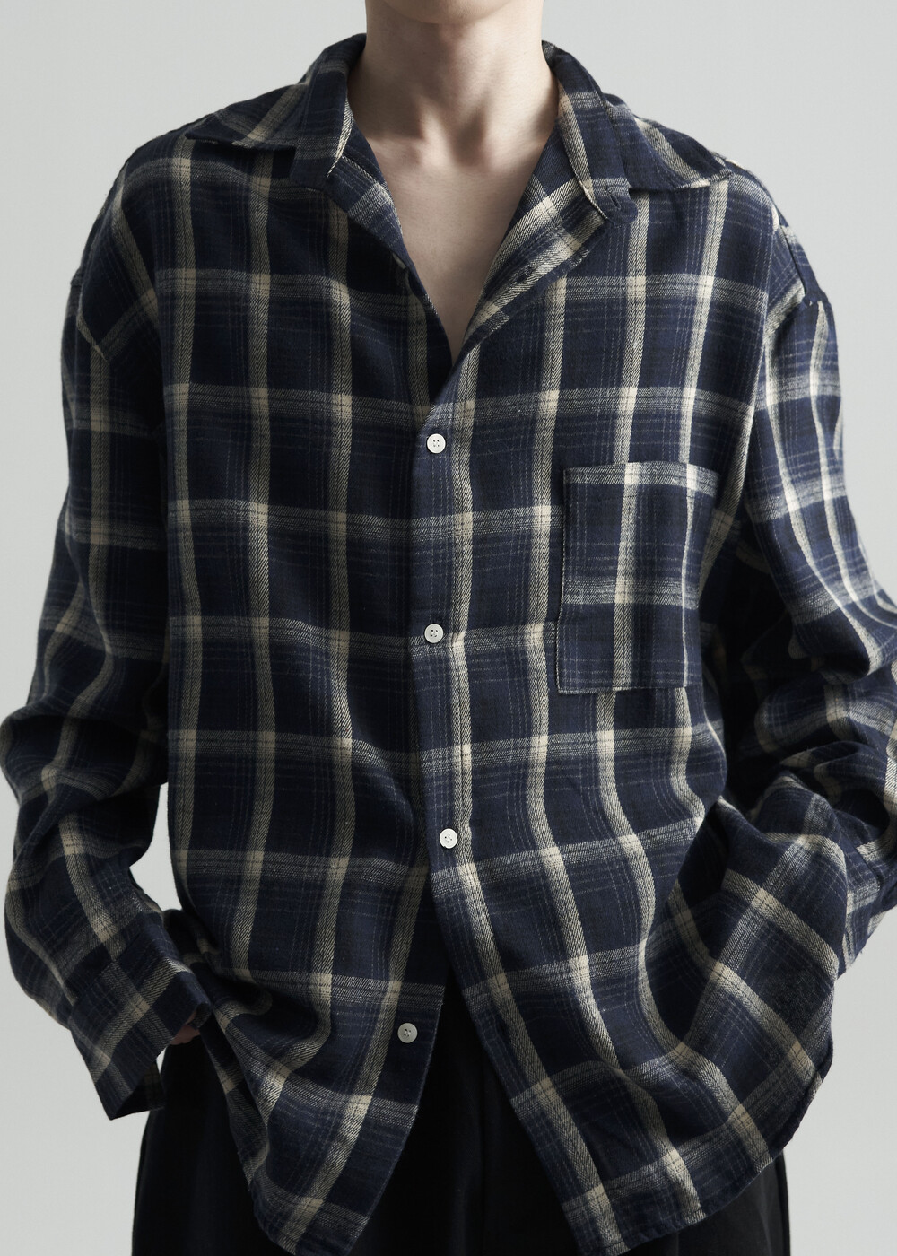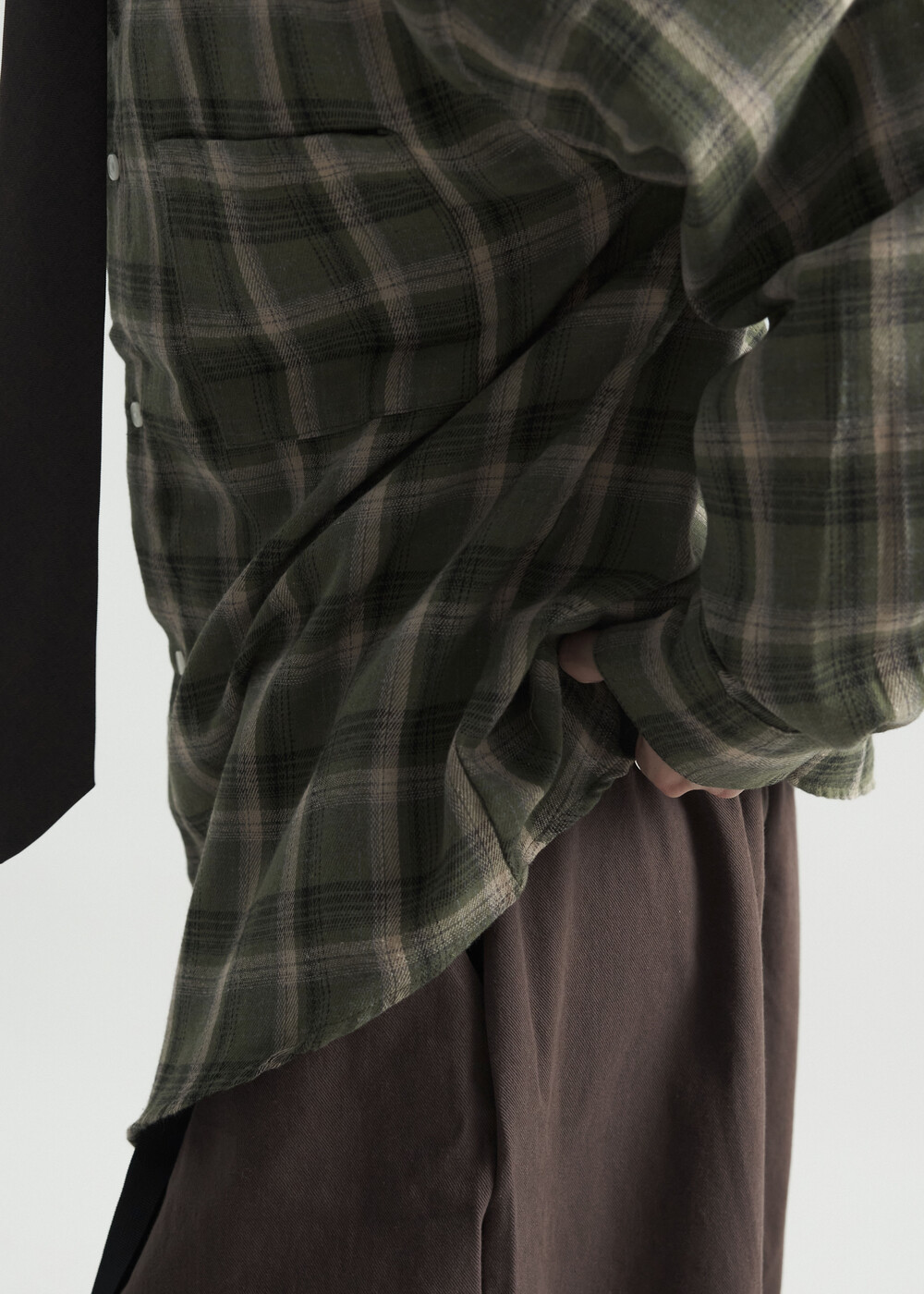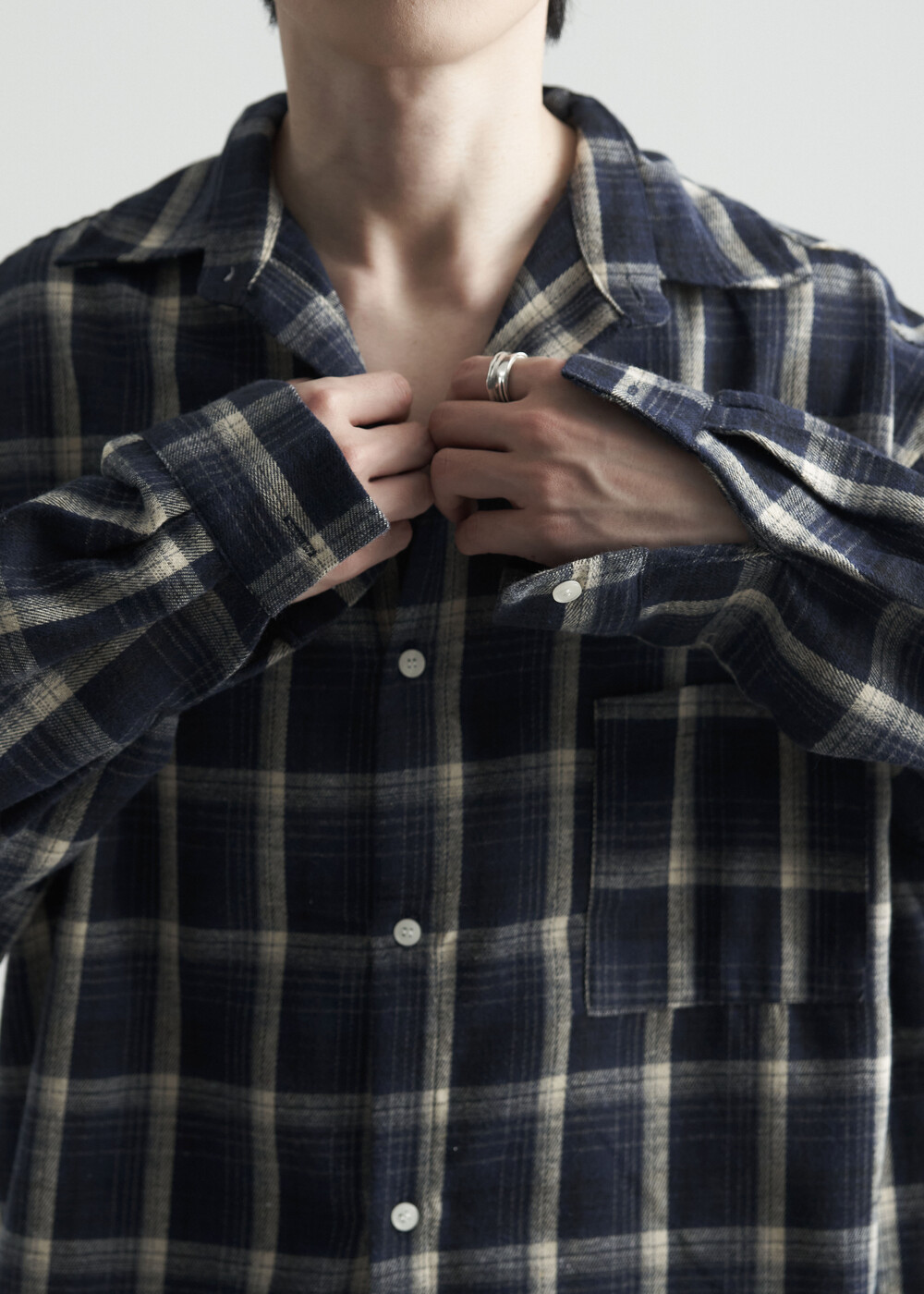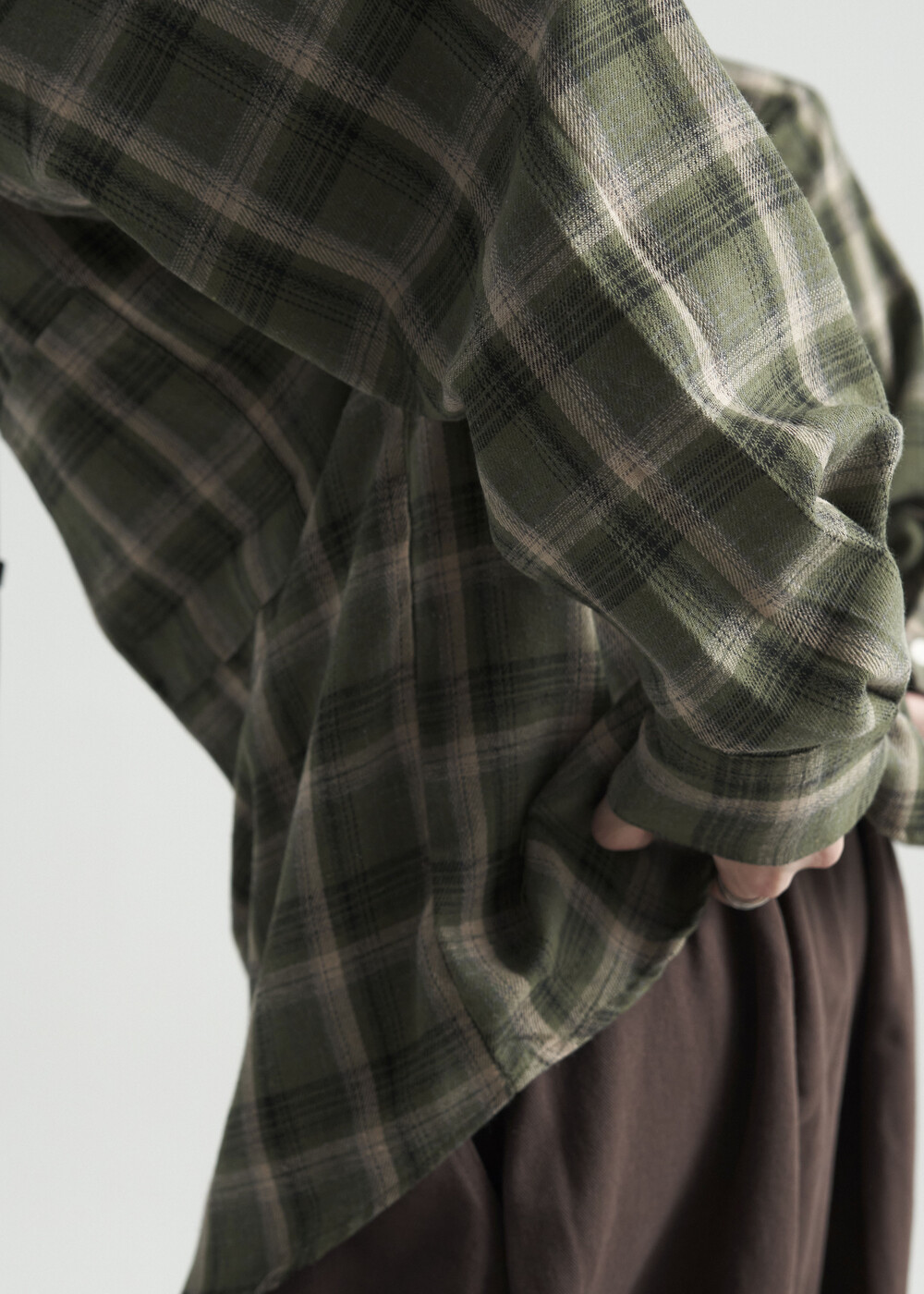 - 루즈한 실루엣의 클래식 카라가 적용된 체크 패턴의 셔츠 제품