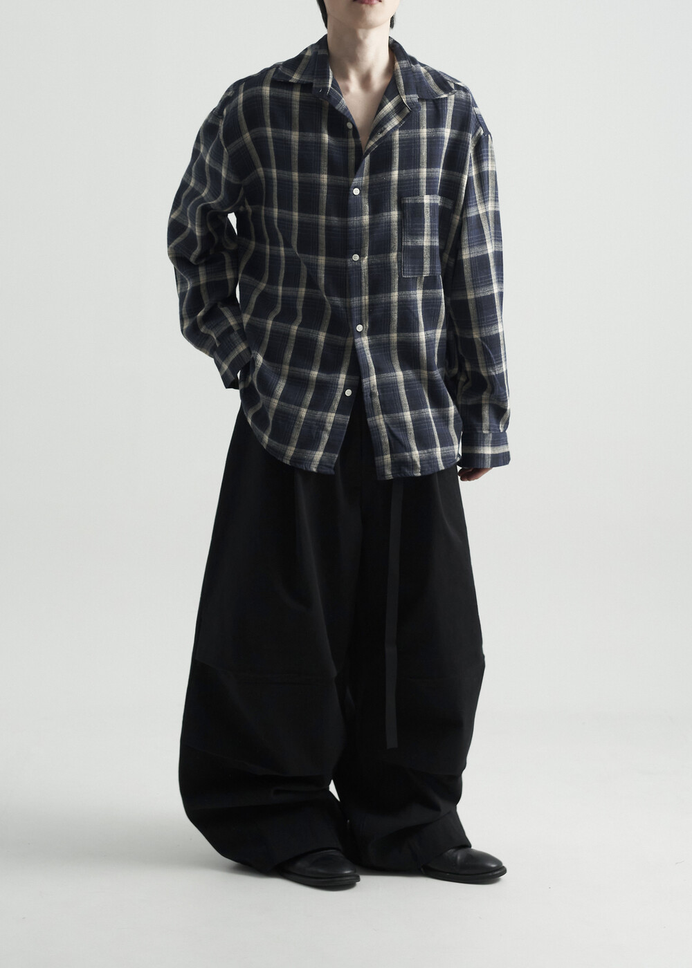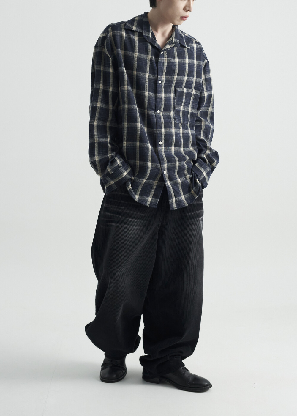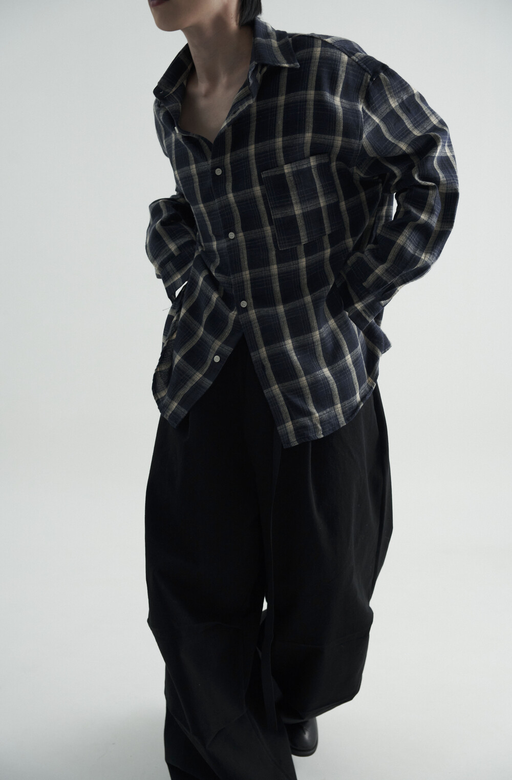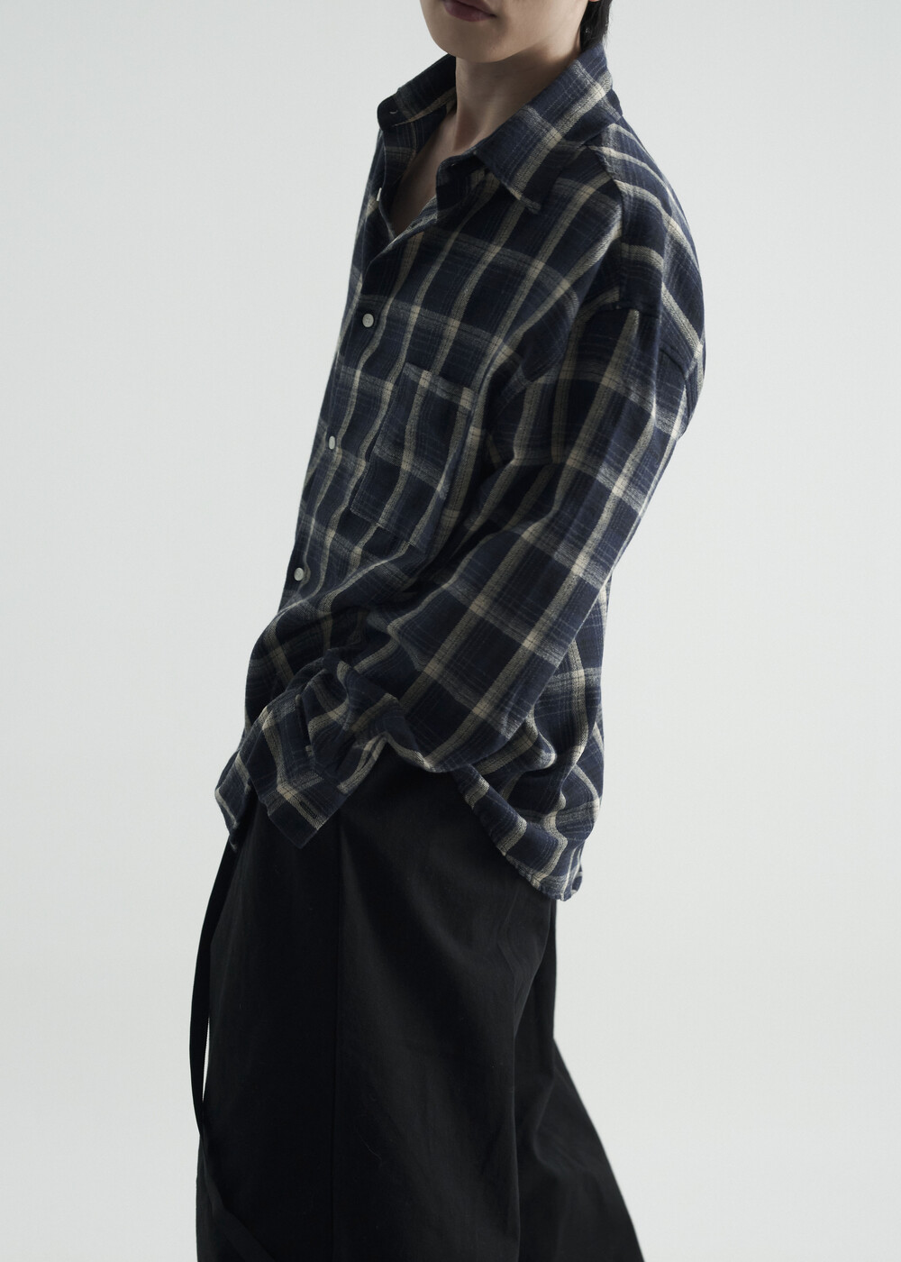 - 루즈한 실루엣의 클래식 카라가 적용된 체크 패턴의 셔츠 제품