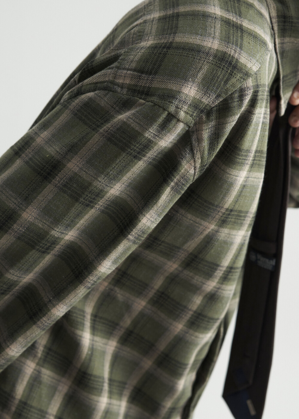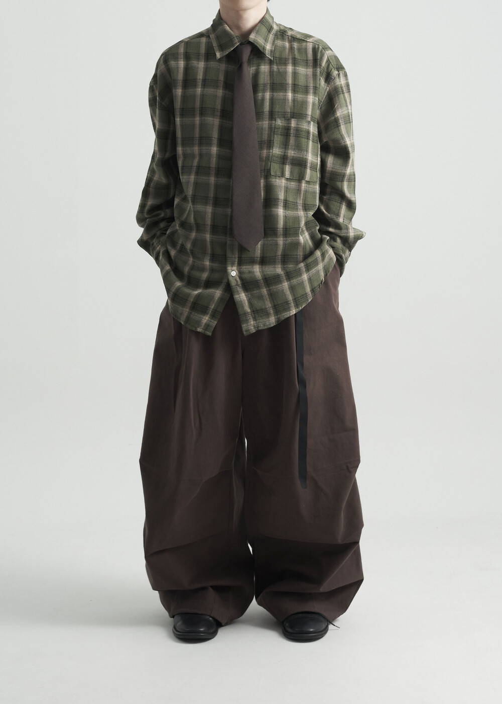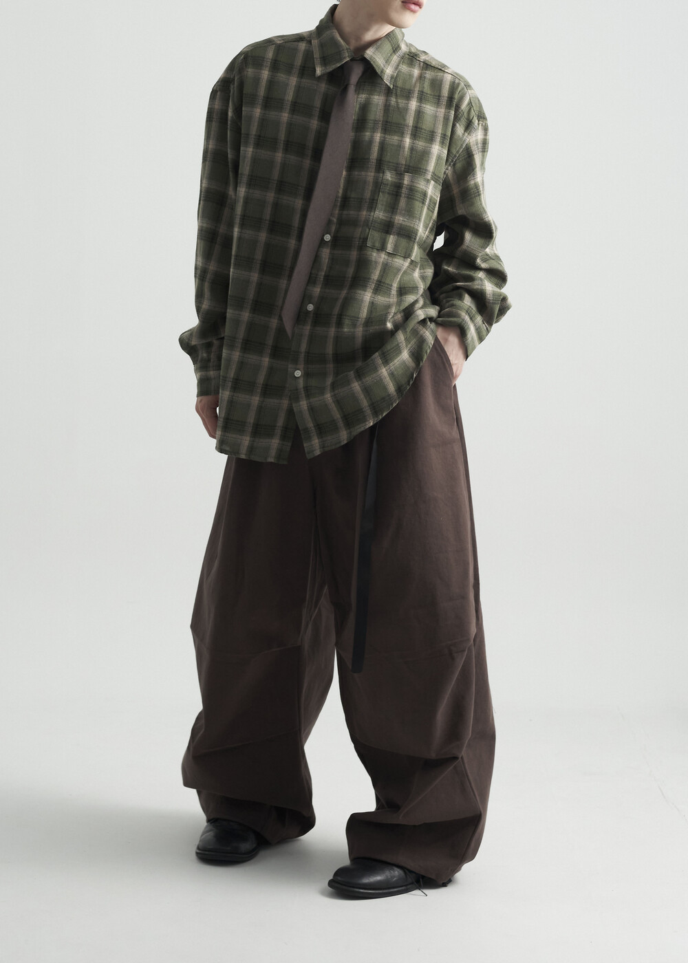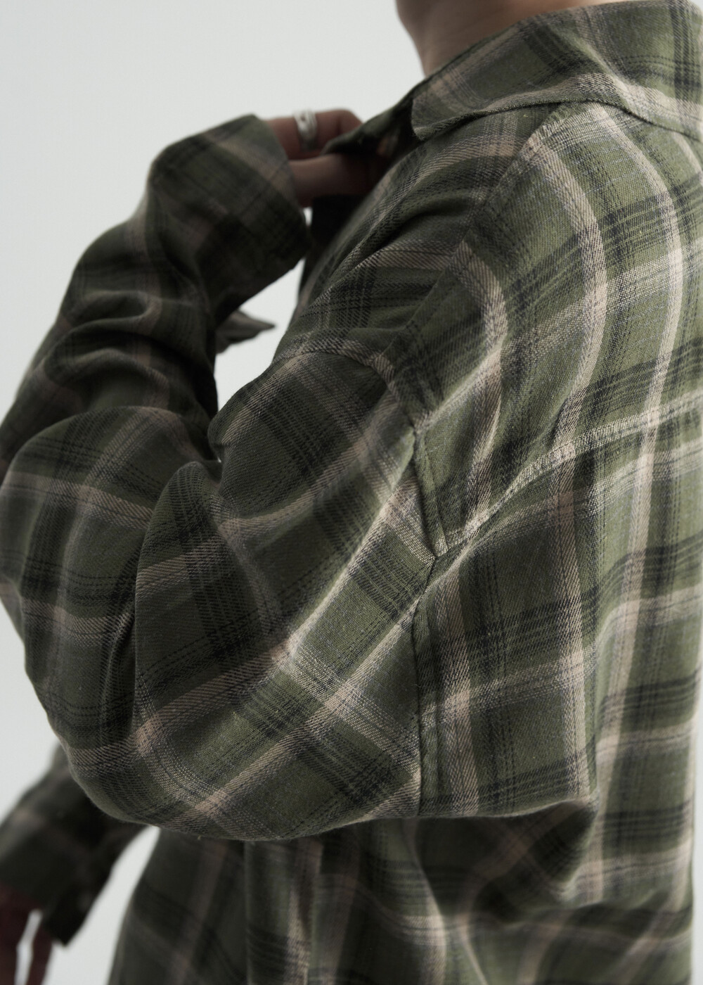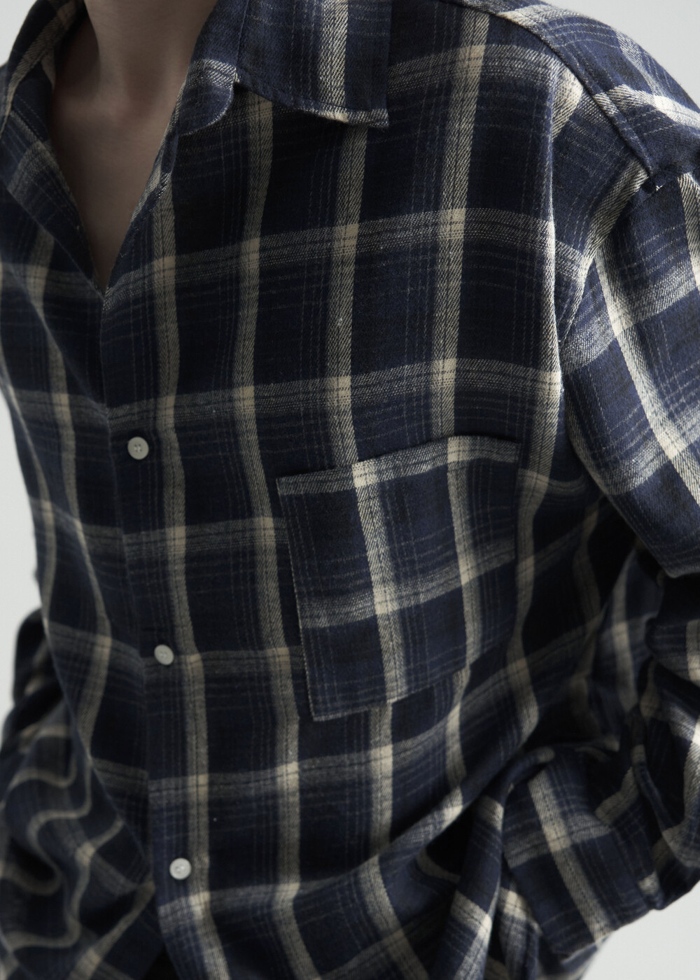 - 루즈한 실루엣의 클래식 카라가 적용된 체크 패턴의 셔츠 제품