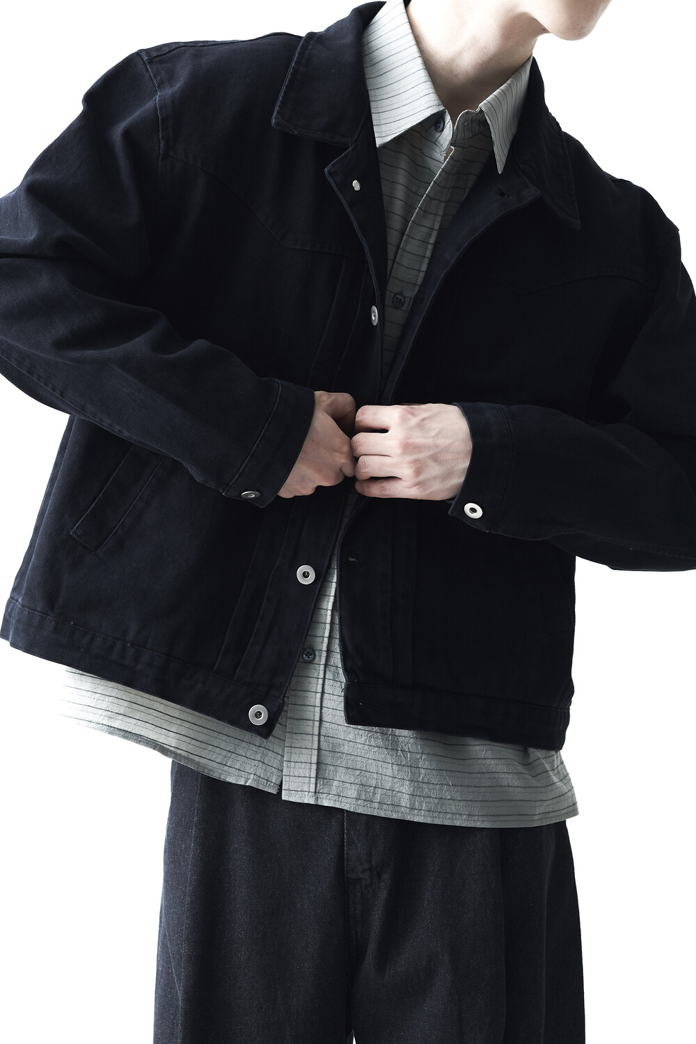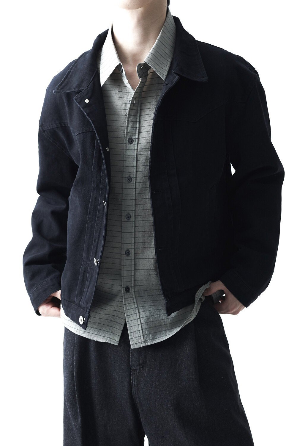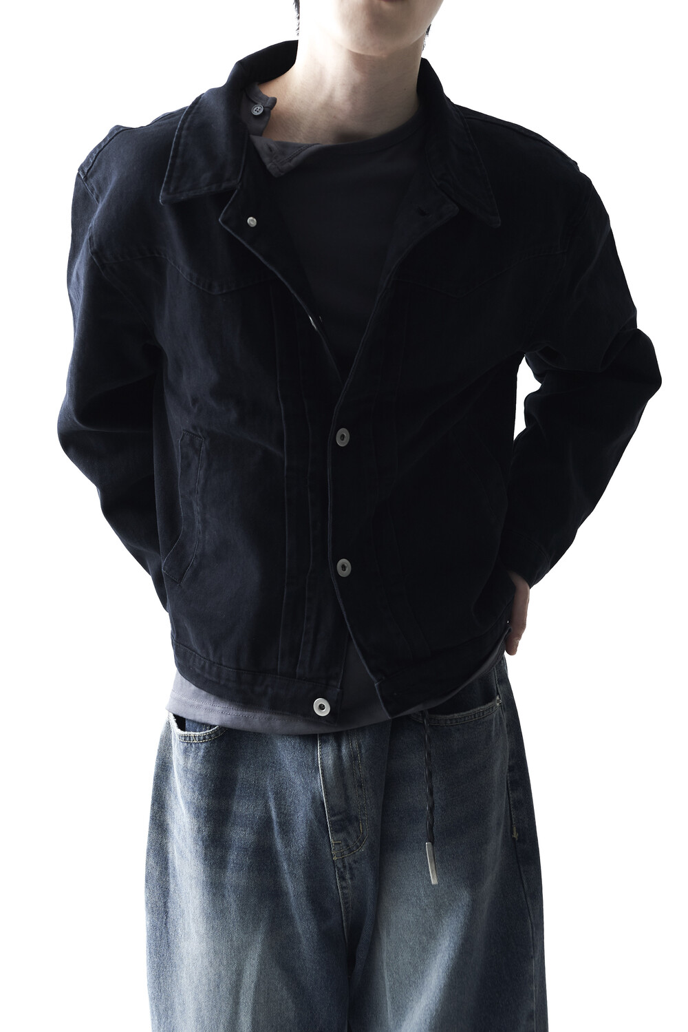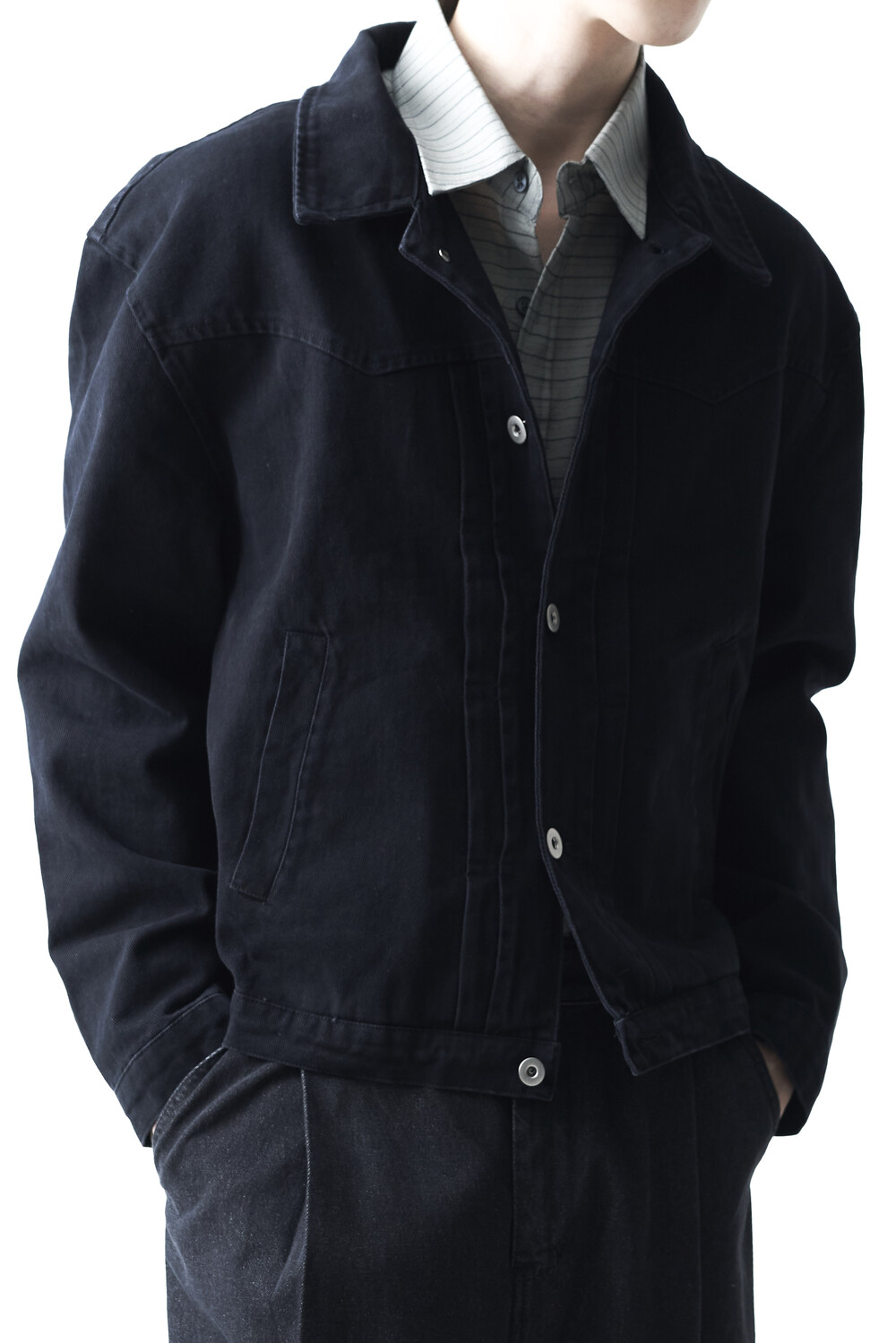 - 크롭한 기장감으로 형성된 웨스턴 스타일의 크롭 코튼 자켓 제품입니다. 전면부 웨스턴 절개라이닝과 함께 다트 슬릿 디테일이 적용되었으며, 숏한 기장감으로 인해 더욱 길어보이는 비율을 느끼실 수 있습니다. 카치온 워싱 가공 작업을 통해 거친 텍스쳐에 비해 유연한 착용감이 매력적입니다. 웨스턴 트러커 무드 연출에 탁월한 아우터 제품입니다.