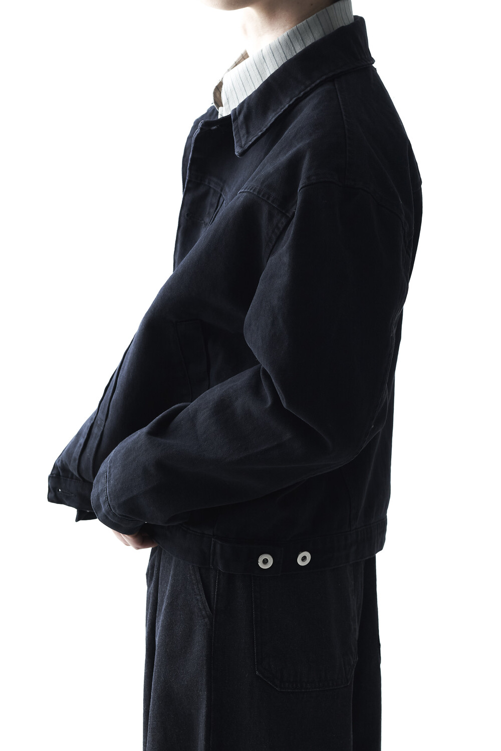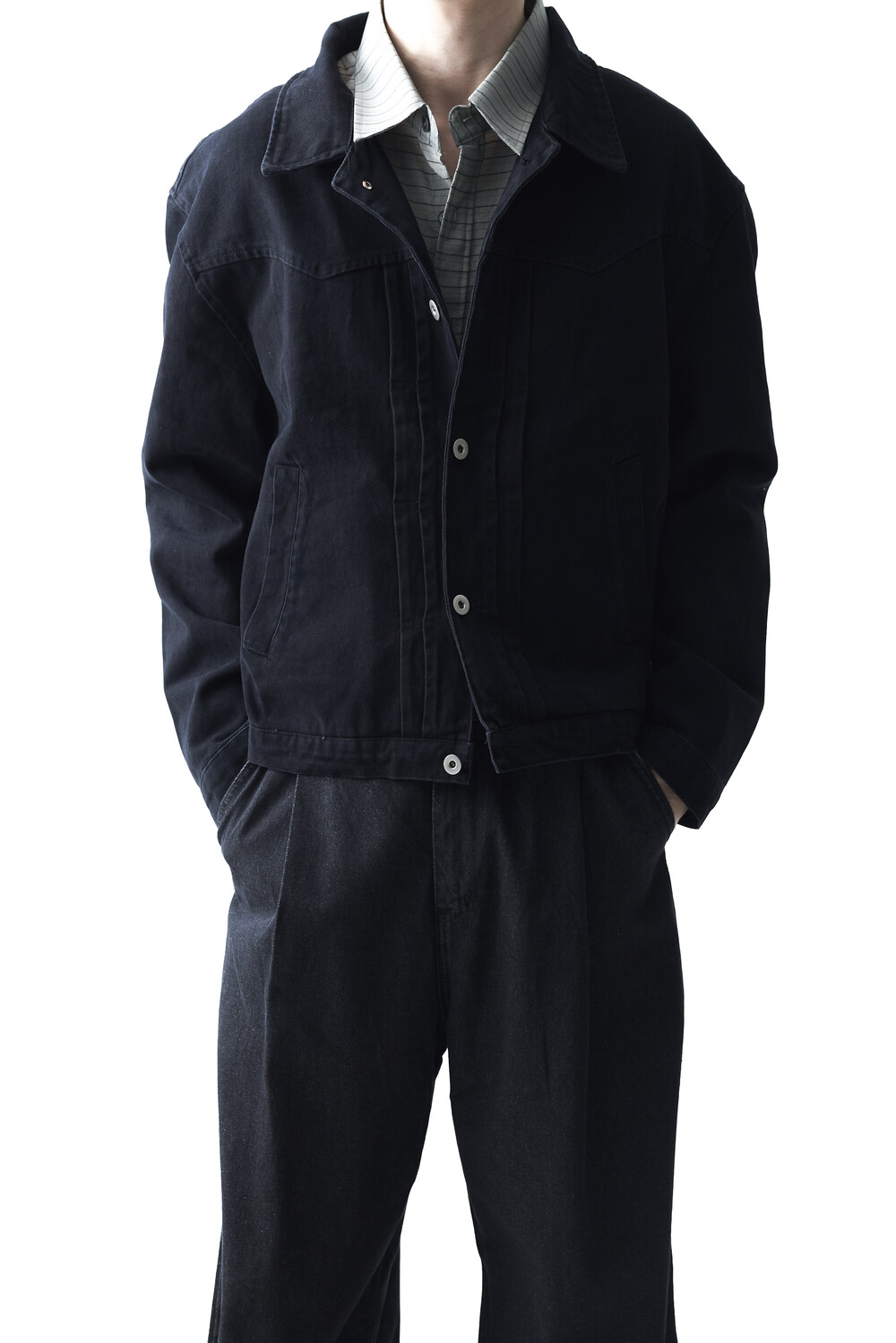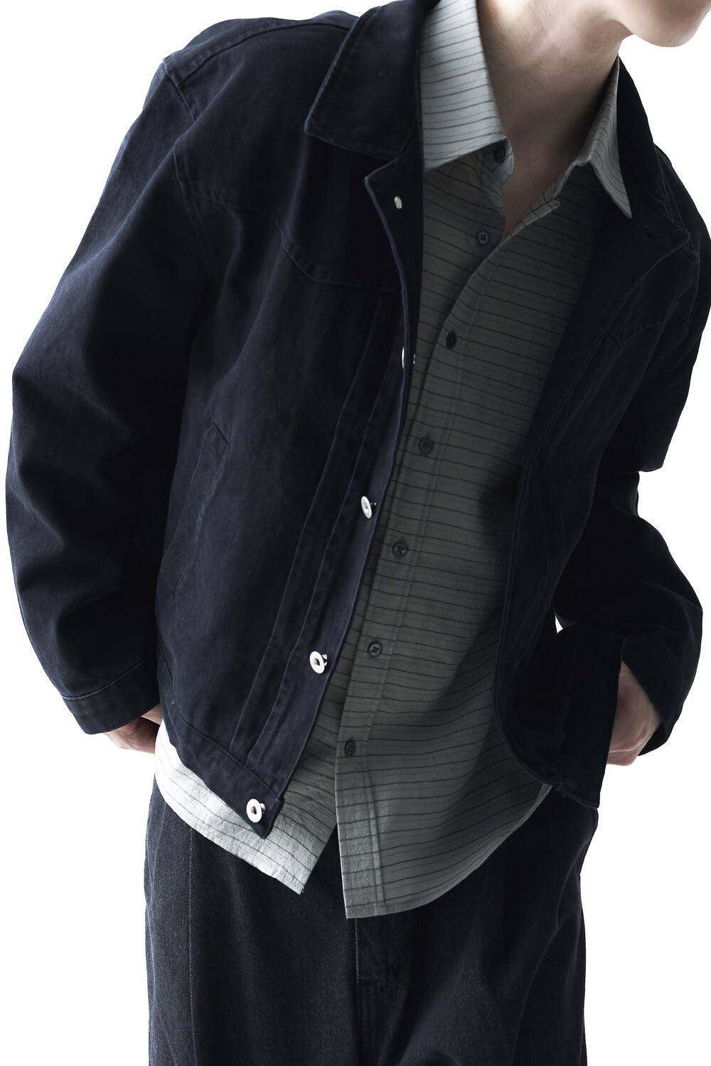 - 크롭한 기장감으로 형성된 웨스턴 스타일의 크롭 코튼 자켓 제품입니다. 전면부 웨스턴 절개라이닝과 함께 다트 슬릿 디테일이 적용되었으며, 숏한 기장감으로 인해 더욱 길어보이는 비율을 느끼실 수 있습니다. 카치온 워싱 가공 작업을 통해 거친 텍스쳐에 비해 유연한 착용감이 매력적입니다. 웨스턴 트러커 무드 연출에 탁월한 아우터 제품입니다.