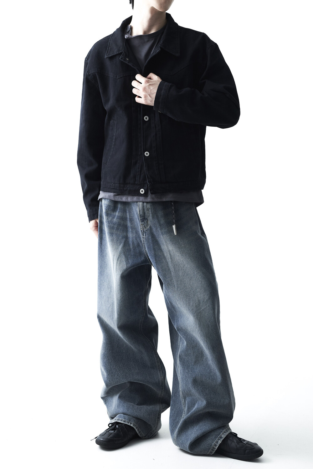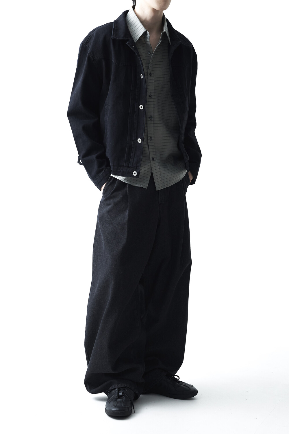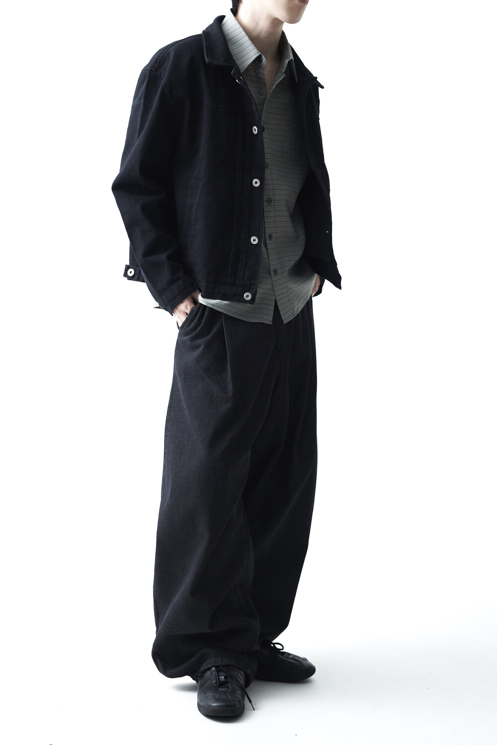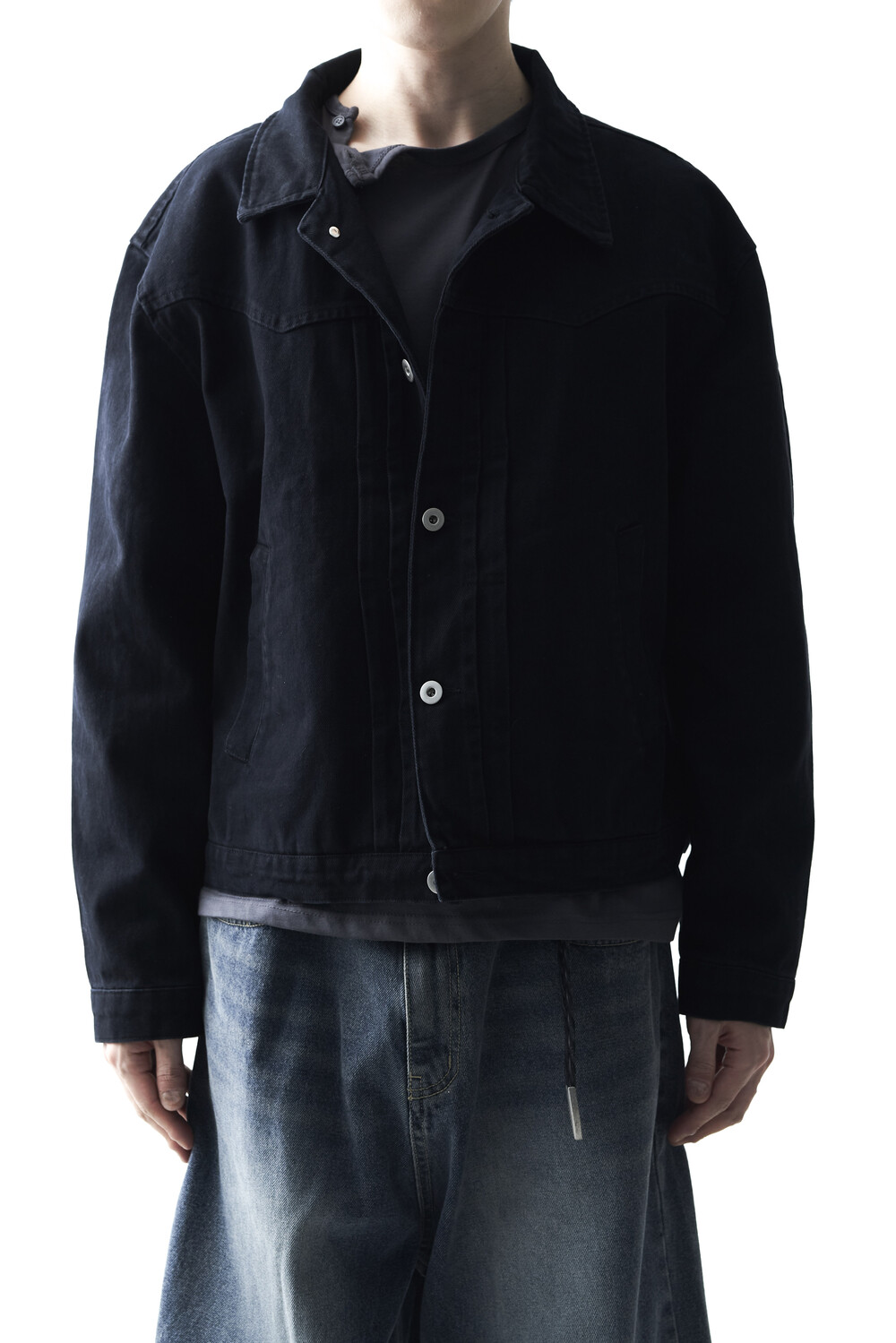 - 크롭한 기장감으로 형성된 웨스턴 스타일의 크롭 코튼 자켓 제품입니다. 전면부 웨스턴 절개라이닝과 함께 다트 슬릿 디테일이 적용되었으며, 숏한 기장감으로 인해 더욱 길어보이는 비율을 느끼실 수 있습니다. 카치온 워싱 가공 작업을 통해 거친 텍스쳐에 비해 유연한 착용감이 매력적입니다. 웨스턴 트러커 무드 연출에 탁월한 아우터 제품입니다.