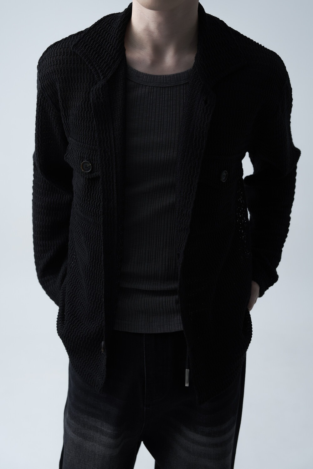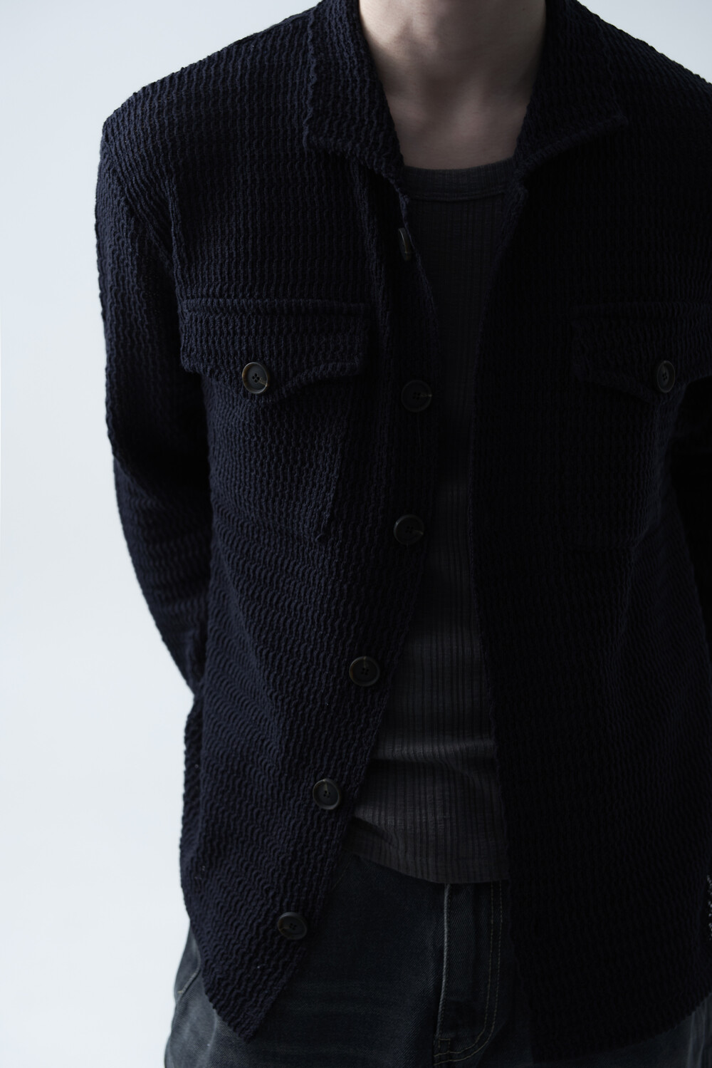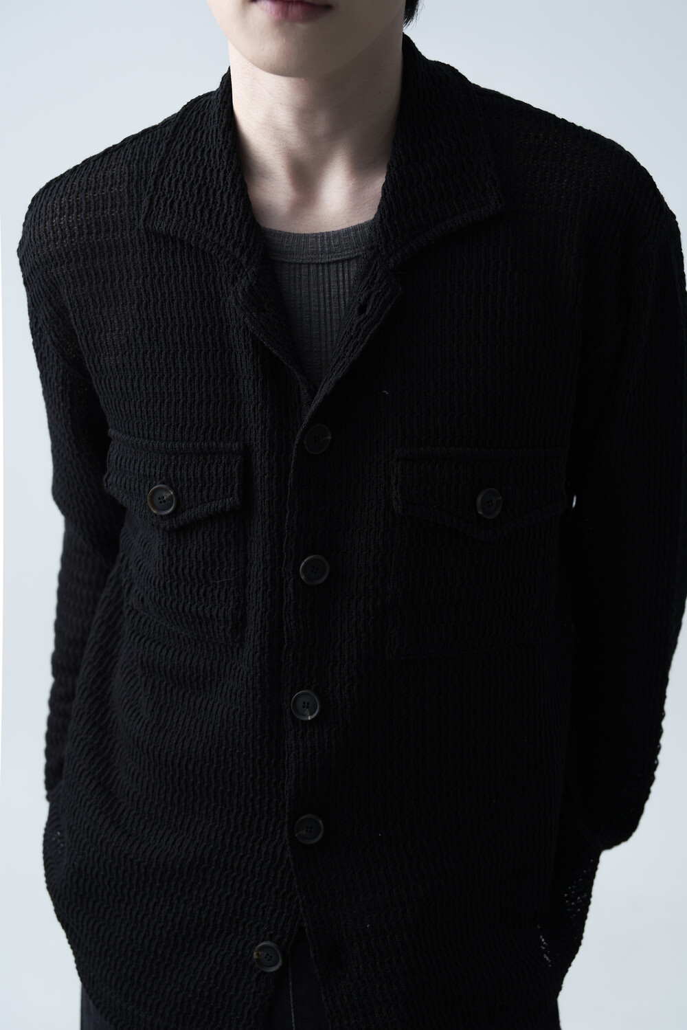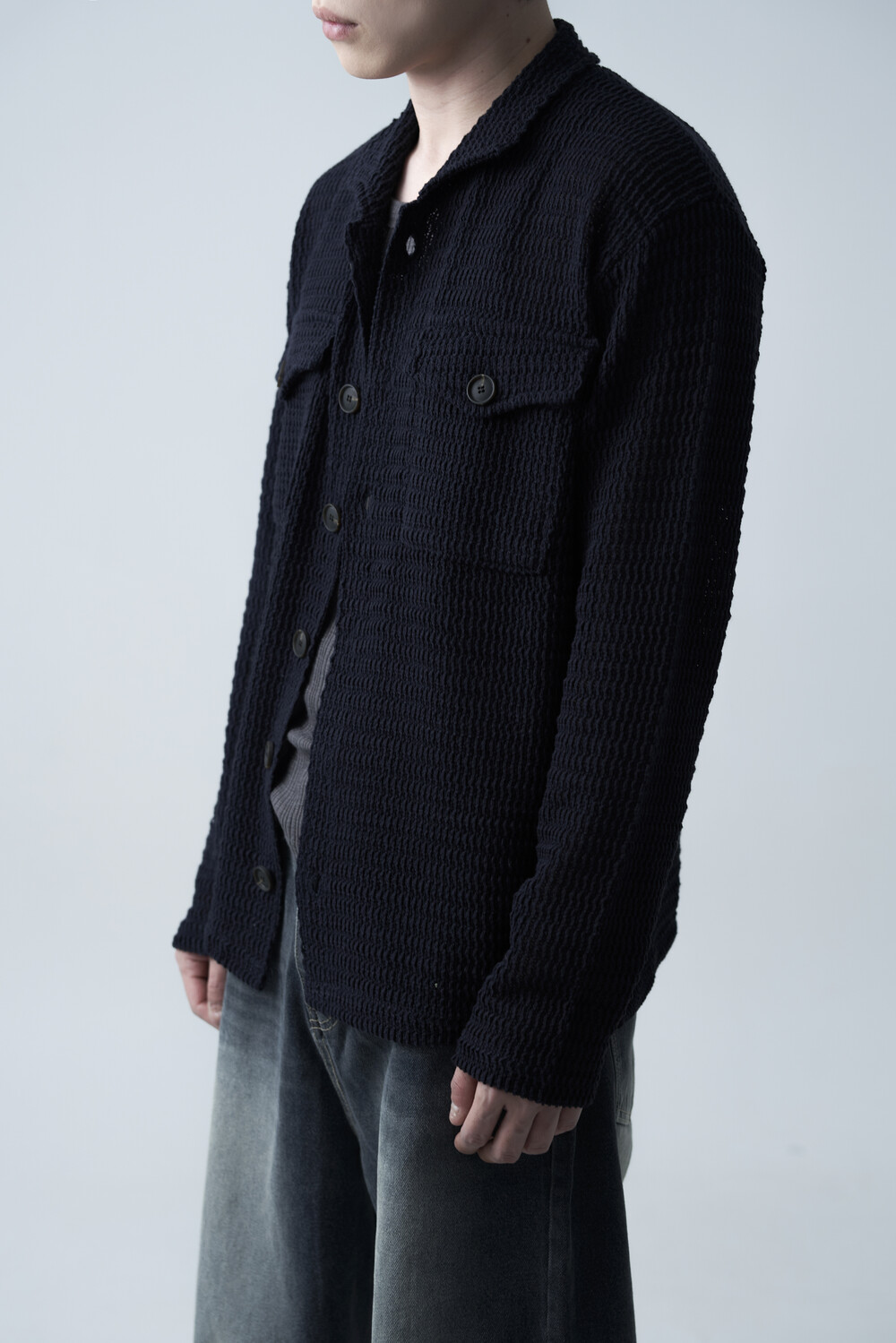 여름에도 착용할 수 있는 세밀한 펀칭 텍스쳐로 구성되어 자켓 형식으로도 착용 가능한 니트 가디건 제품입니다. 고밀도 소재로 쉽게 늘어지지 않으며, 소프트한 이너와 가볍게 레이어드하는 것을 추천드립니다.