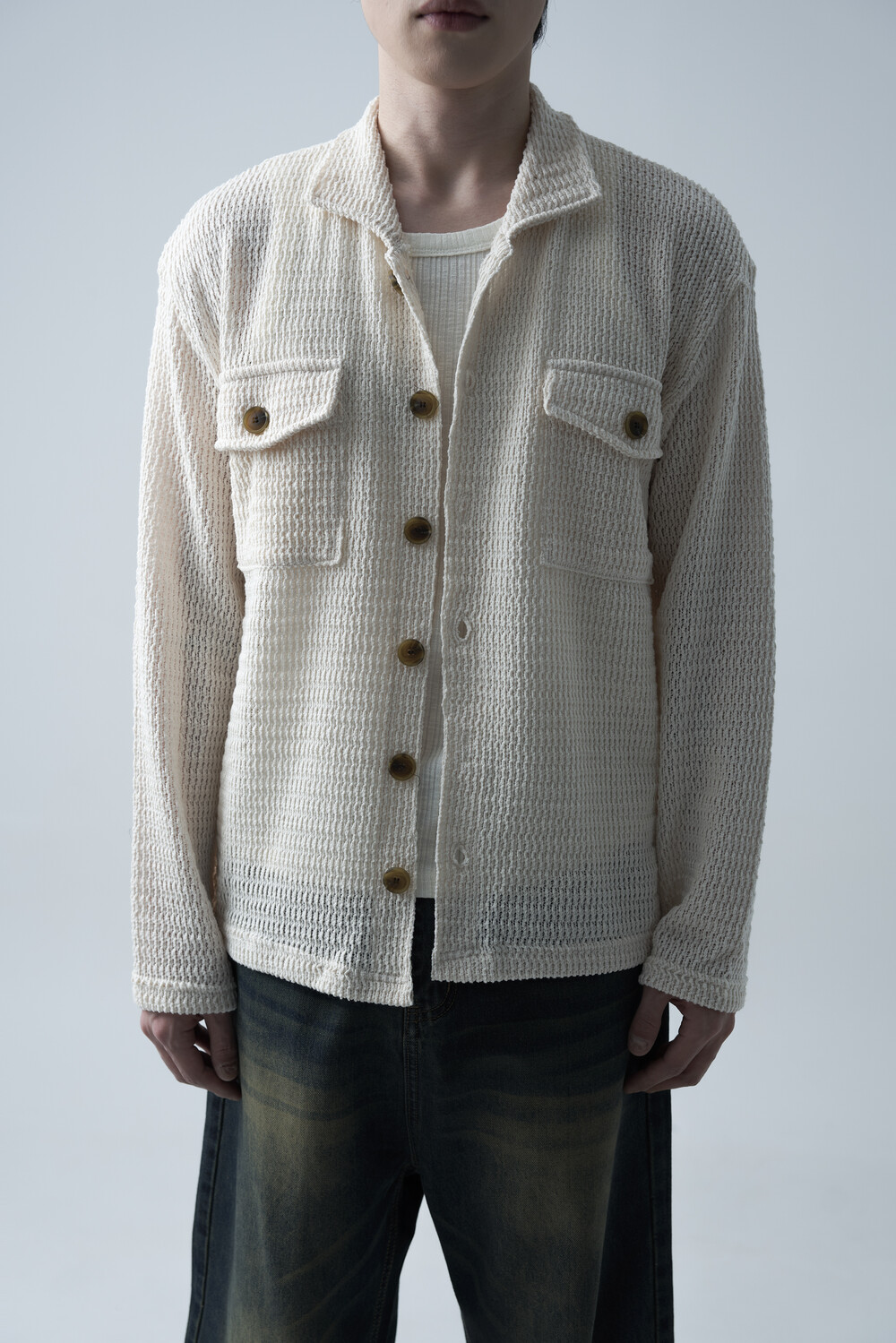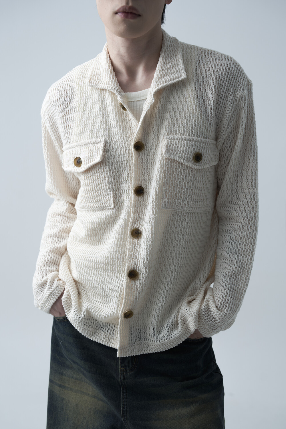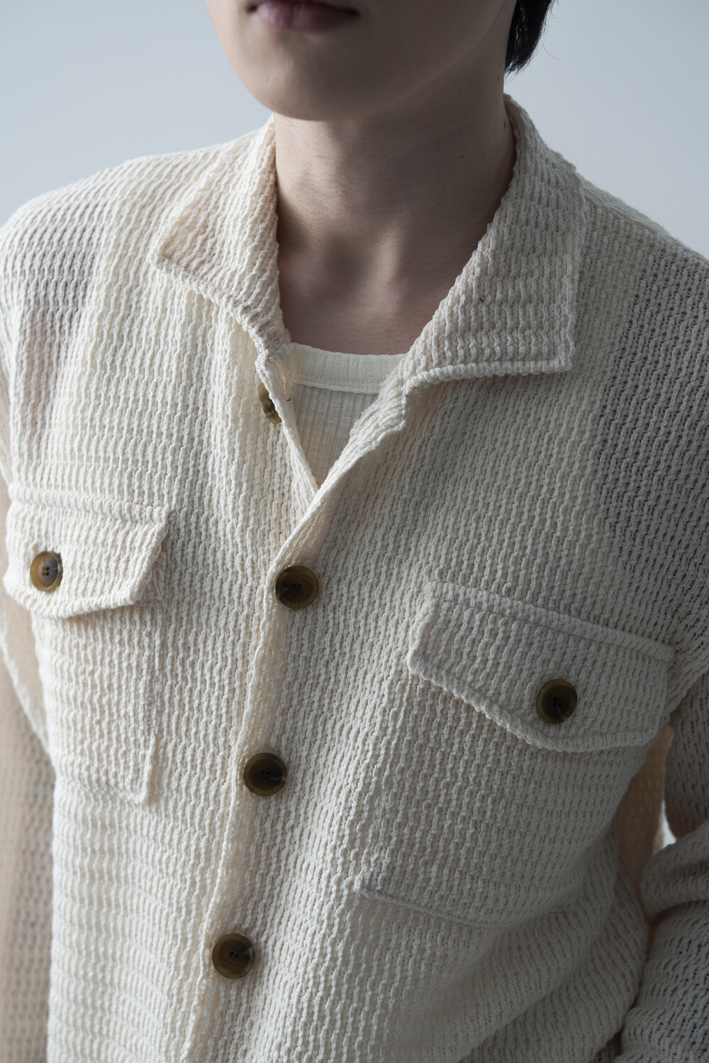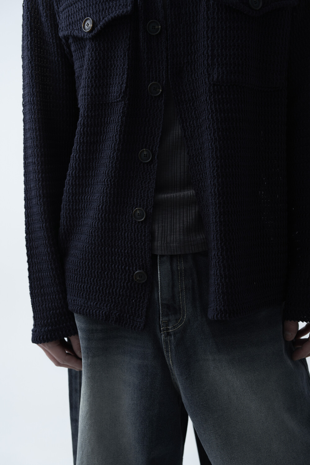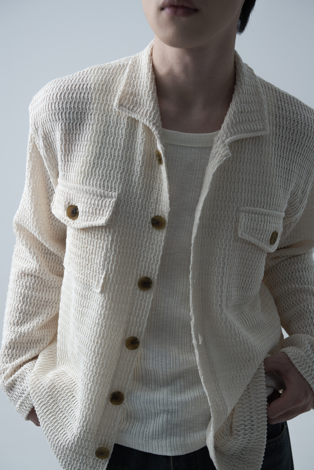 여름에도 착용할 수 있는 세밀한 펀칭 텍스쳐로 구성되어 자켓 형식으로도 착용 가능한 니트 가디건 제품입니다. 고밀도 소재로 쉽게 늘어지지 않으며, 소프트한 이너와 가볍게 레이어드하는 것을 추천드립니다.