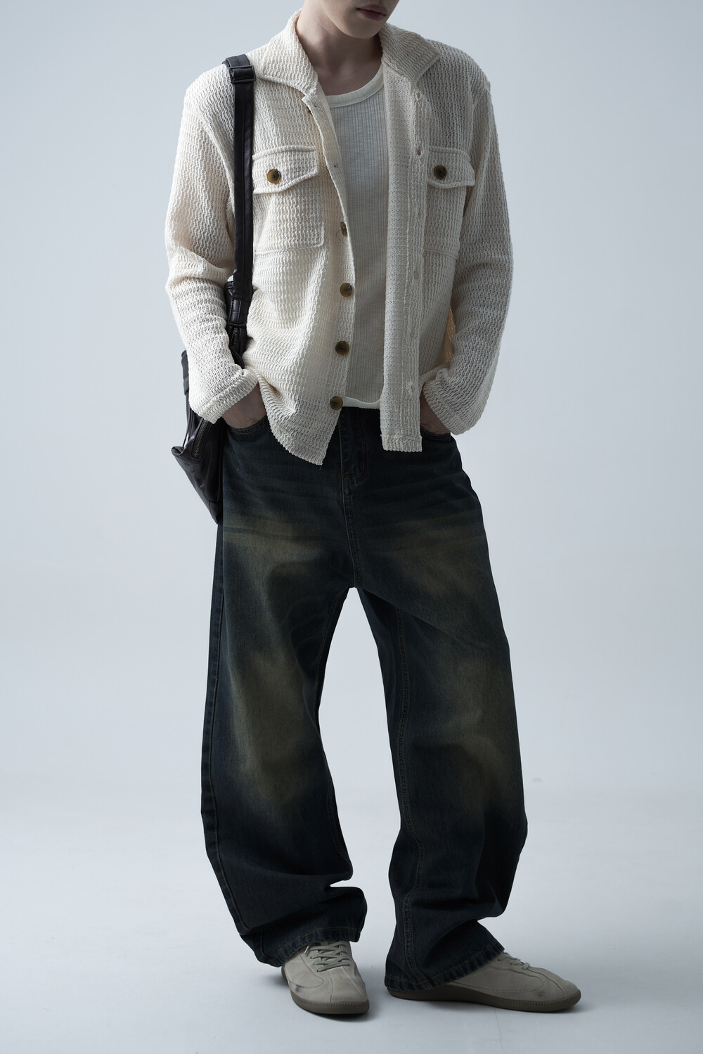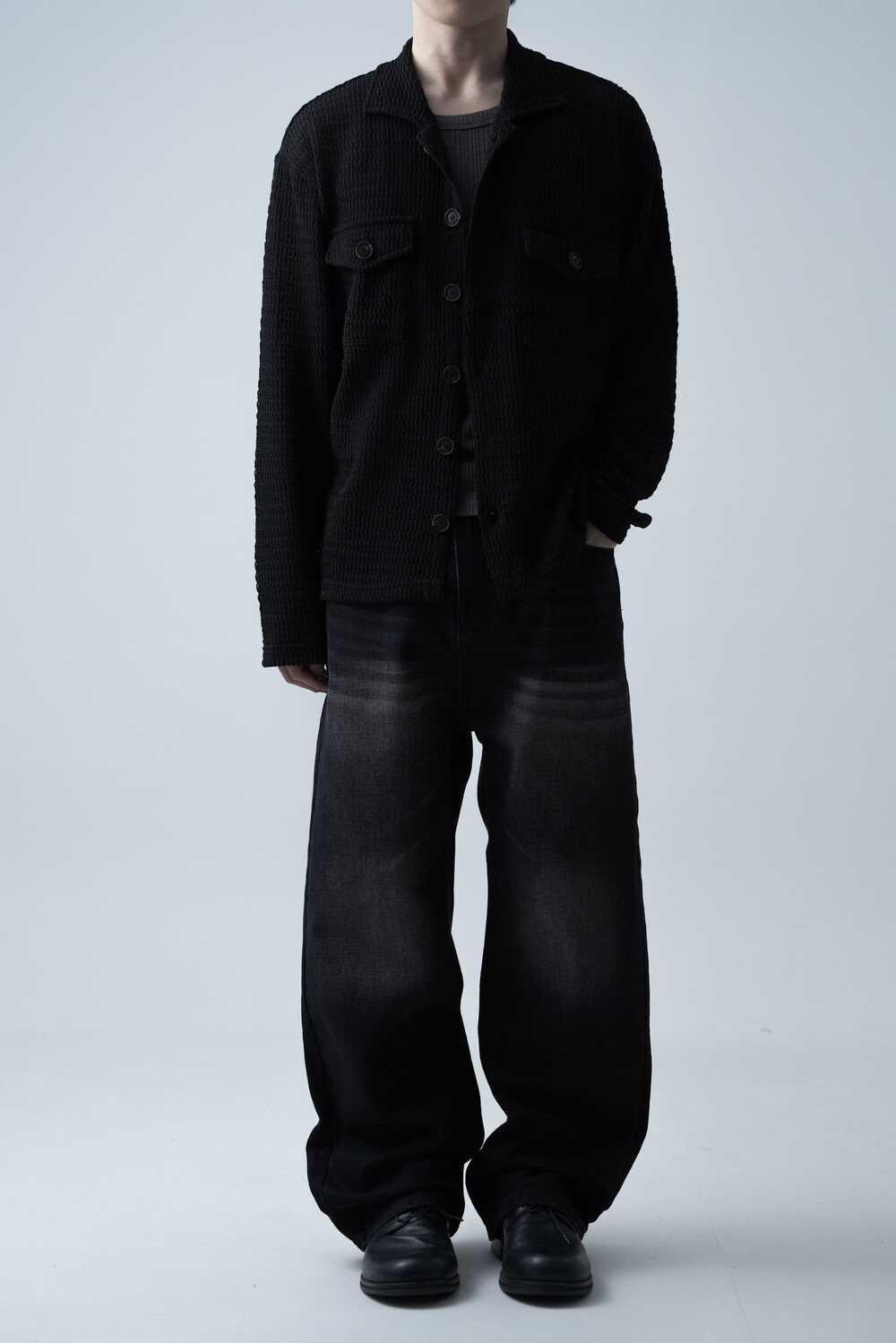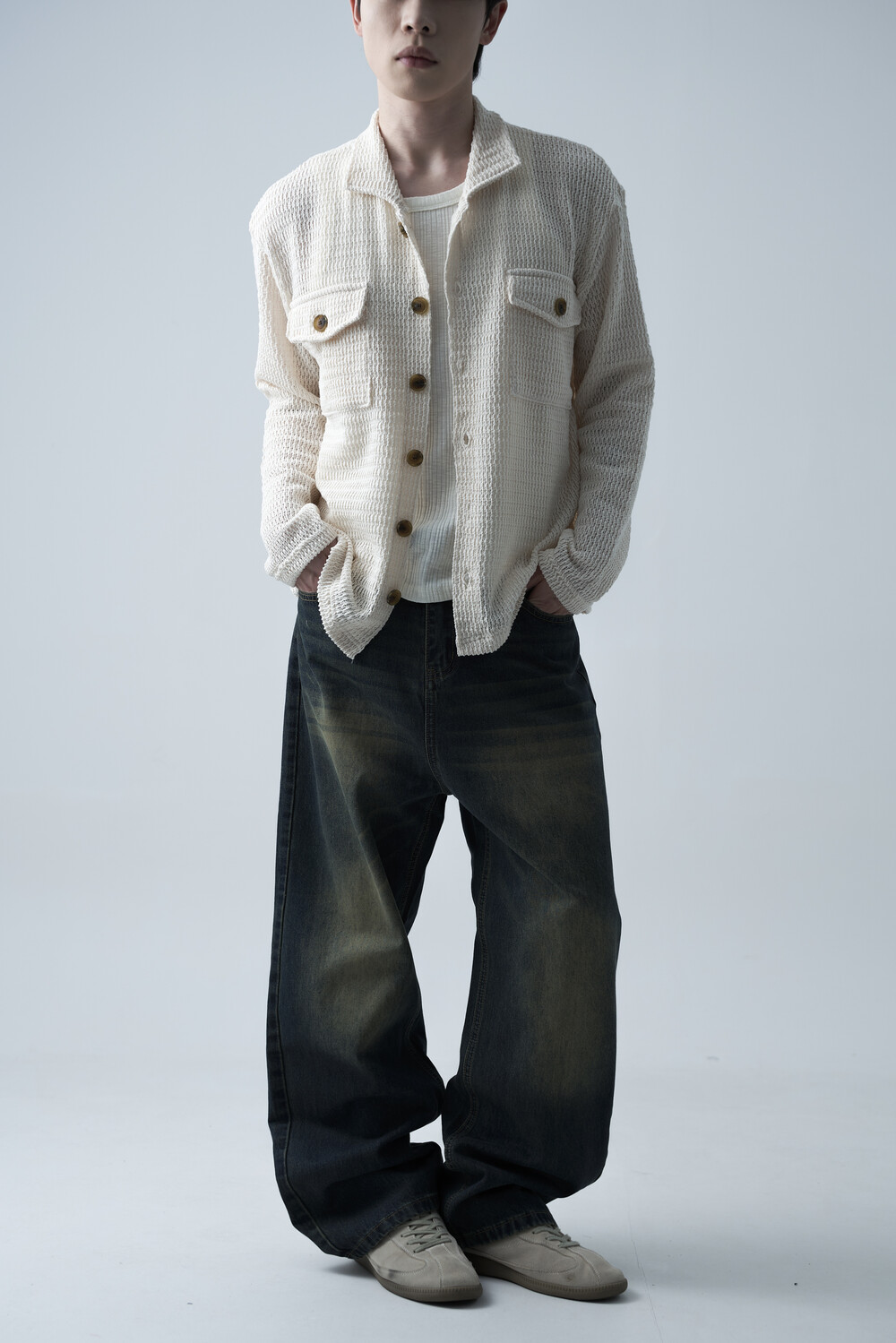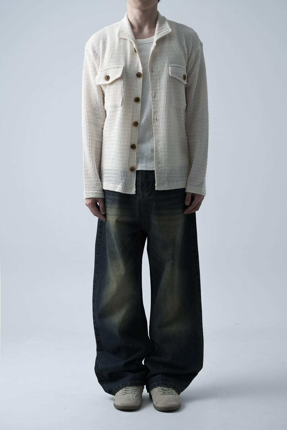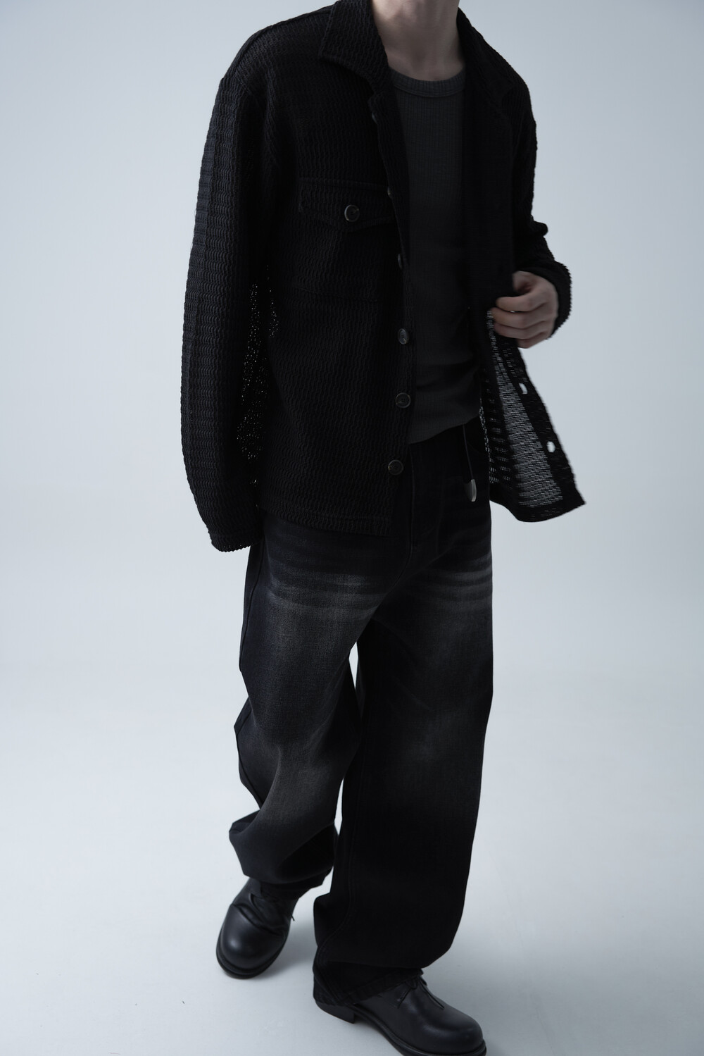여름에도 착용할 수 있는 세밀한 펀칭 텍스쳐로 구성되어 자켓 형식으로도 착용 가능한 니트 가디건 제품입니다. 고밀도 소재로 쉽게 늘어지지 않으며, 소프트한 이너와 가볍게 레이어드하는 것을 추천드립니다.