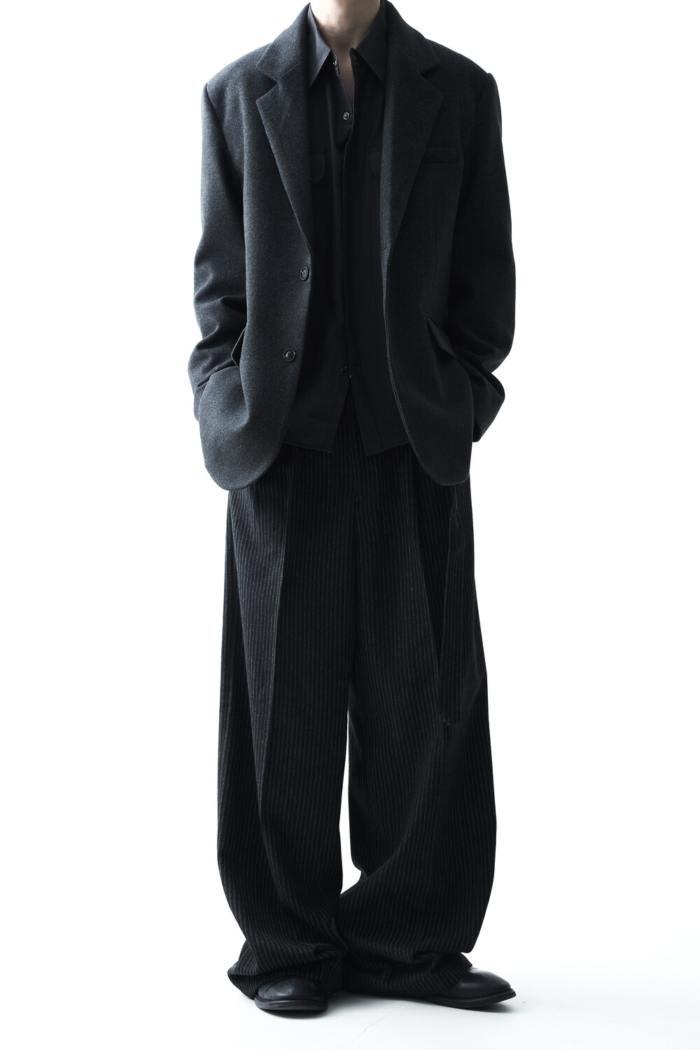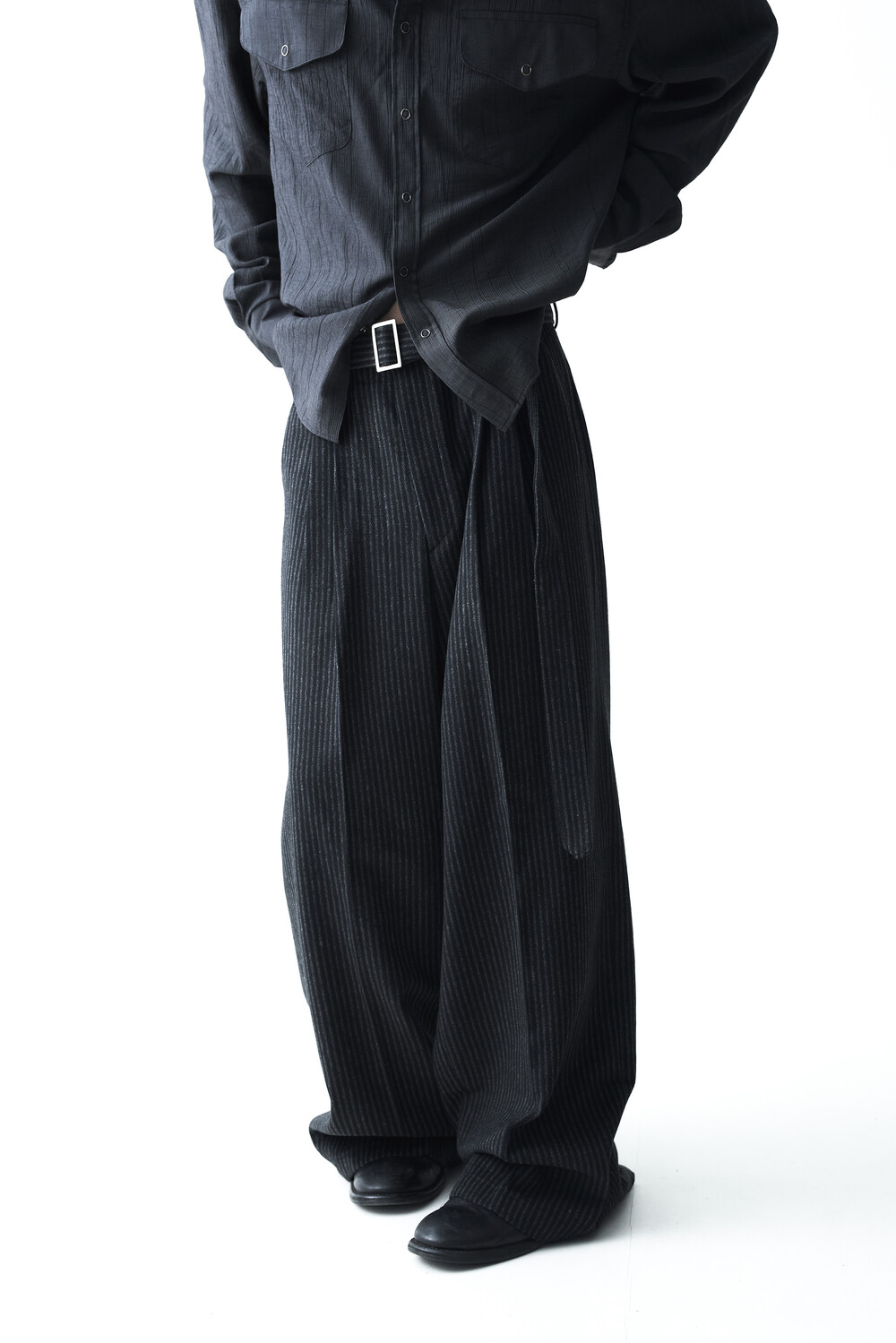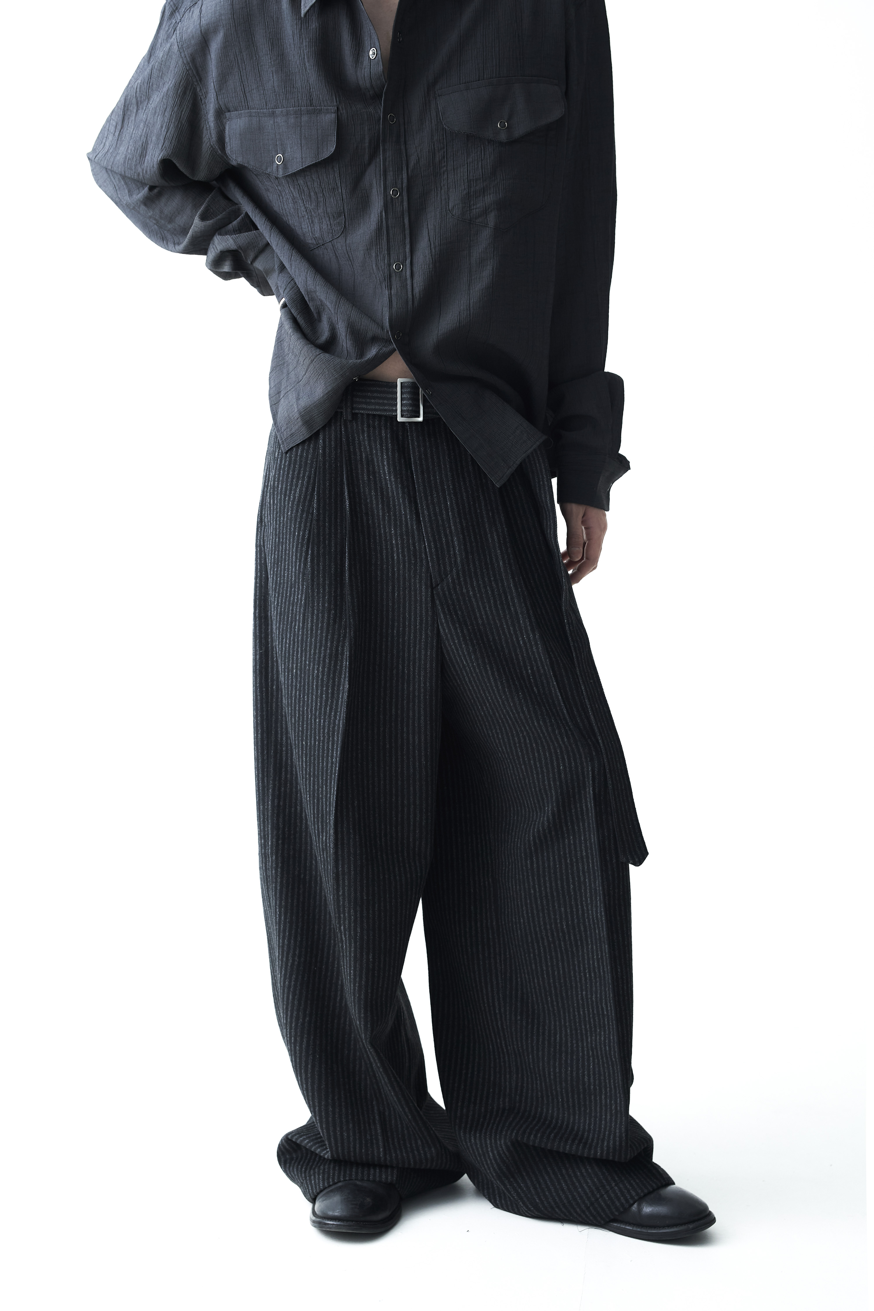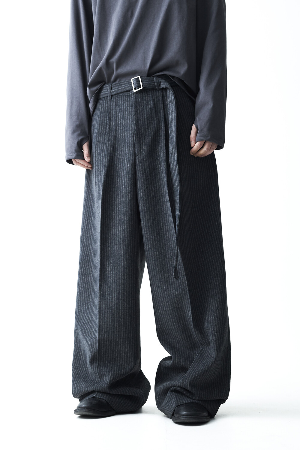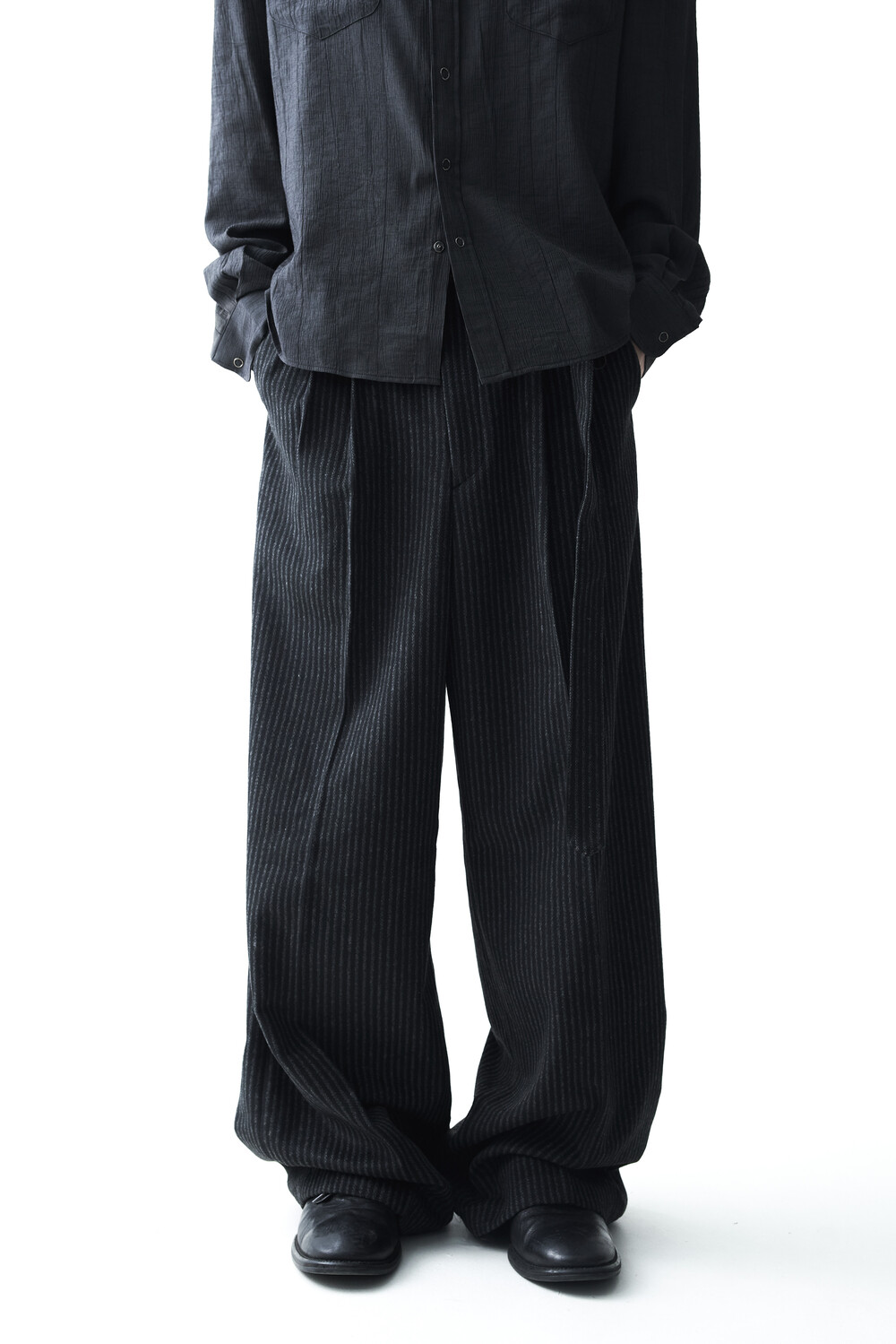 - 2핀턱 디테일이 적용된 오버와이드 울 슬렉스 제품입니다.