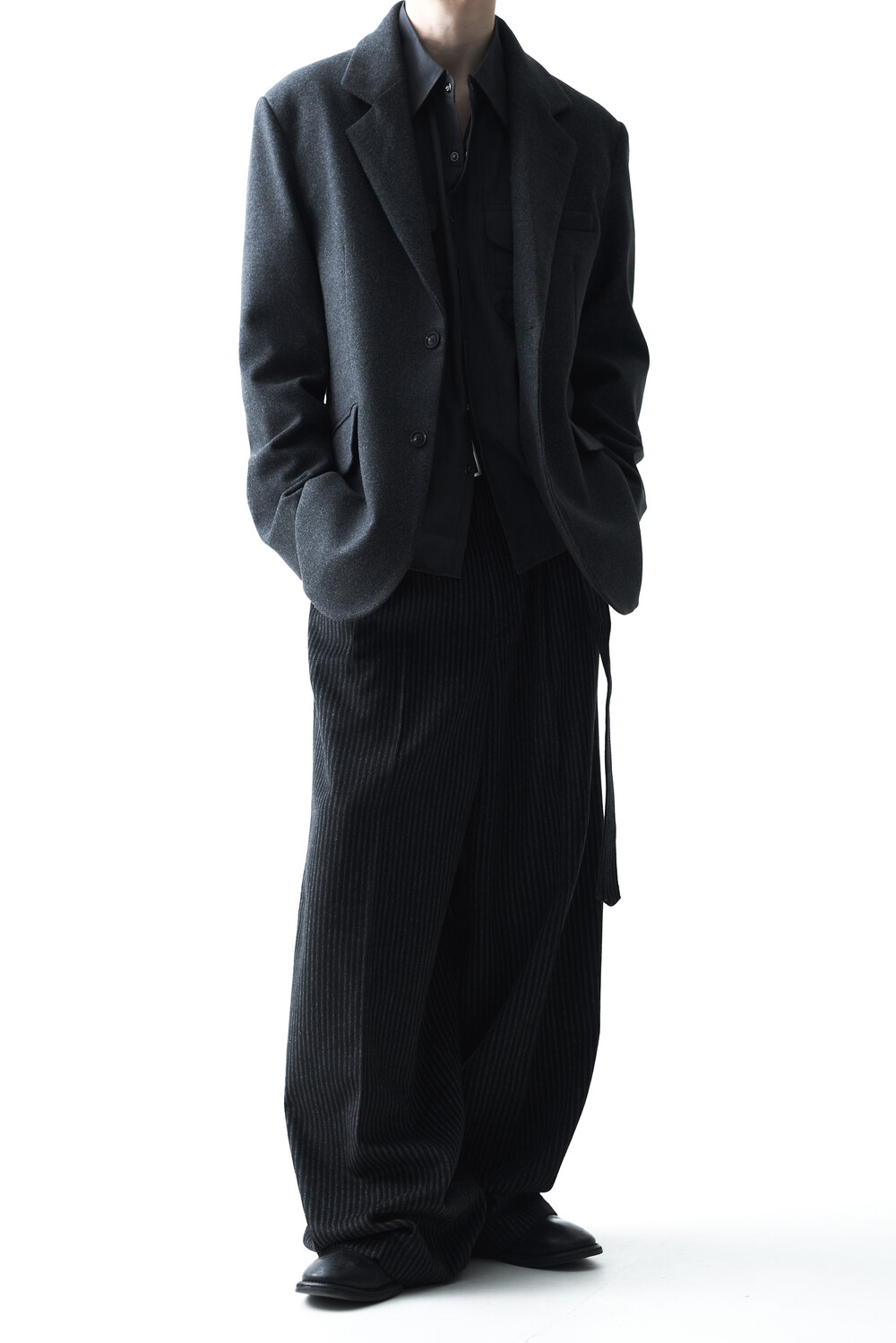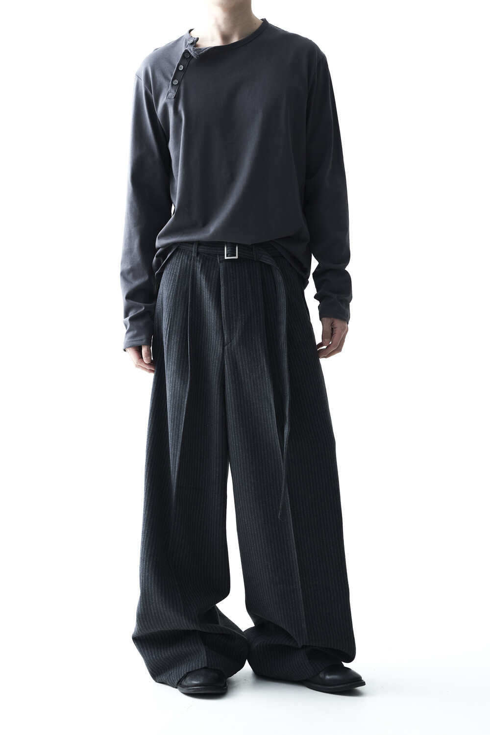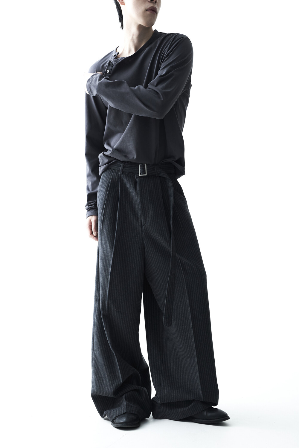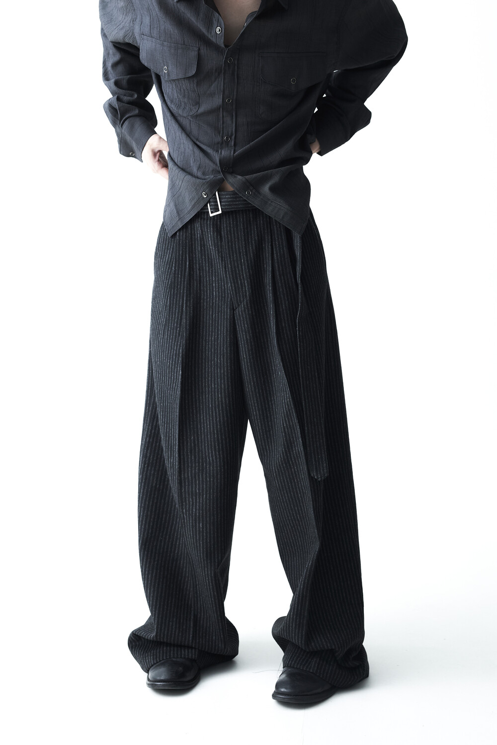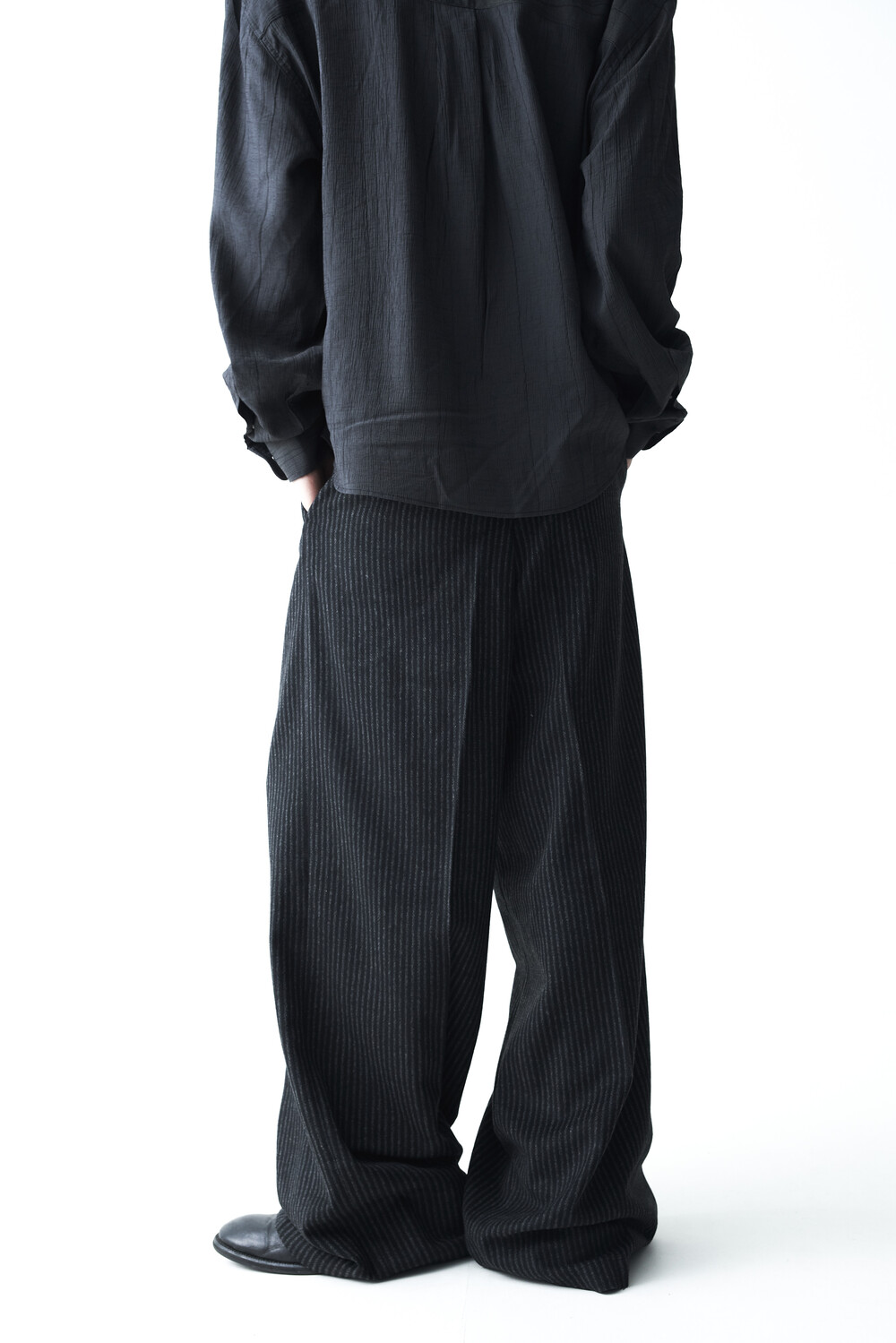 - 2핀턱 디테일이 적용된 오버와이드 울 슬렉스 제품입니다.