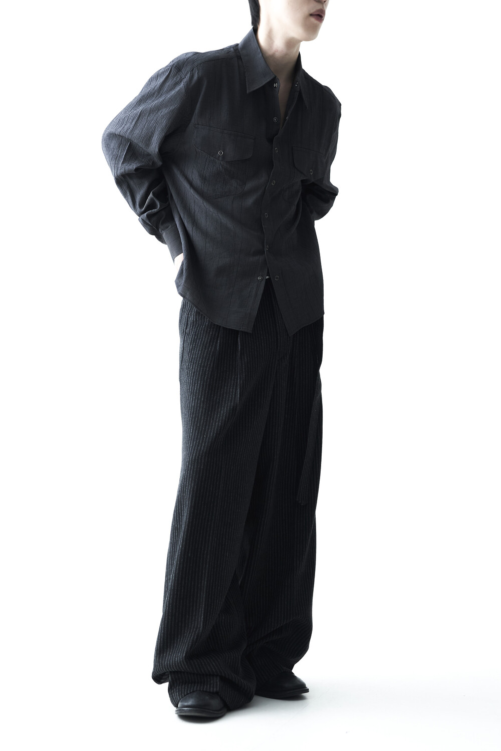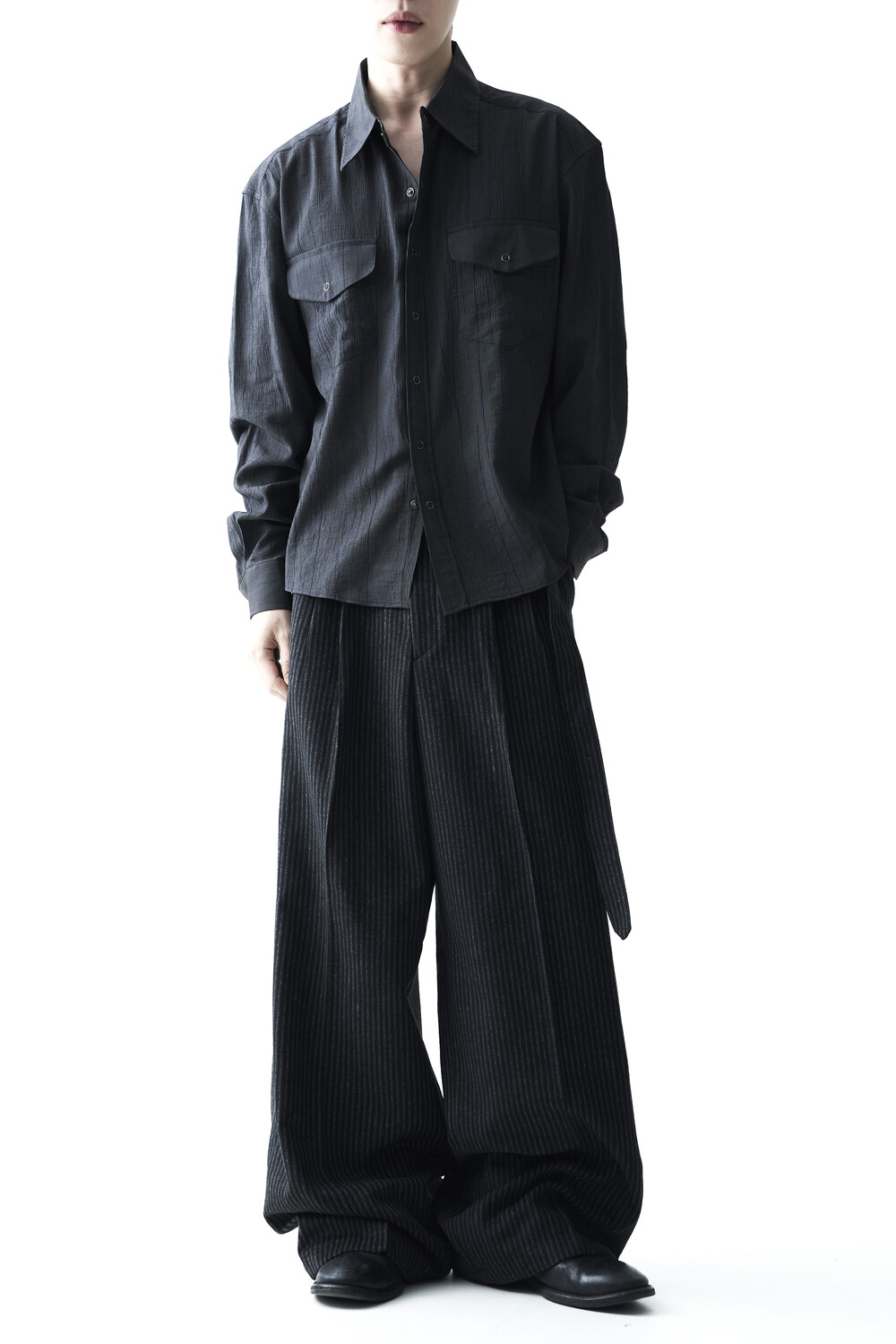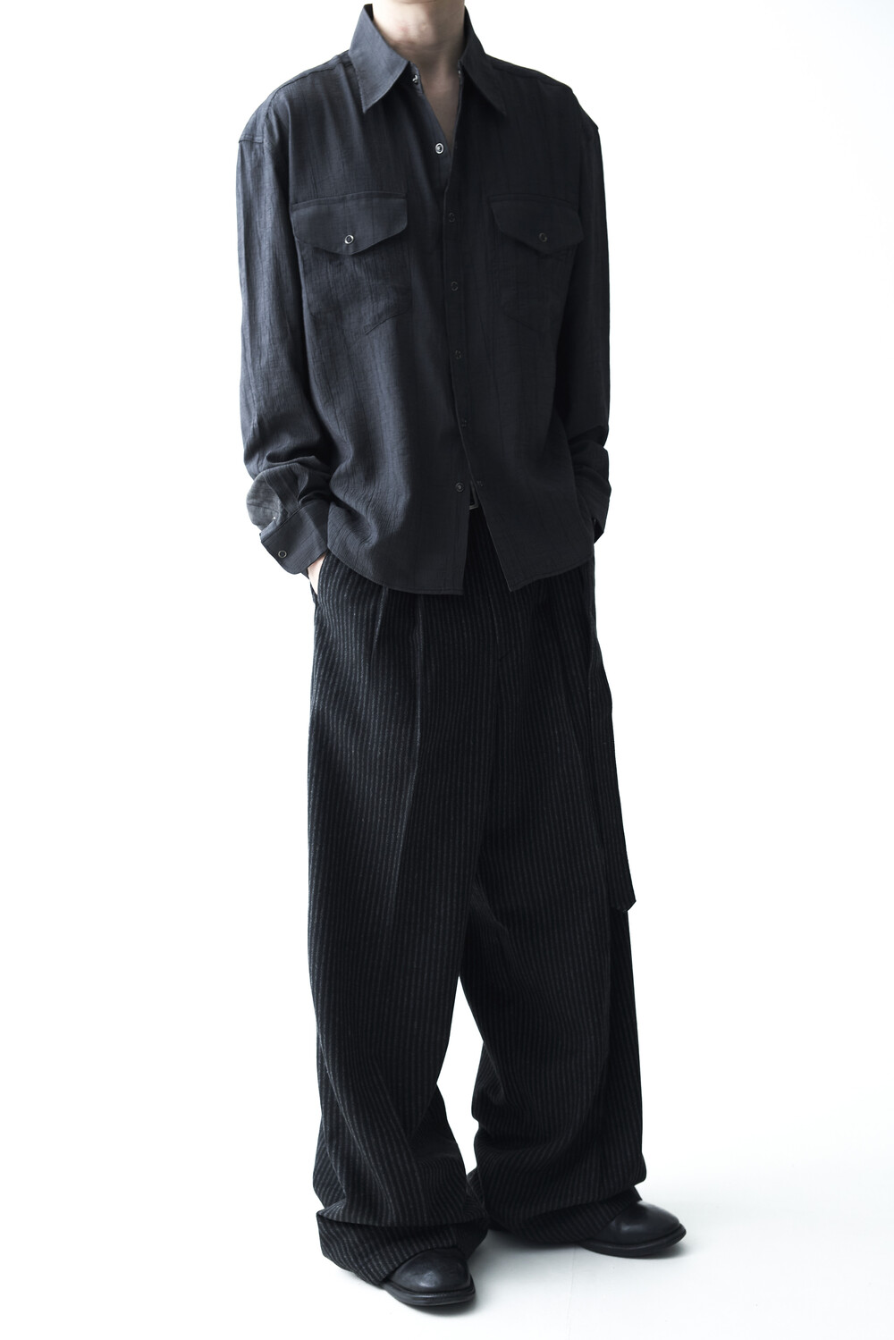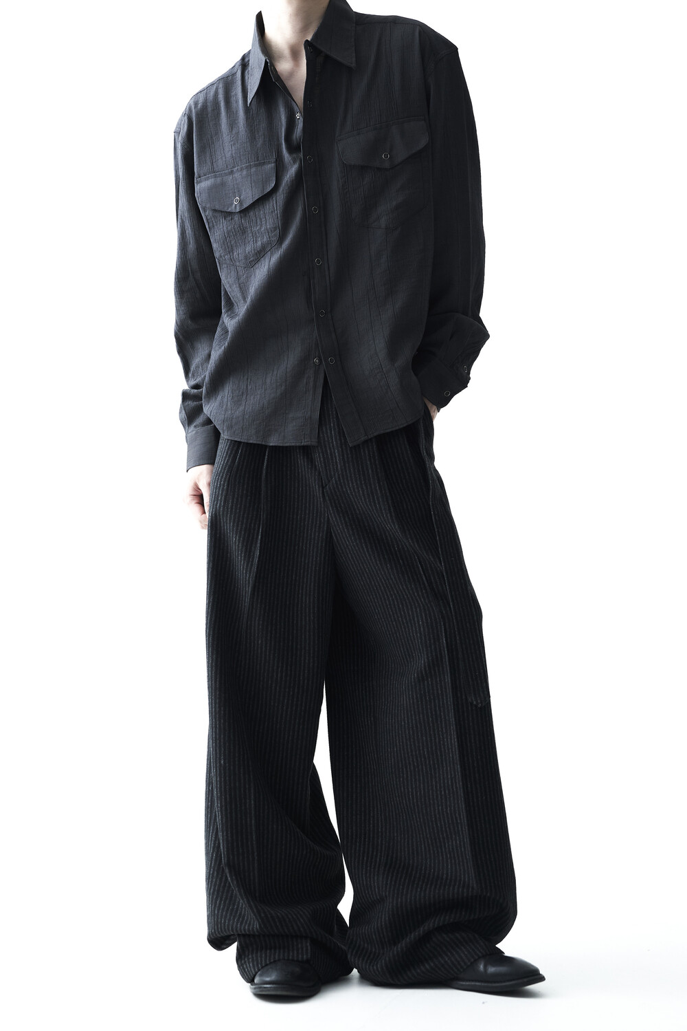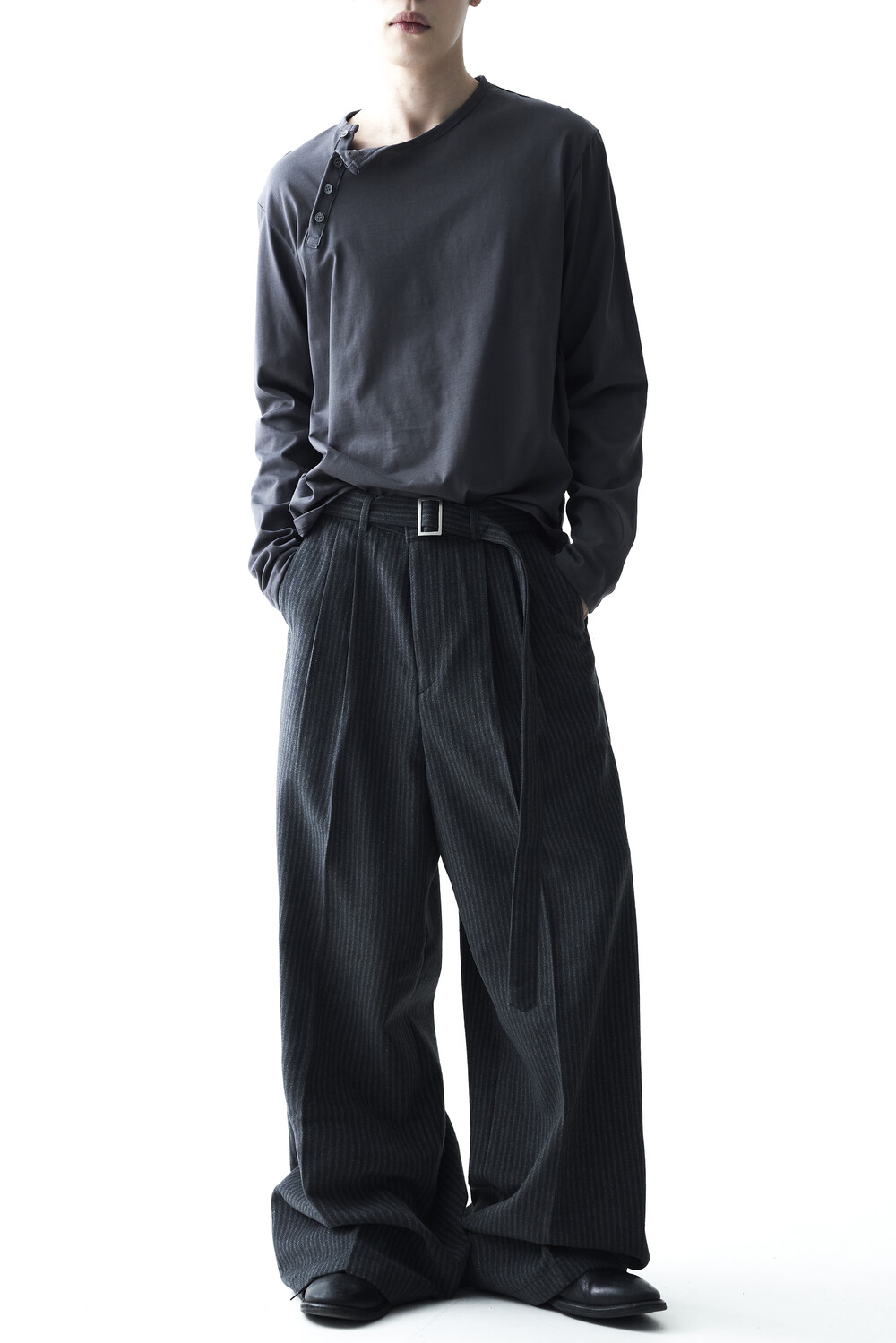 - 2핀턱 디테일이 적용된 오버와이드 울 슬렉스 제품입니다.