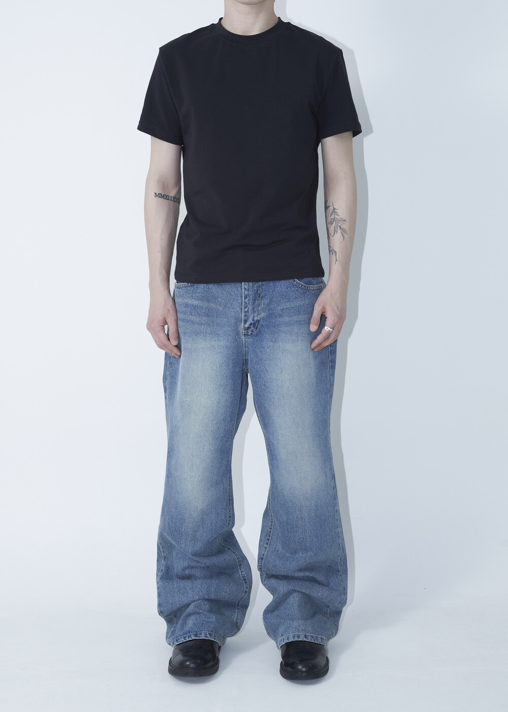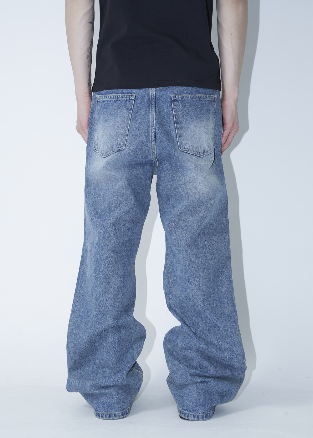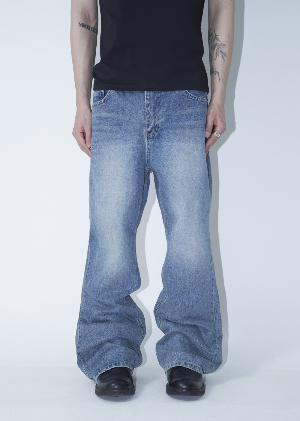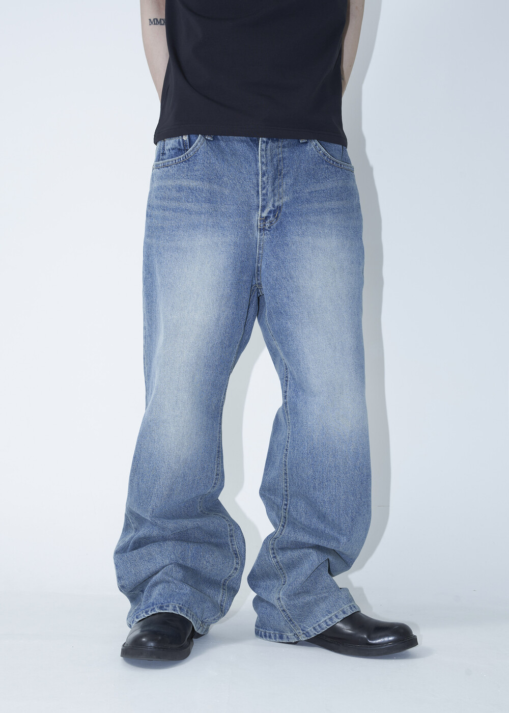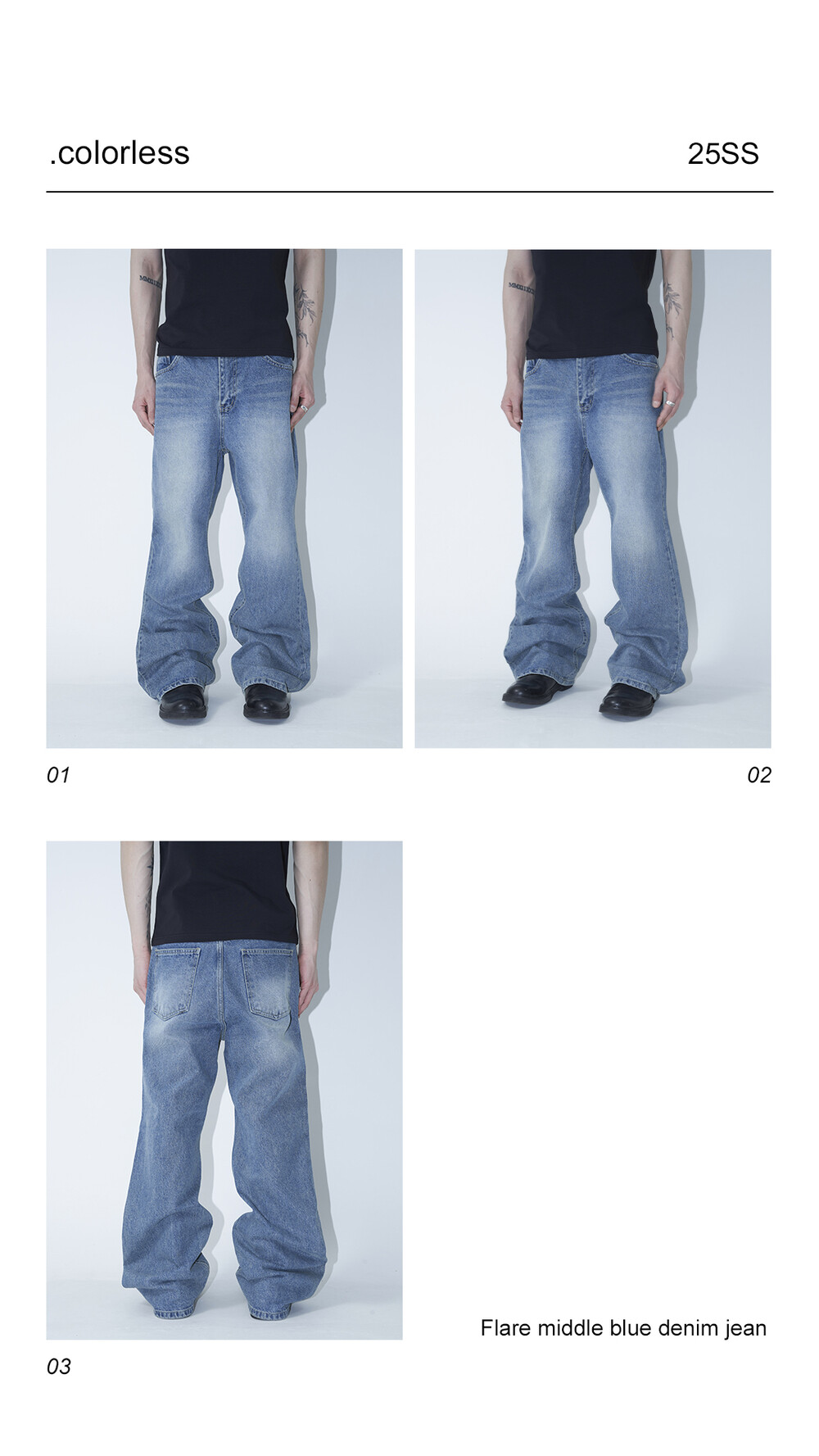 누구나 편한 부츠컷 핏감을 선사해주는 롱와이드 실루엣의 데님팬츠 제품입니다. 중청 워싱 컬러감이 안정적으로 표현되어 일상 속에서 편안한 착용이 가능합니다.