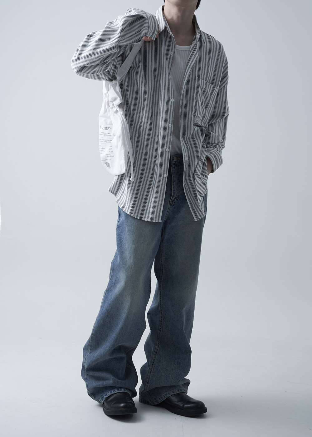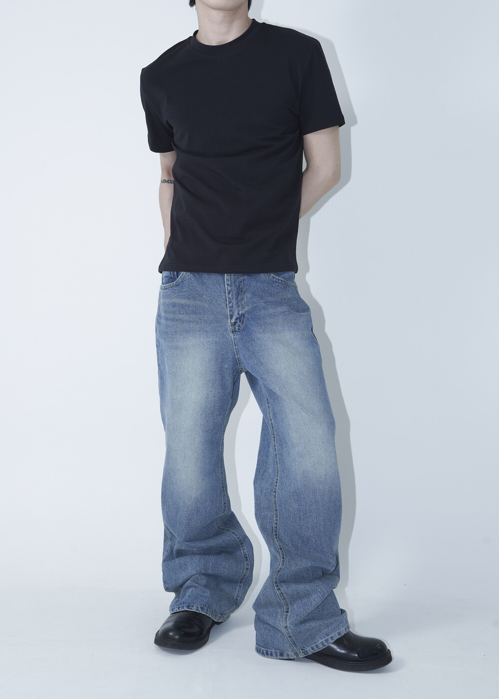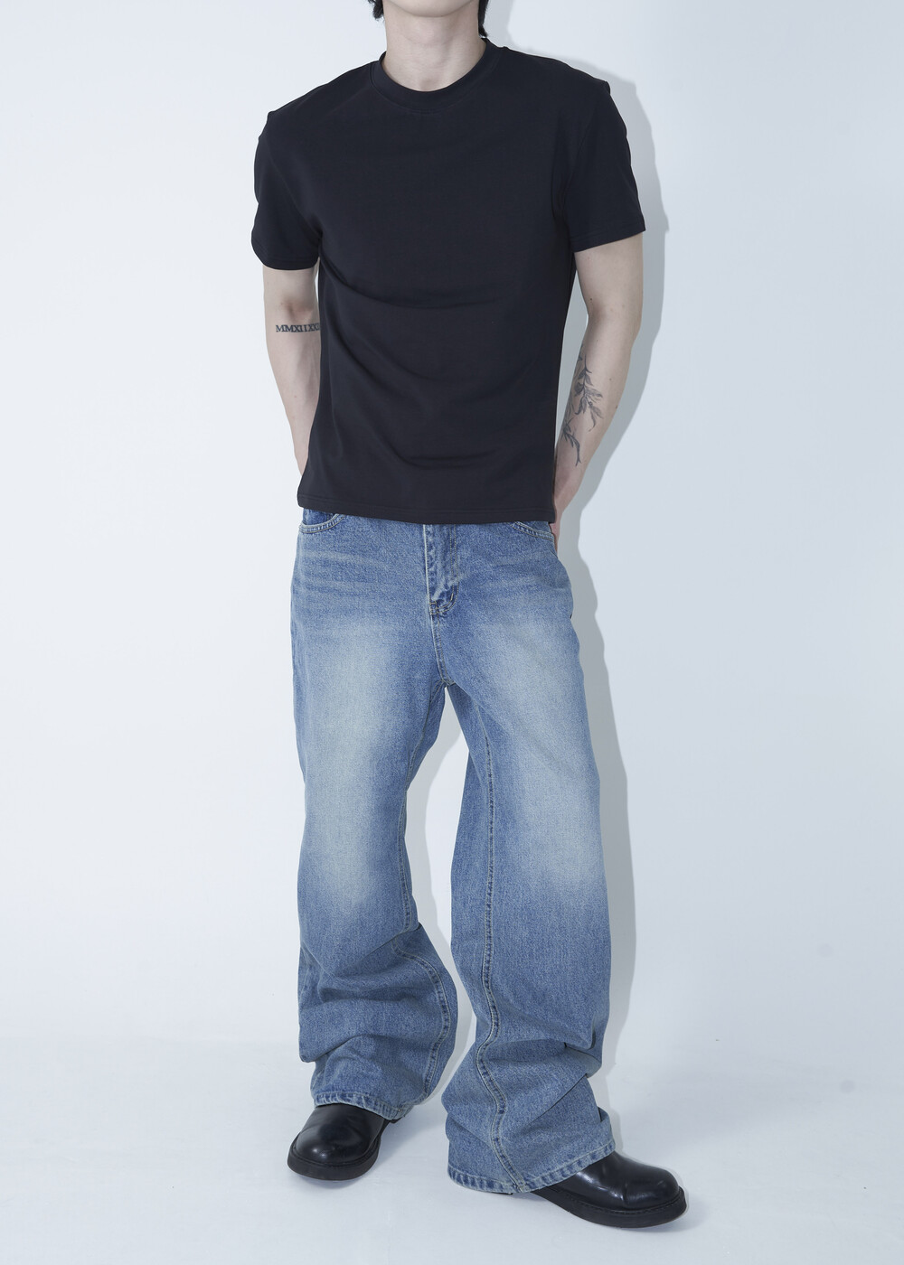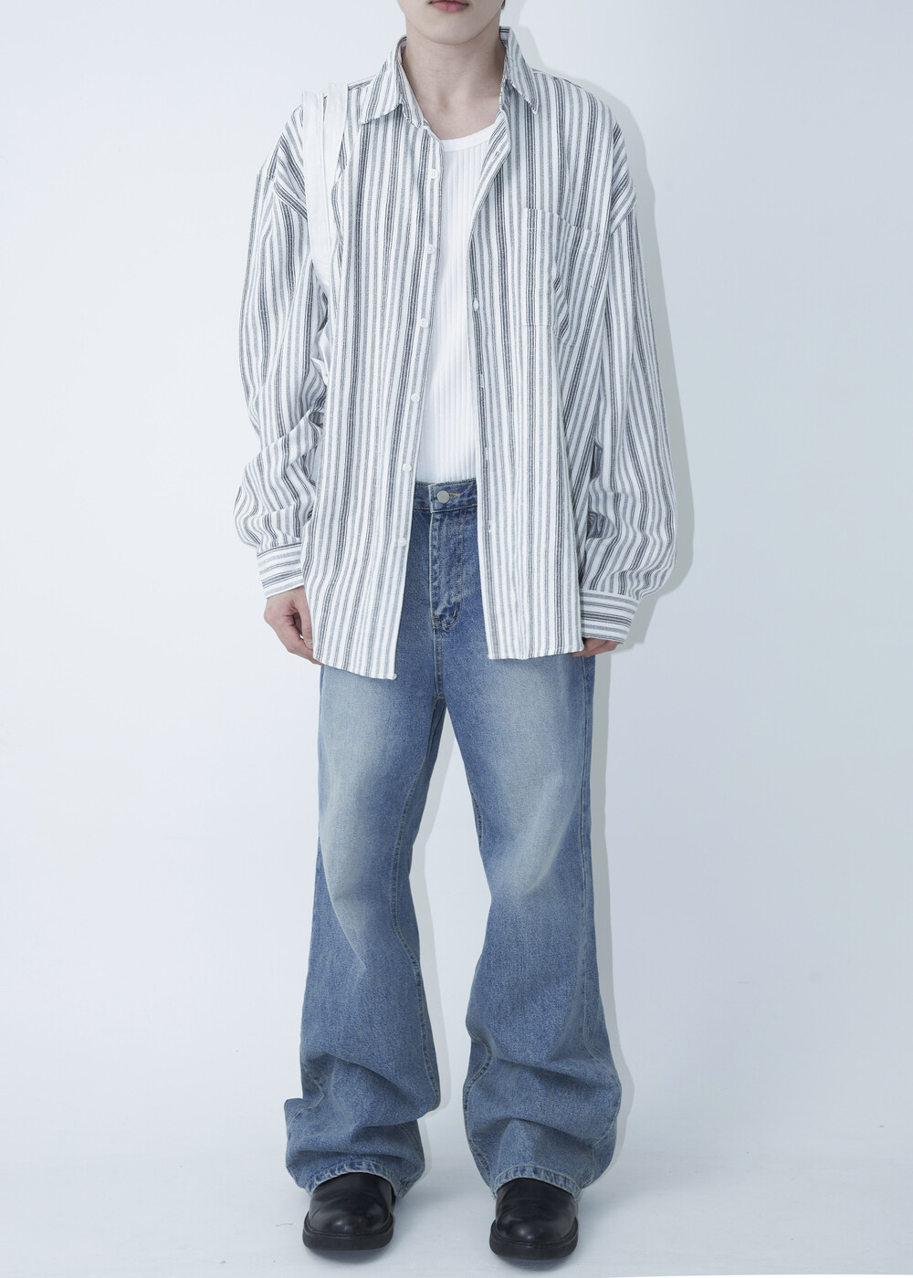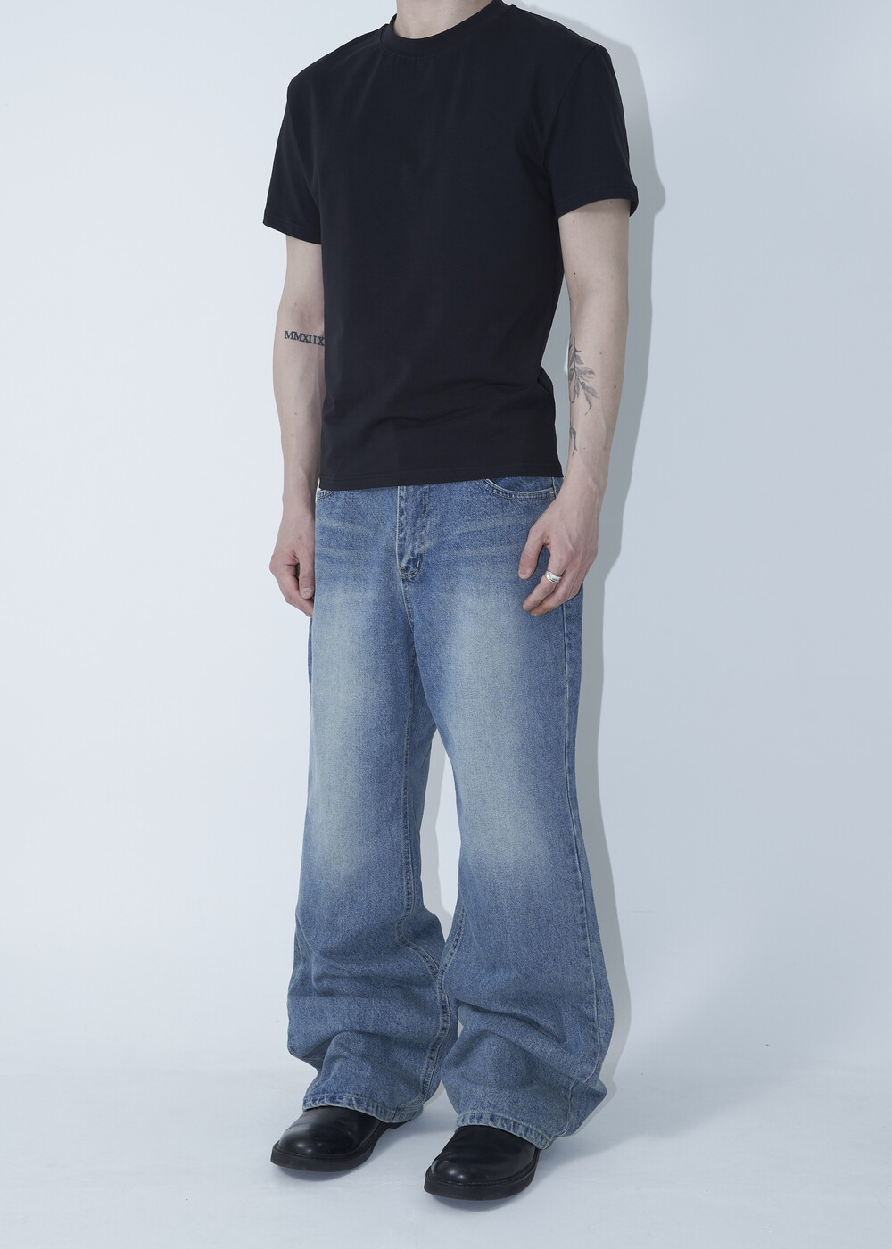 누구나 편한 부츠컷 핏감을 선사해주는 롱와이드 실루엣의 데님팬츠 제품입니다. 중청 워싱 컬러감이 안정적으로 표현되어 일상 속에서 편안한 착용이 가능합니다.