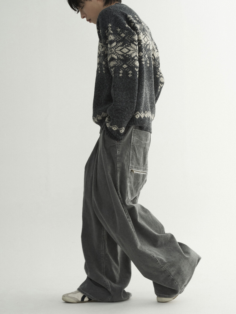 - 배기팬츠와 같은 풀오버한 핏과 넓은 밑단으로 남녀 모두 착용 가능