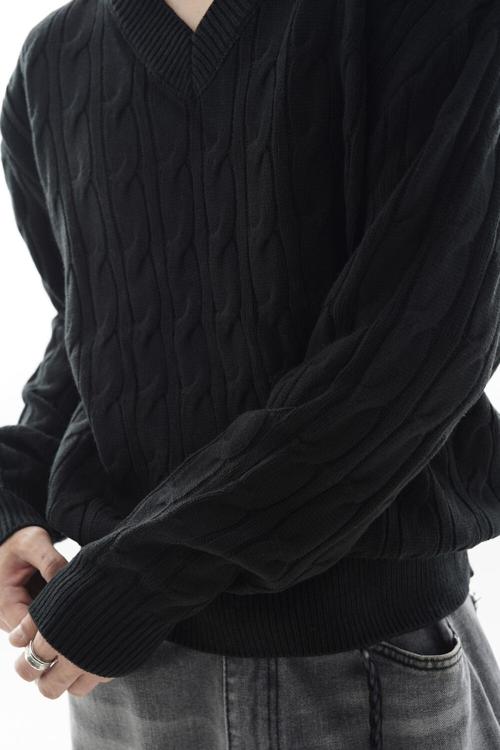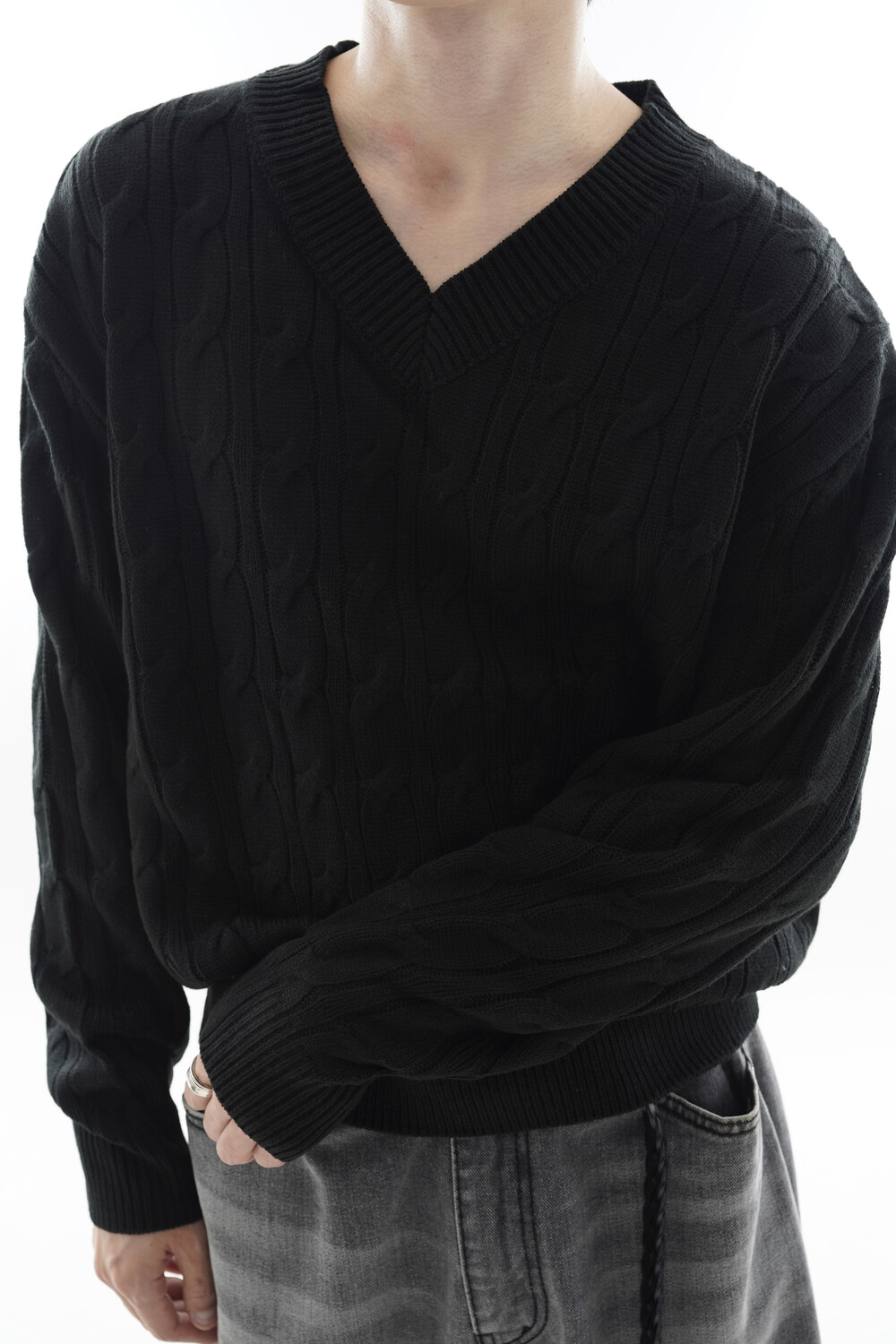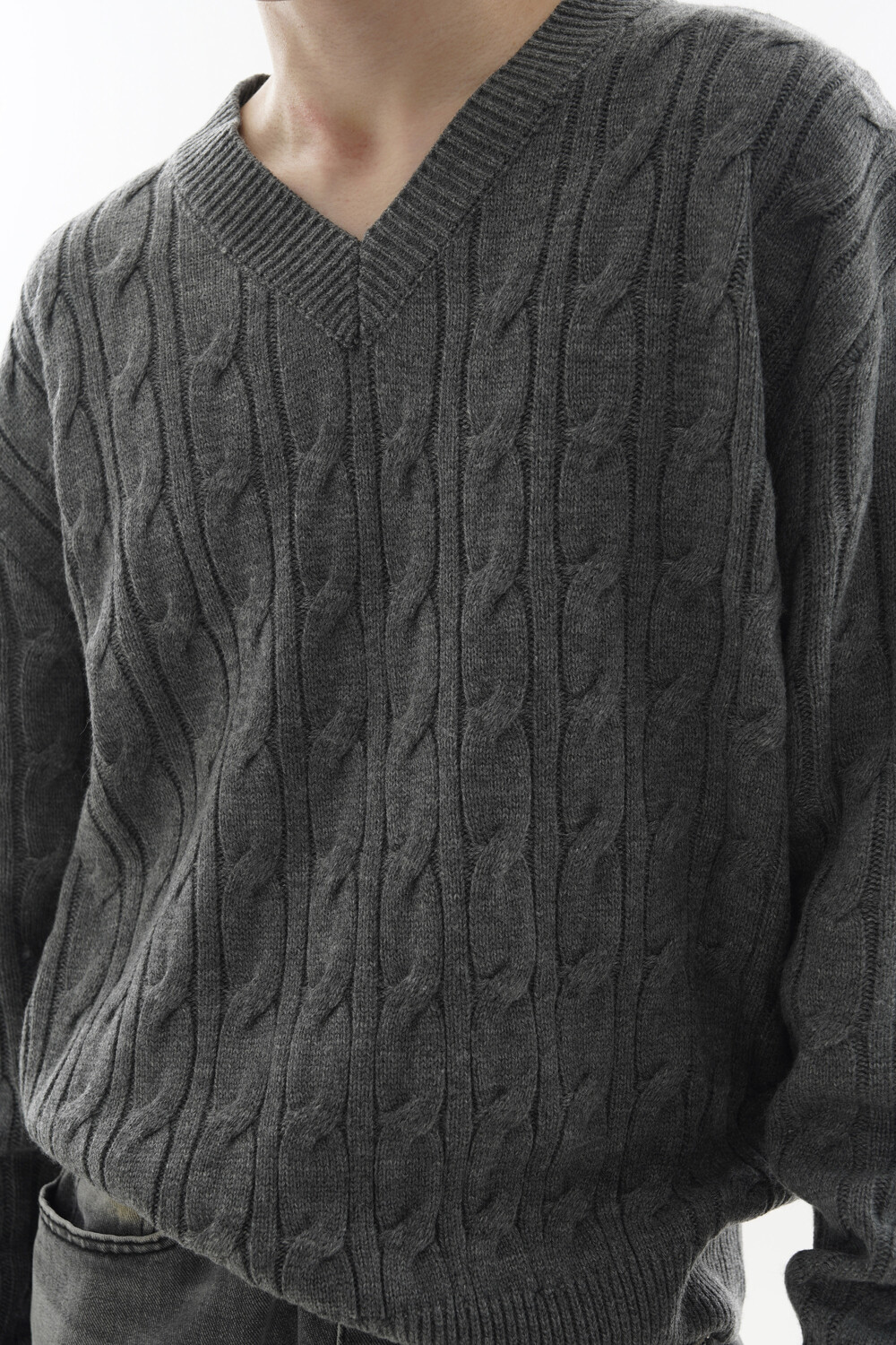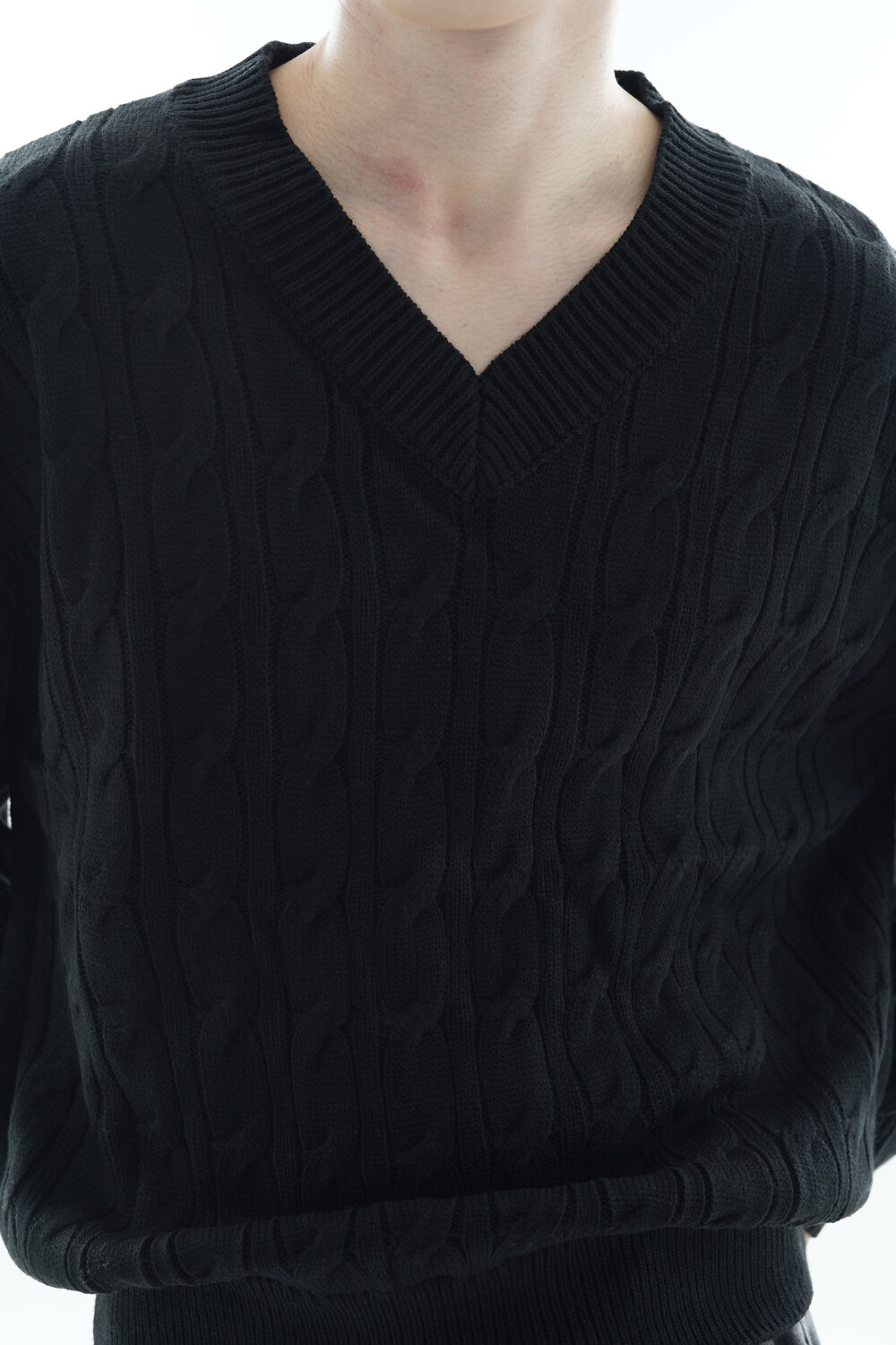 - Deep V neck detail