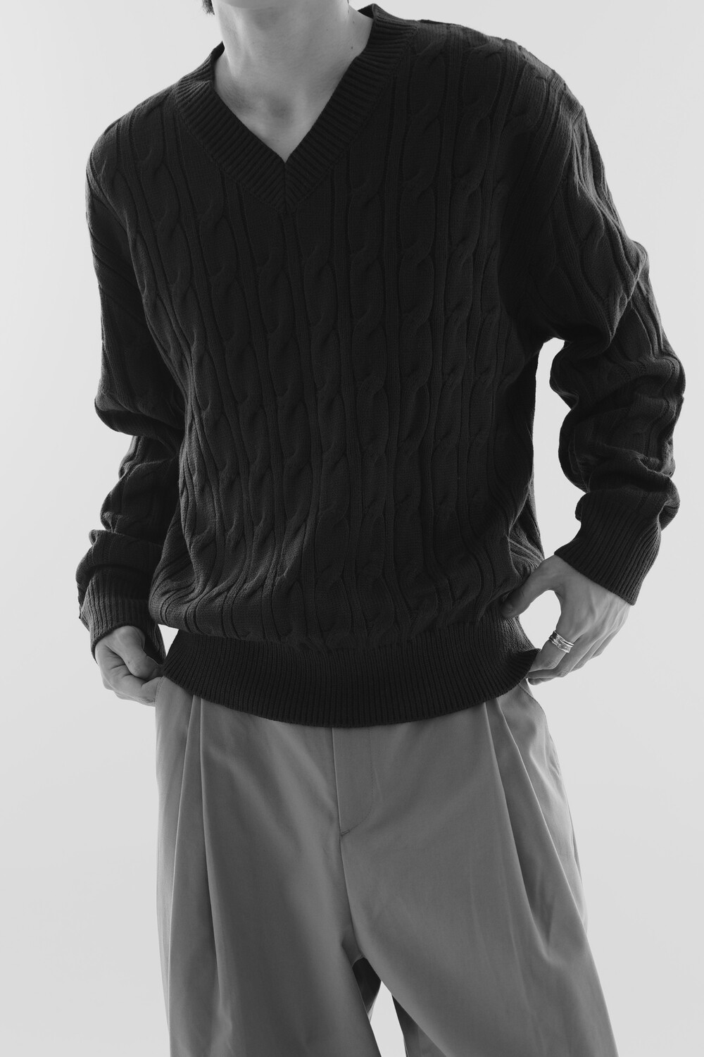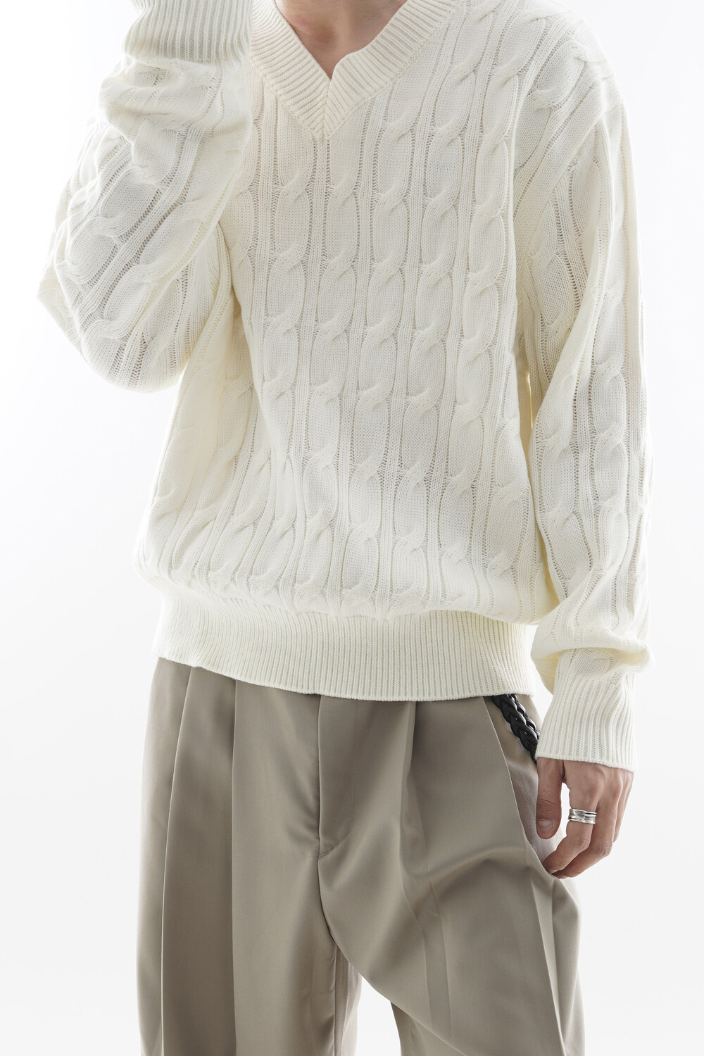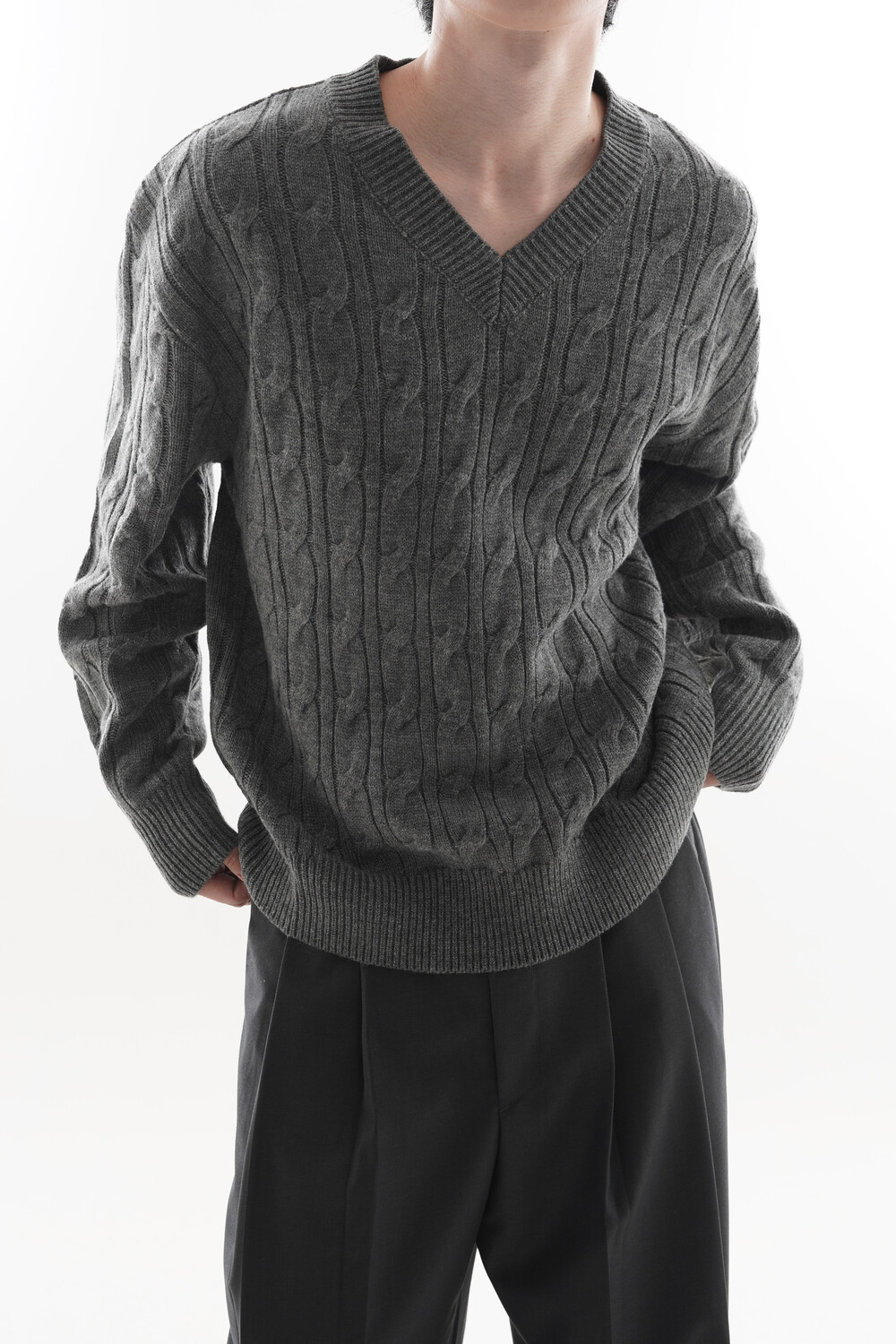 - Deep V neck detail