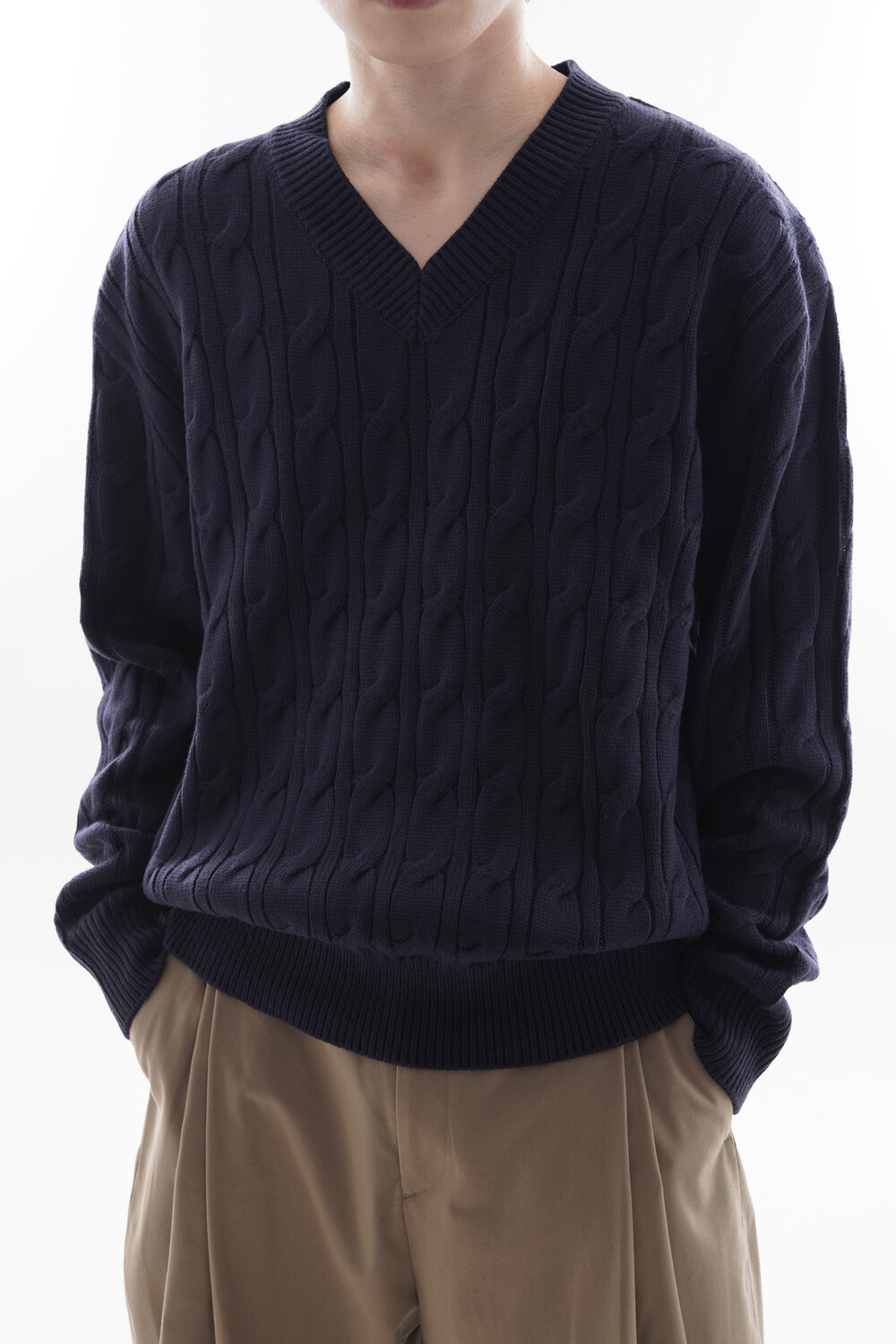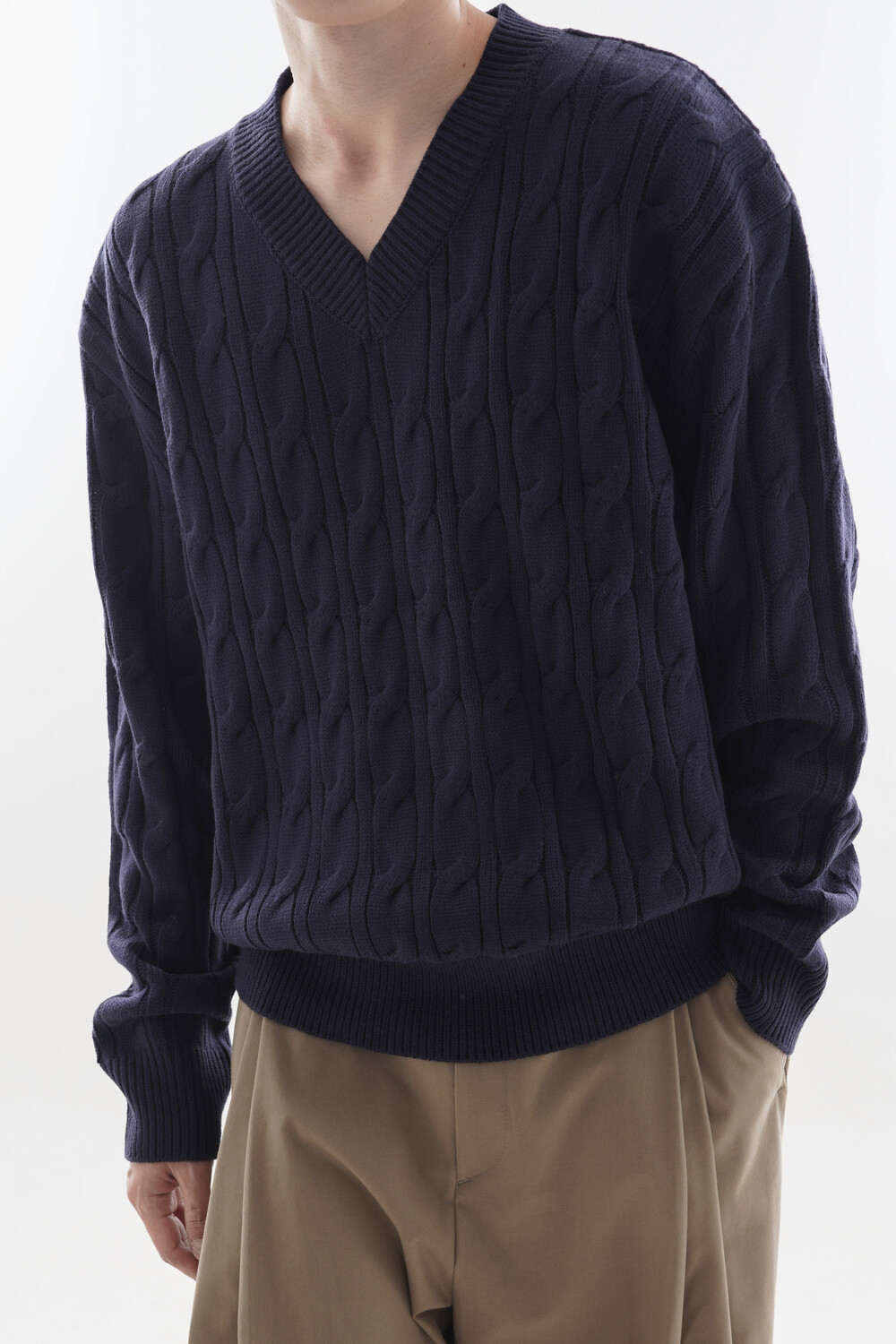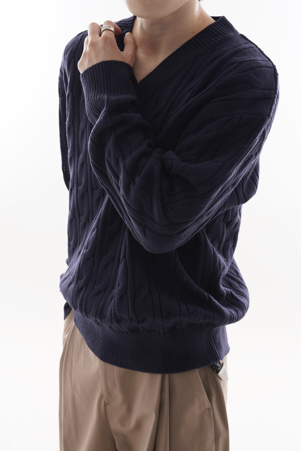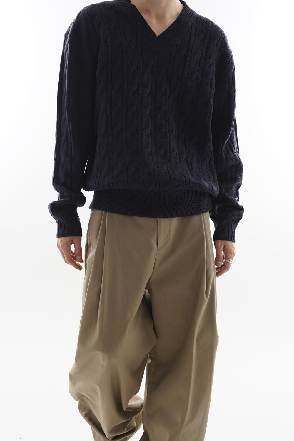 - Deep V neck detail