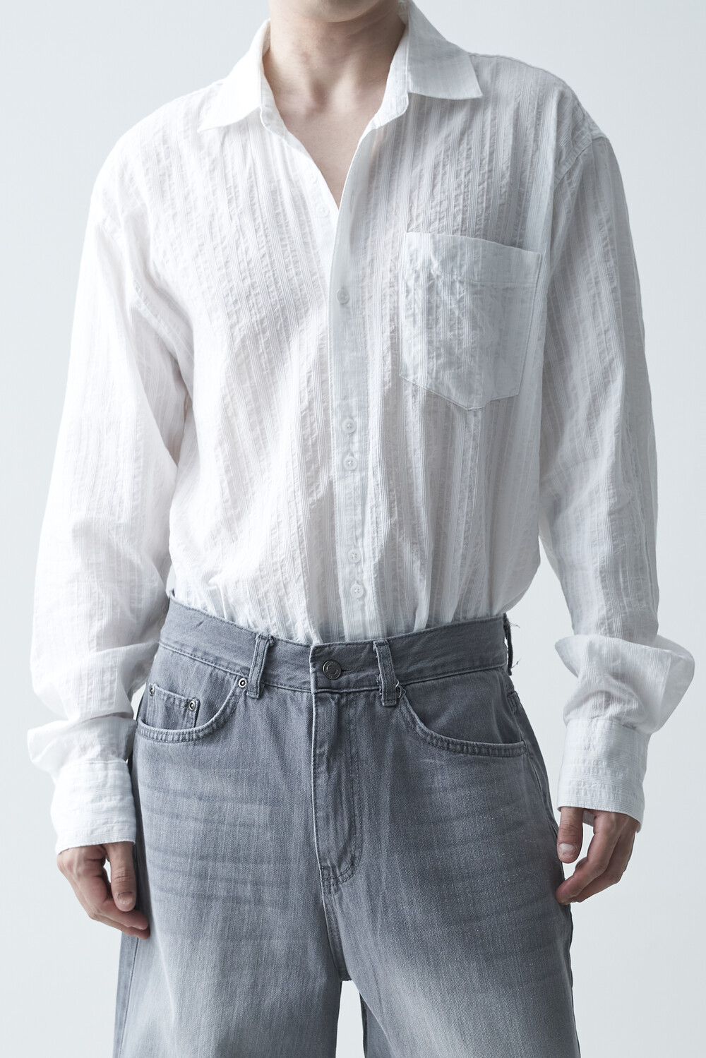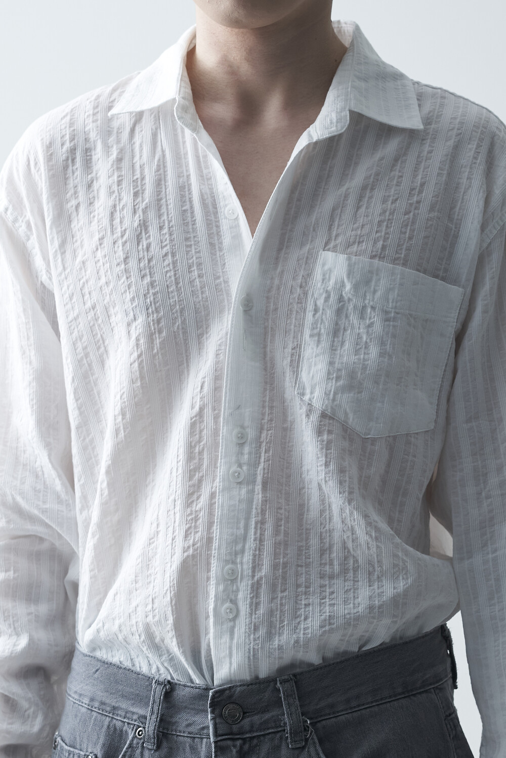 유니크한 버튼 디테일과 후가공 워싱 마감으로 내츄럴한 워시드 컬러감이 매력적인 소프트 셔츠 제품입니다. 얇은 두께감으로 여름까지 편안하게 착용할 수 있습니다.