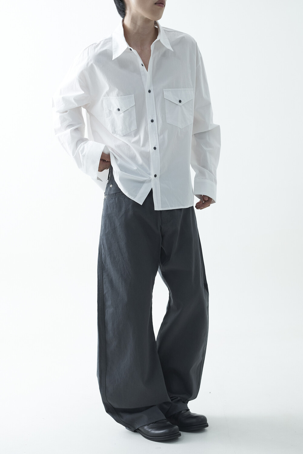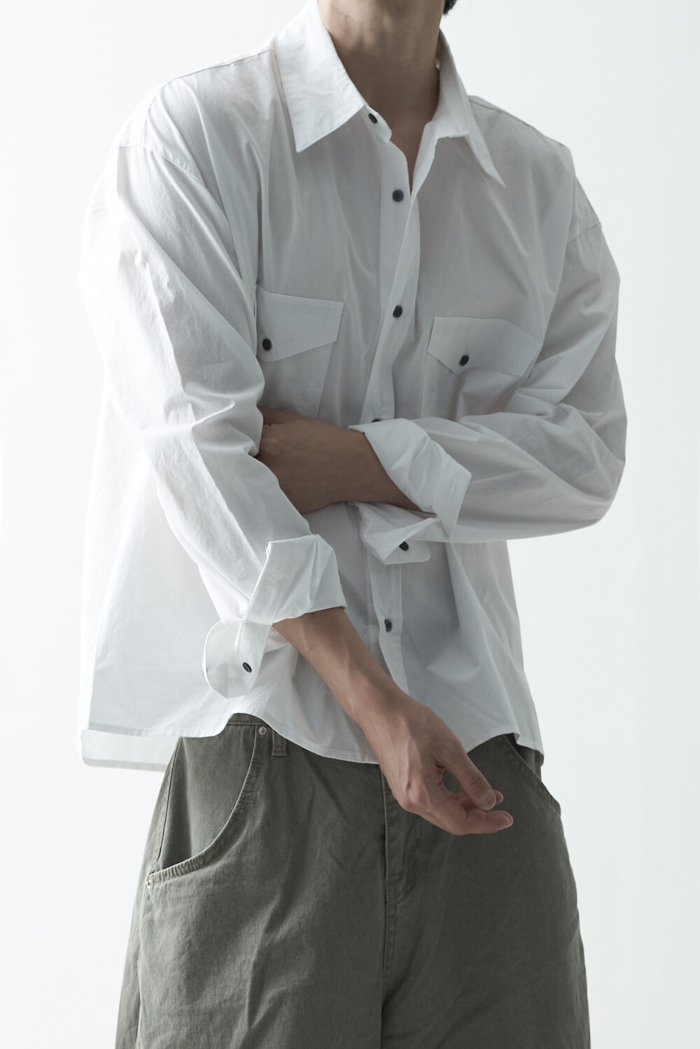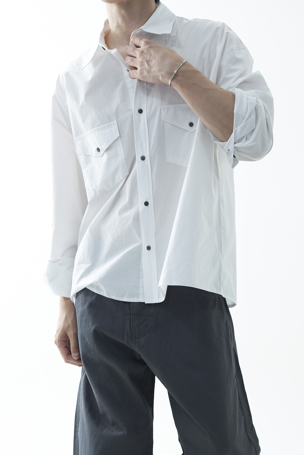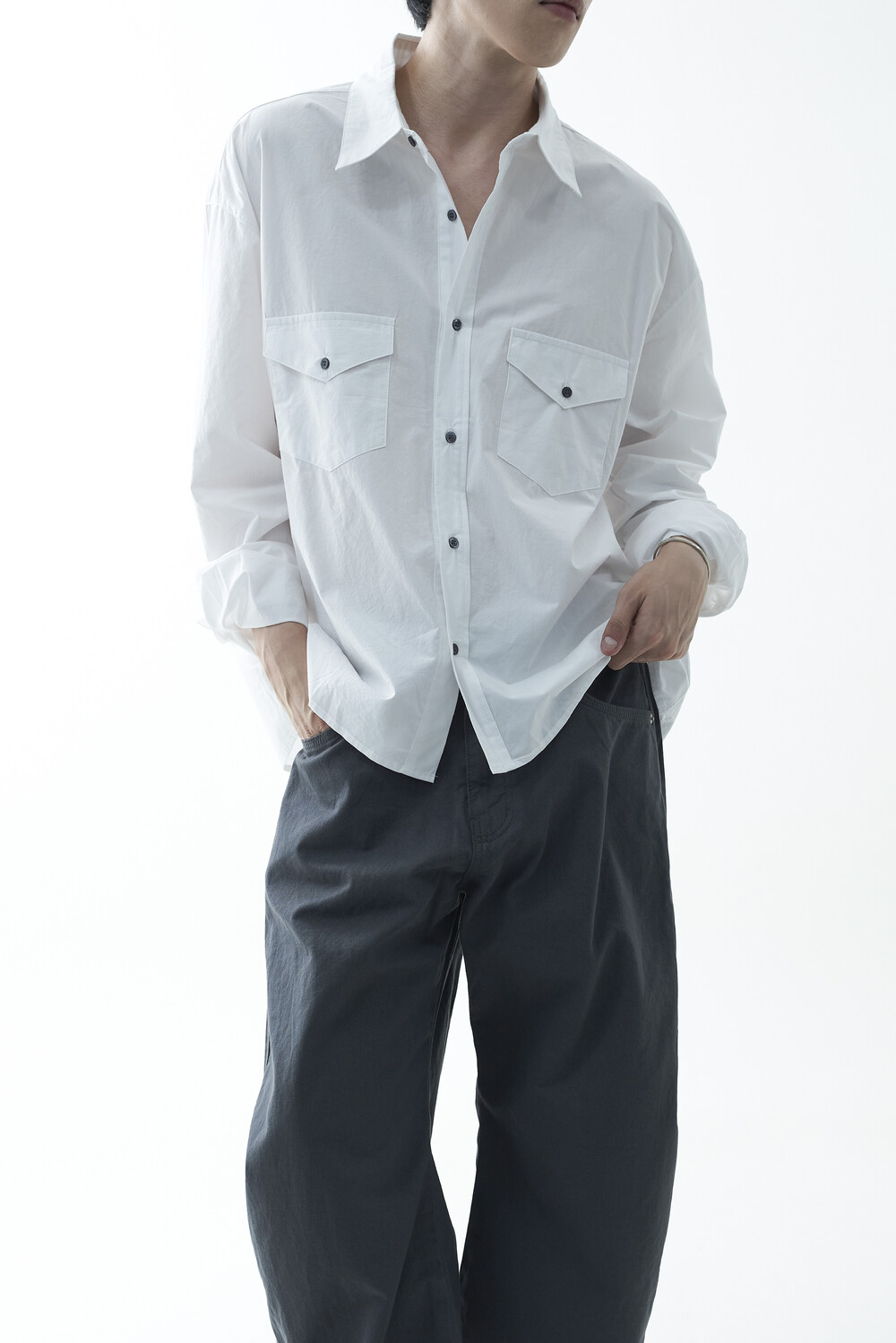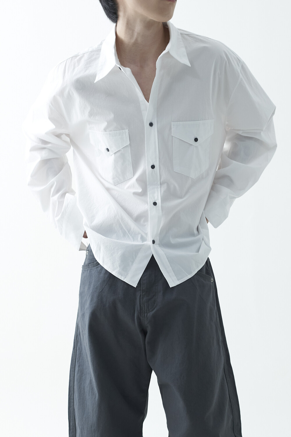 전면부의 포인트 투포켓과 크롭한 기장감으로 깔끔한 아웃핏을 연출하는 셔츠 제품입니다.