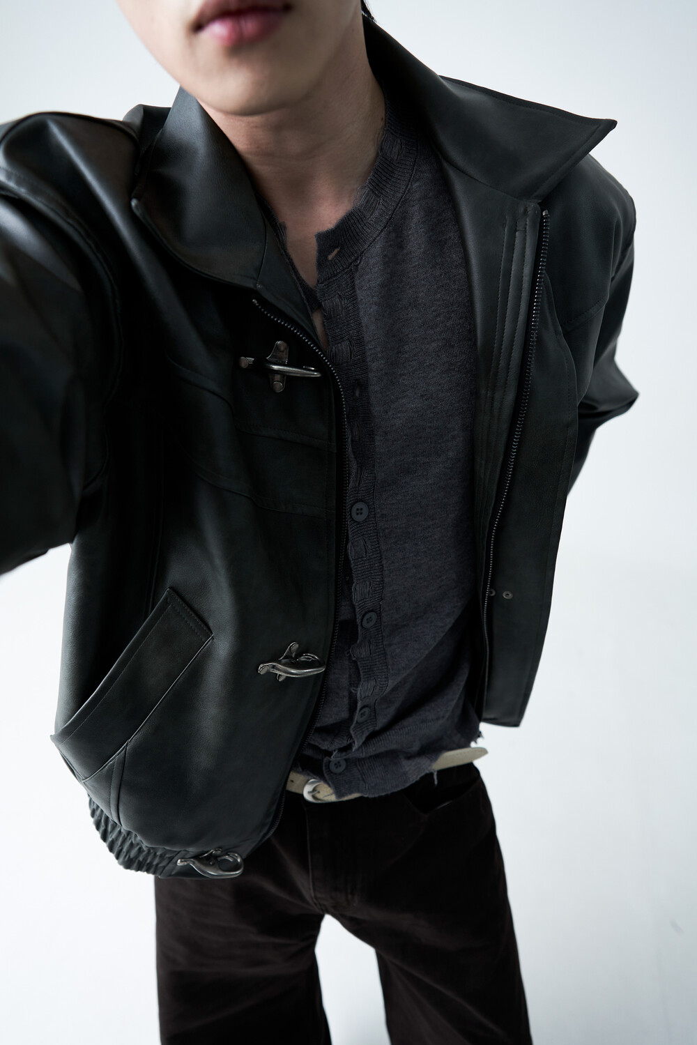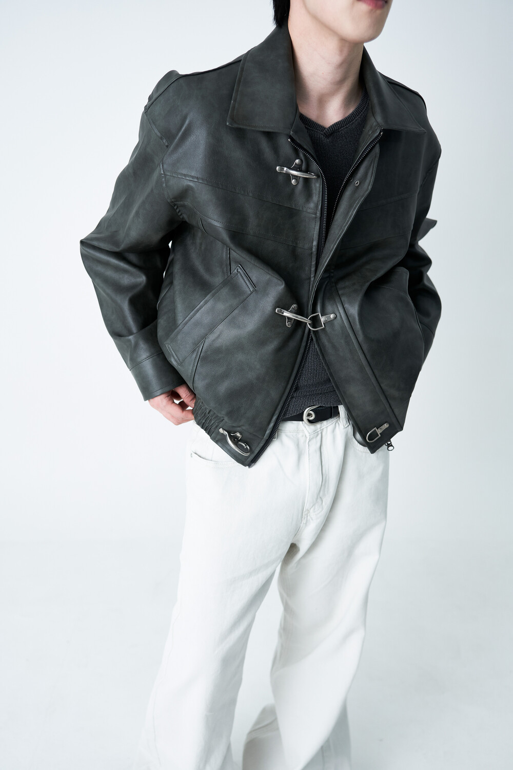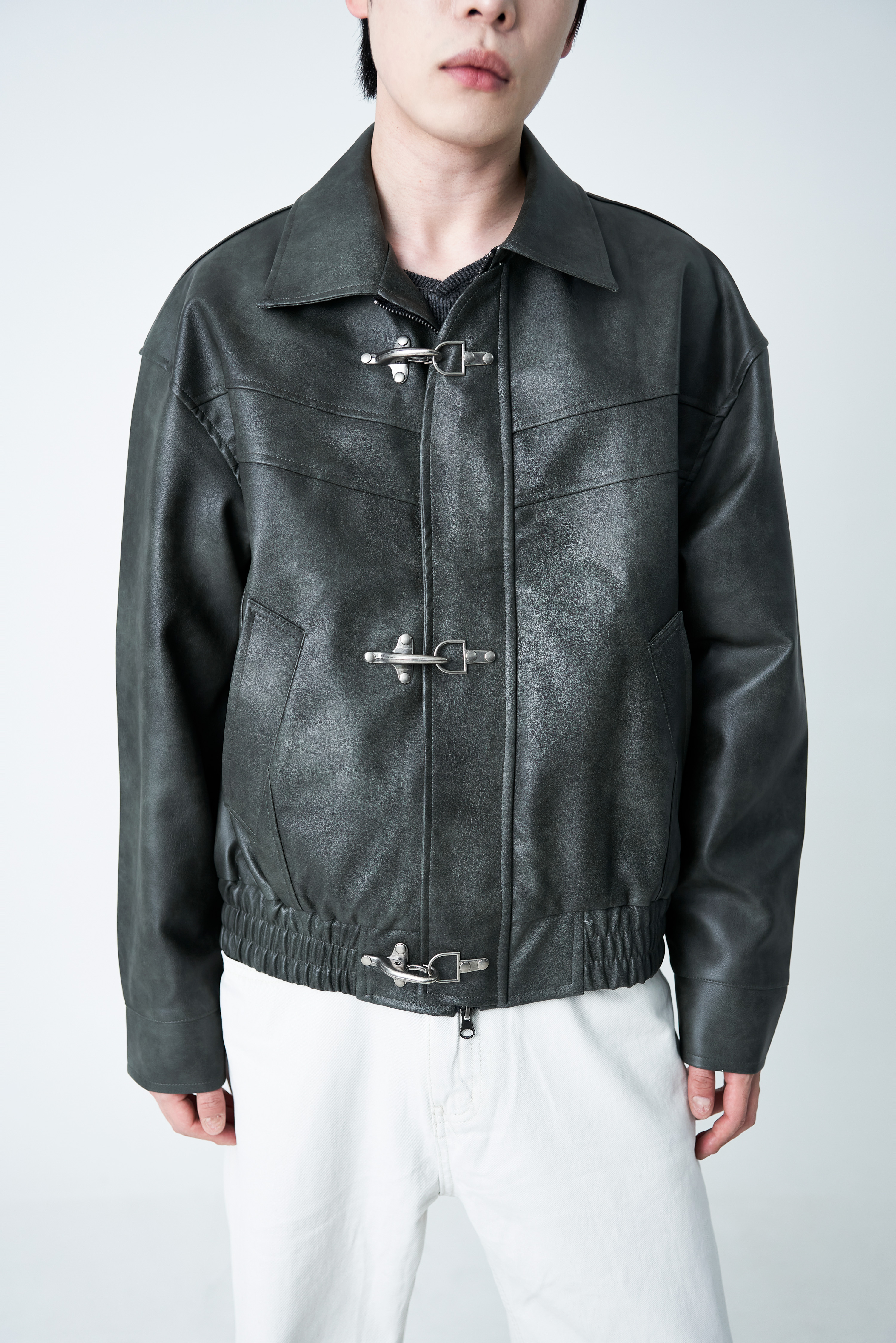 Crotchet crop leather jacket (2 color)