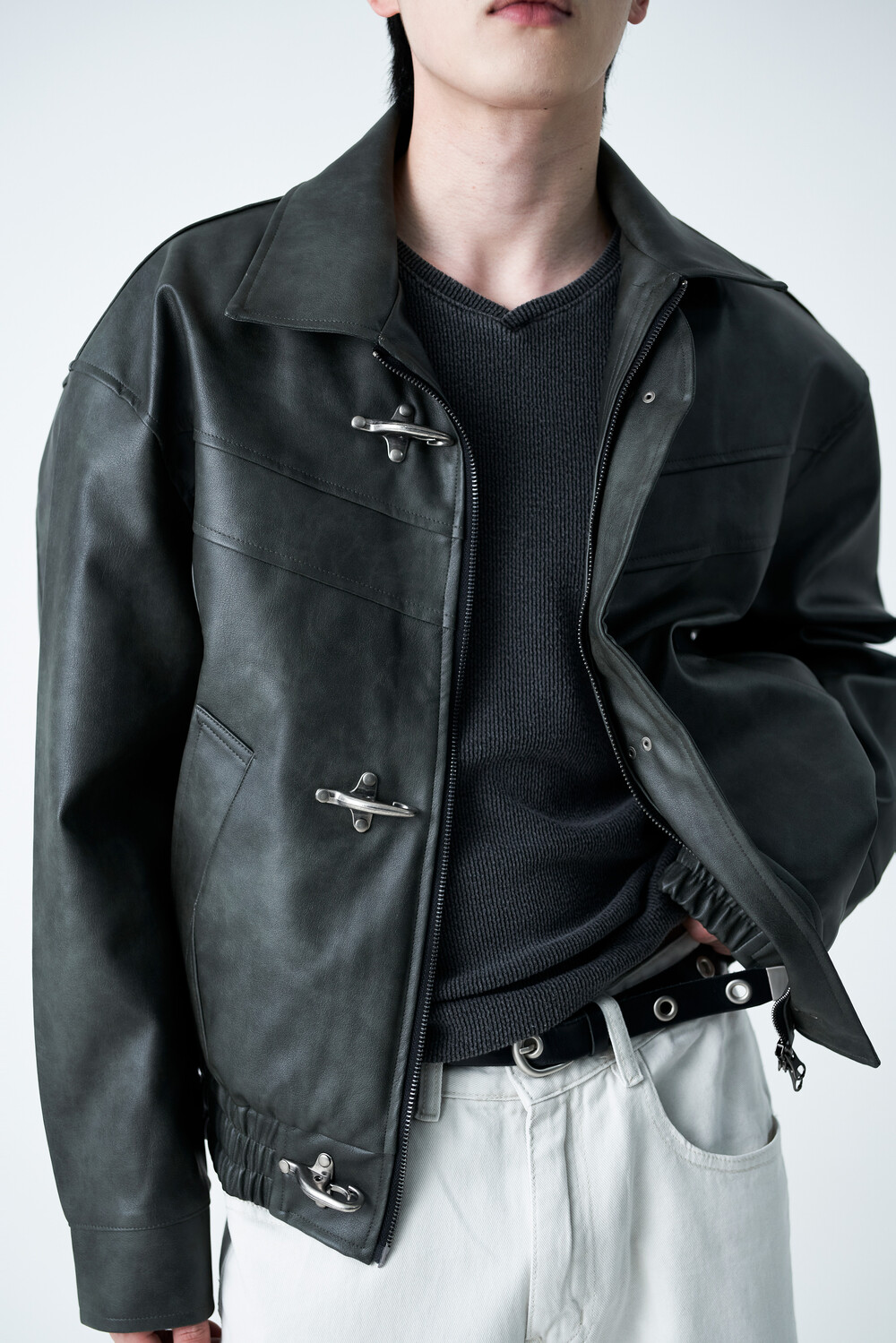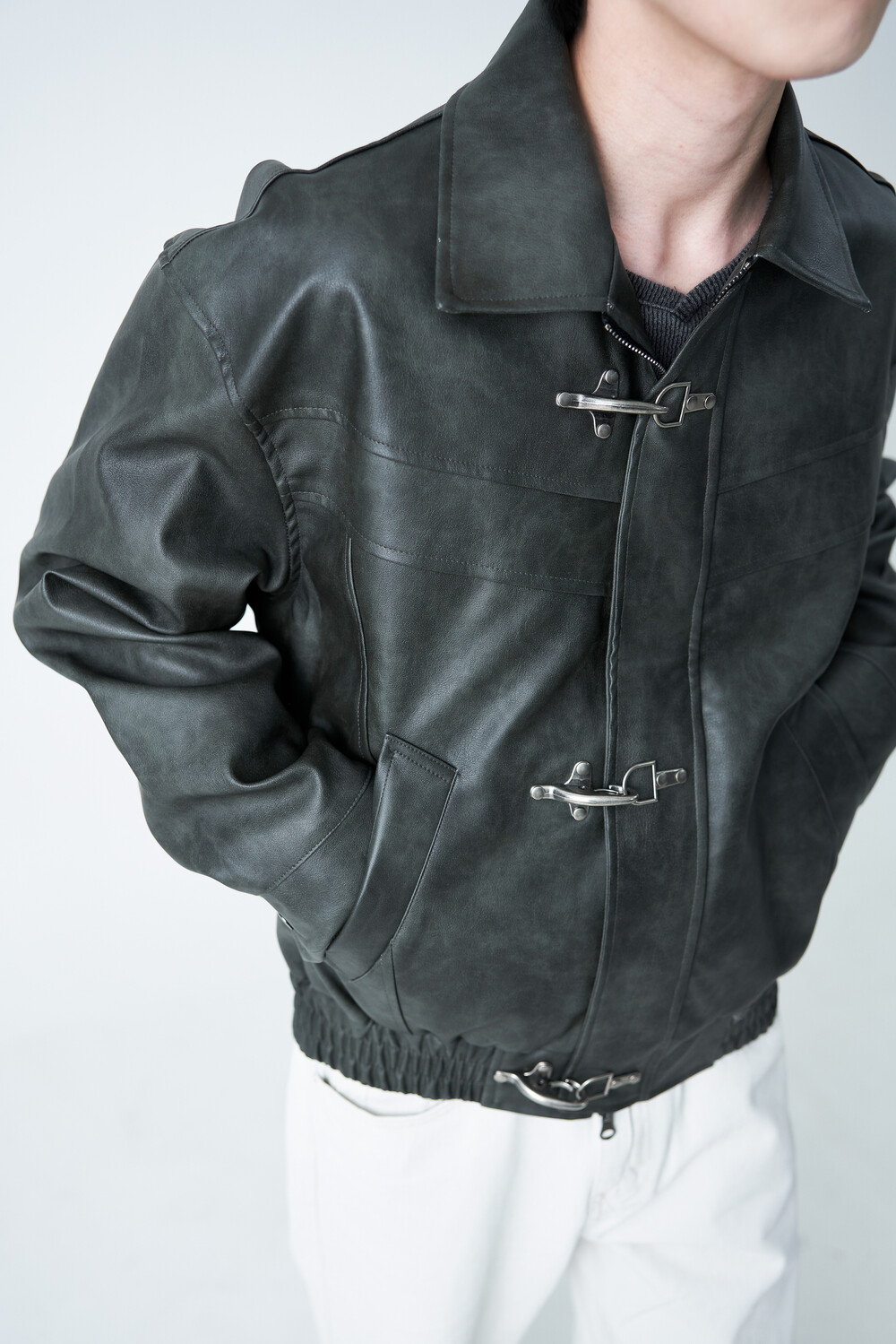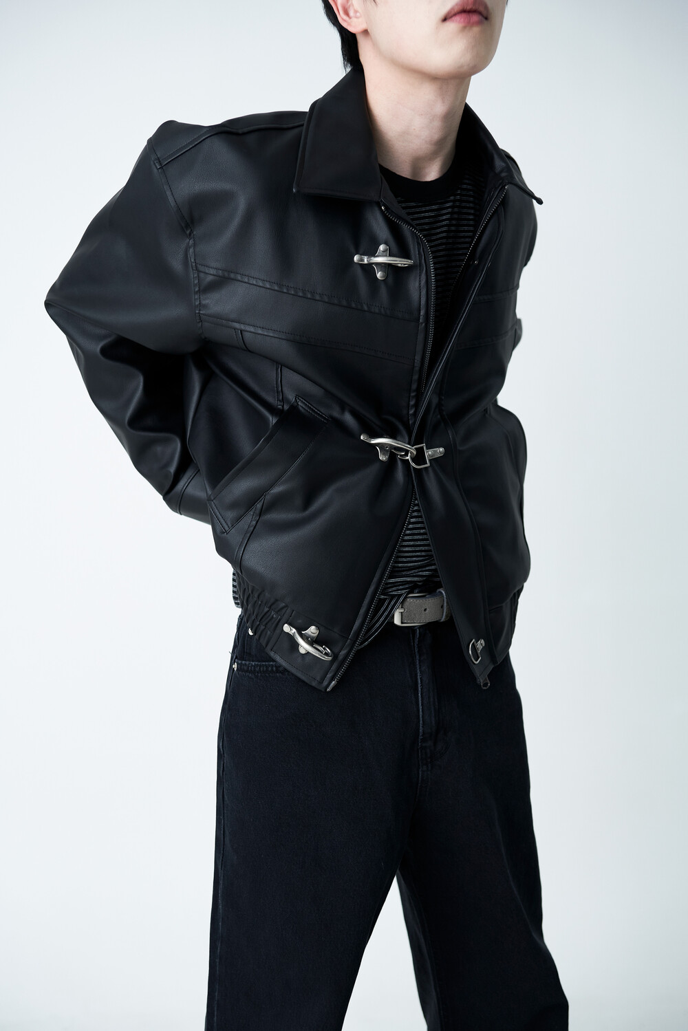 Crotchet crop leather jacket (2 color)