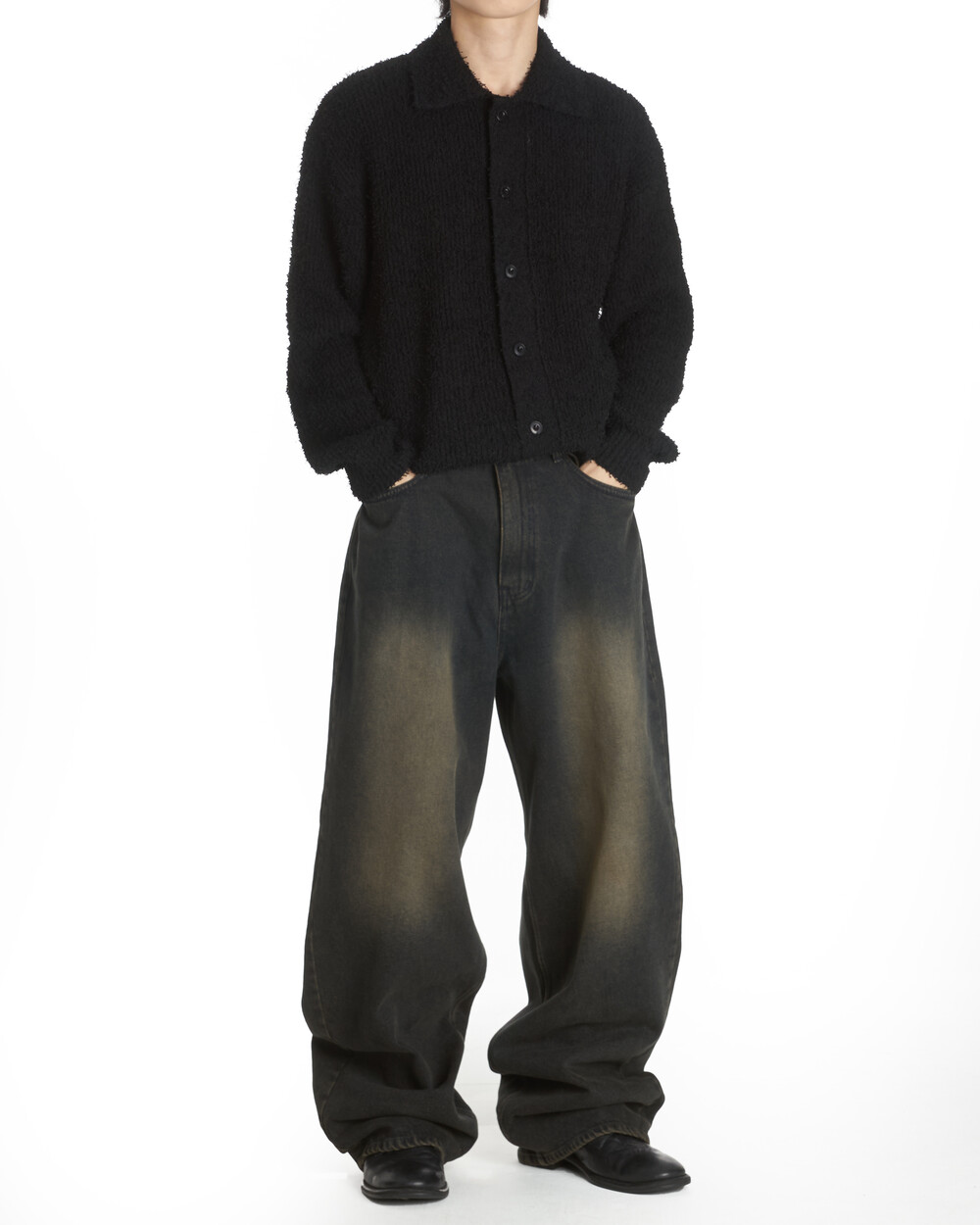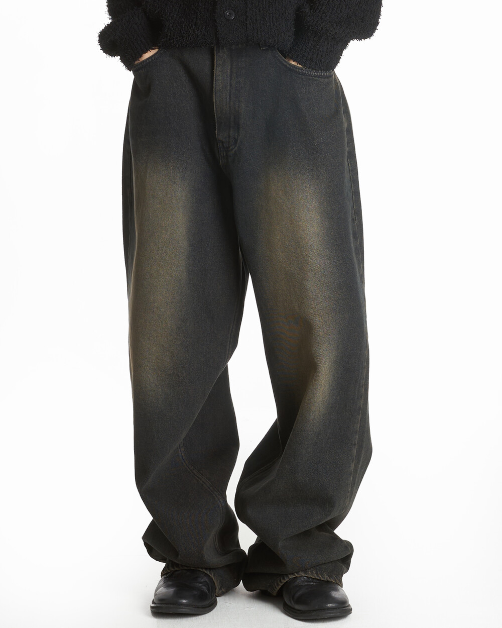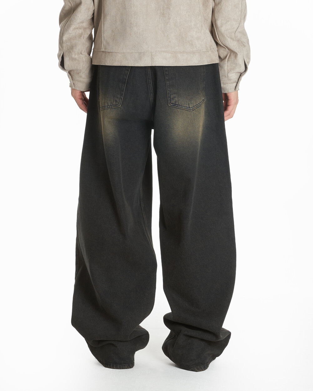 브라운 브러쉬 톤의 워시드 블랙 데님 팬츠 제품으로 은은한 블루블랙 오묘한 컬러감이 매력적인 와이드 데님 팬츠입니다. 롱루즈 와이드 실루엣으로 제작 된 것이 특징이며 M size 기준 총장 114cm의 롱한 기장감을 가지고 있습니다. 전-후면부의 독특한 워싱 컬러감과 동시에 넓은 밑위를 통해 더욱 내츄럴와이드한 느낌 연출이 돋보입니다. 빈티지스러운 무드를 연출하면서도 깔끔하게 정돈된 느낌을 주고 싶을 때 함께 코디하시는 것을 권장해드립니다.