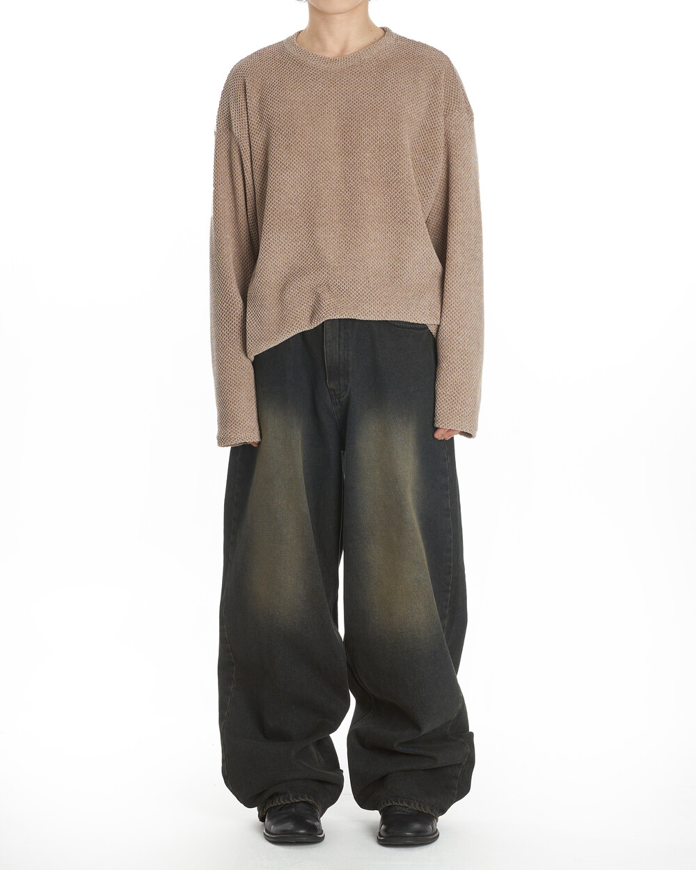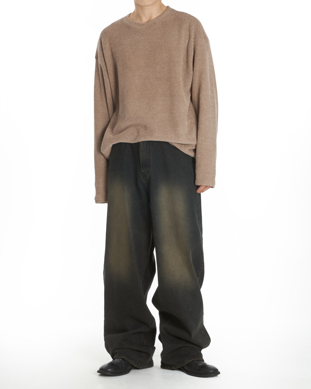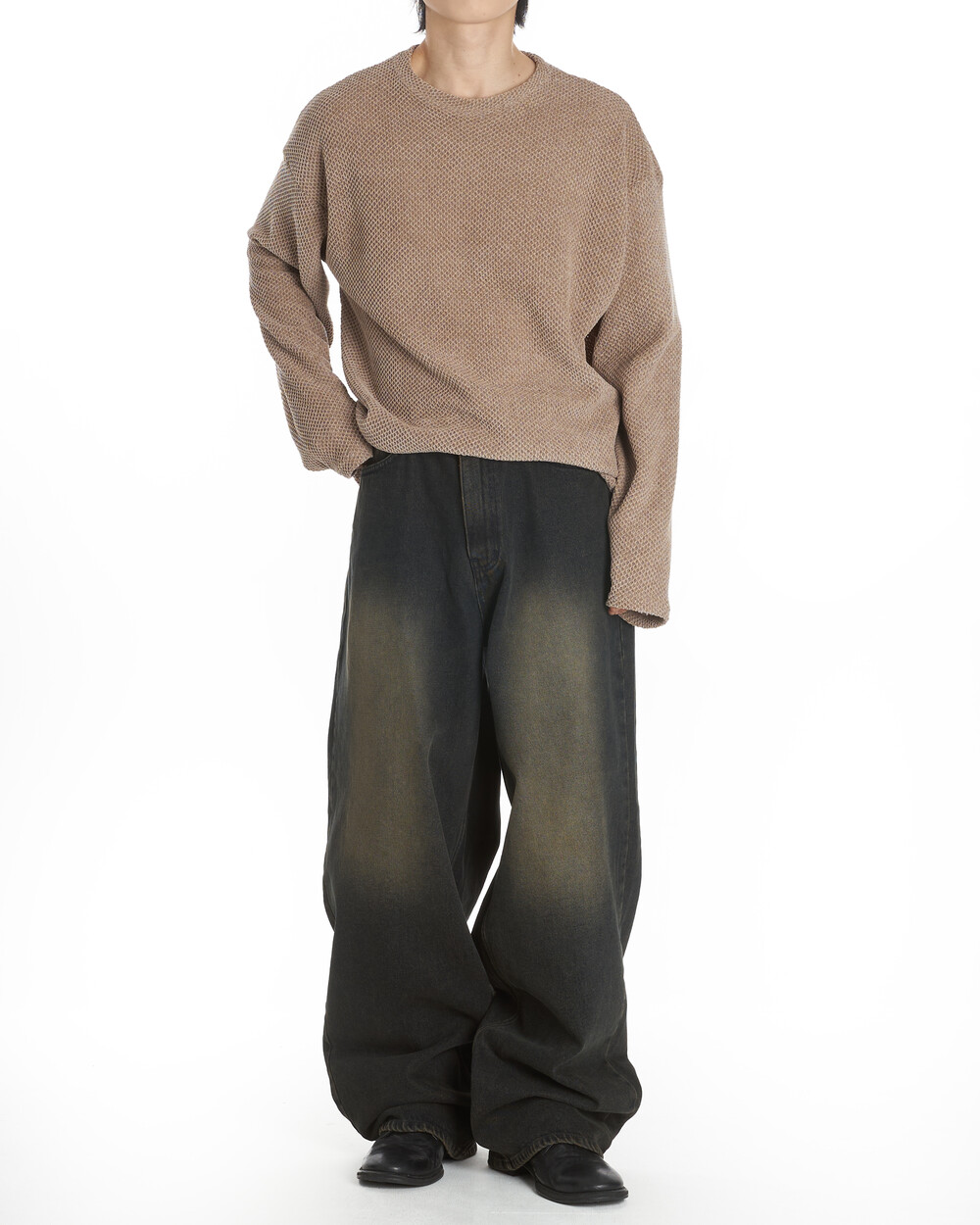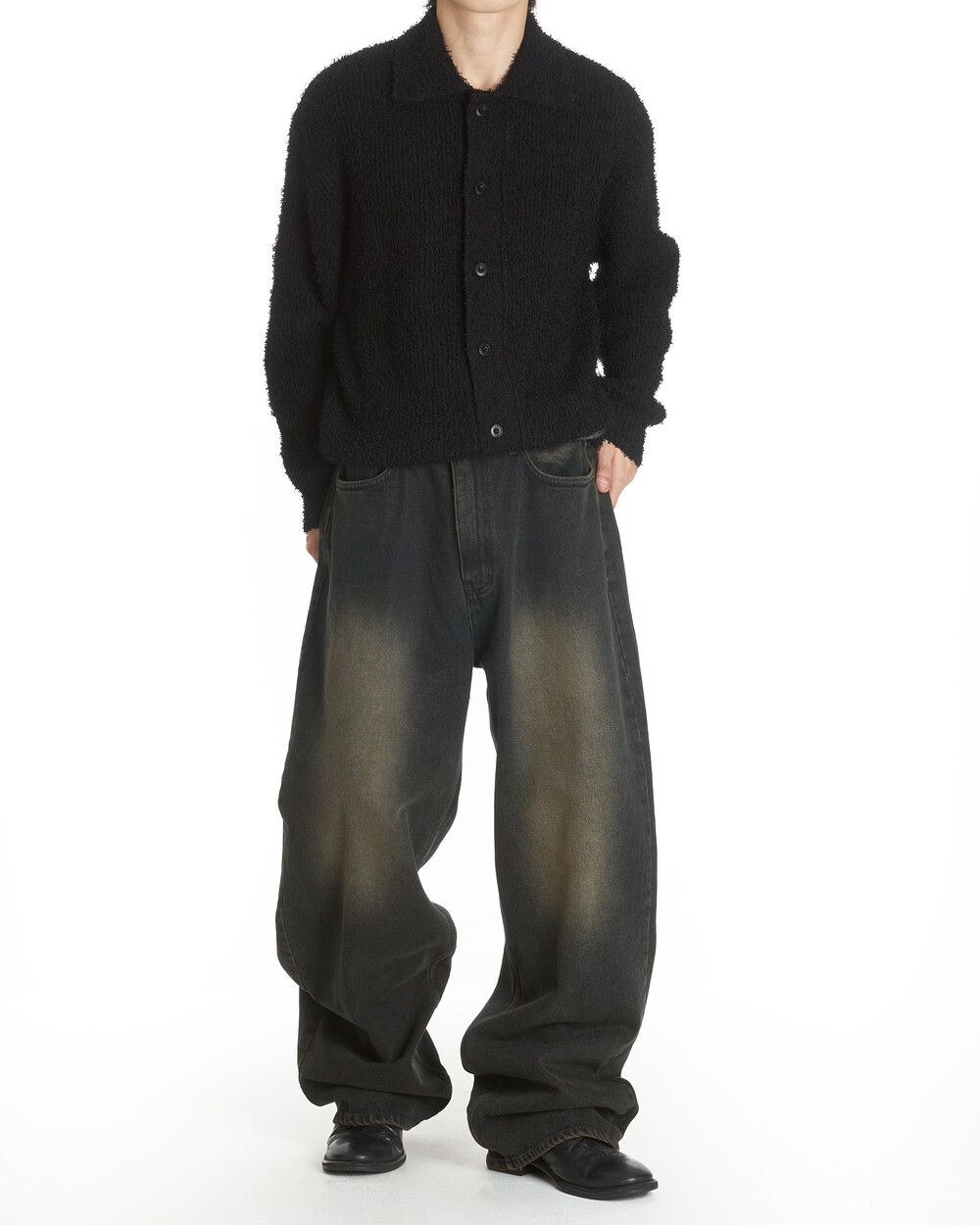 브라운 브러쉬 톤의 워시드 블랙 데님 팬츠 제품으로 은은한 블루블랙 오묘한 컬러감이 매력적인 와이드 데님 팬츠입니다. 롱루즈 와이드 실루엣으로 제작 된 것이 특징이며 M size 기준 총장 114cm의 롱한 기장감을 가지고 있습니다. 전-후면부의 독특한 워싱 컬러감과 동시에 넓은 밑위를 통해 더욱 내츄럴와이드한 느낌 연출이 돋보입니다. 빈티지스러운 무드를 연출하면서도 깔끔하게 정돈된 느낌을 주고 싶을 때 함께 코디하시는 것을 권장해드립니다.
