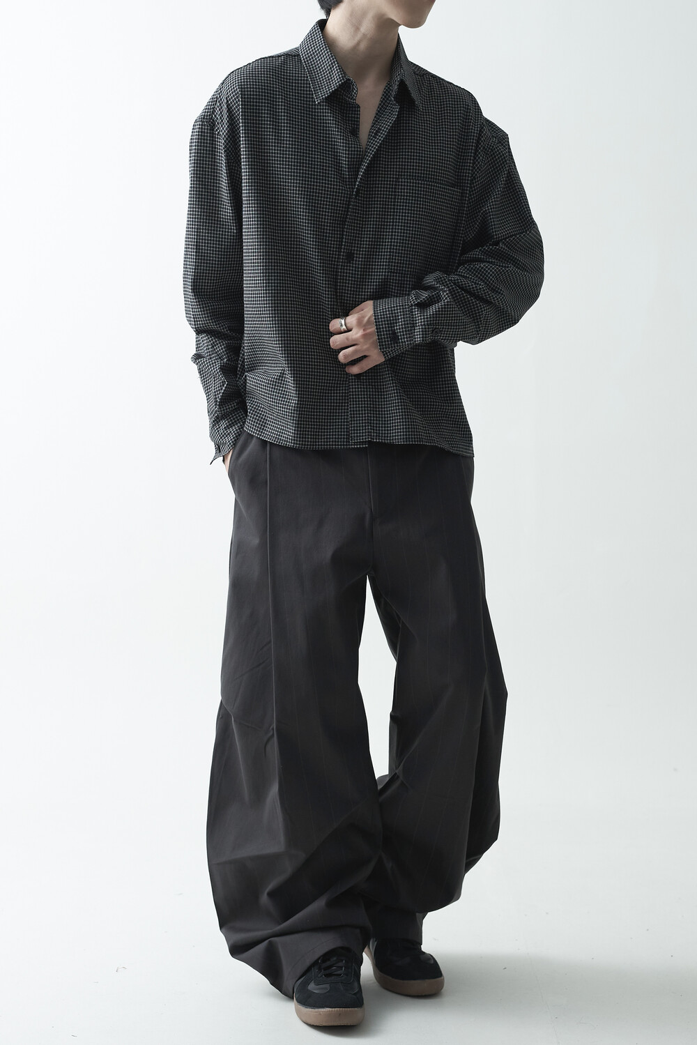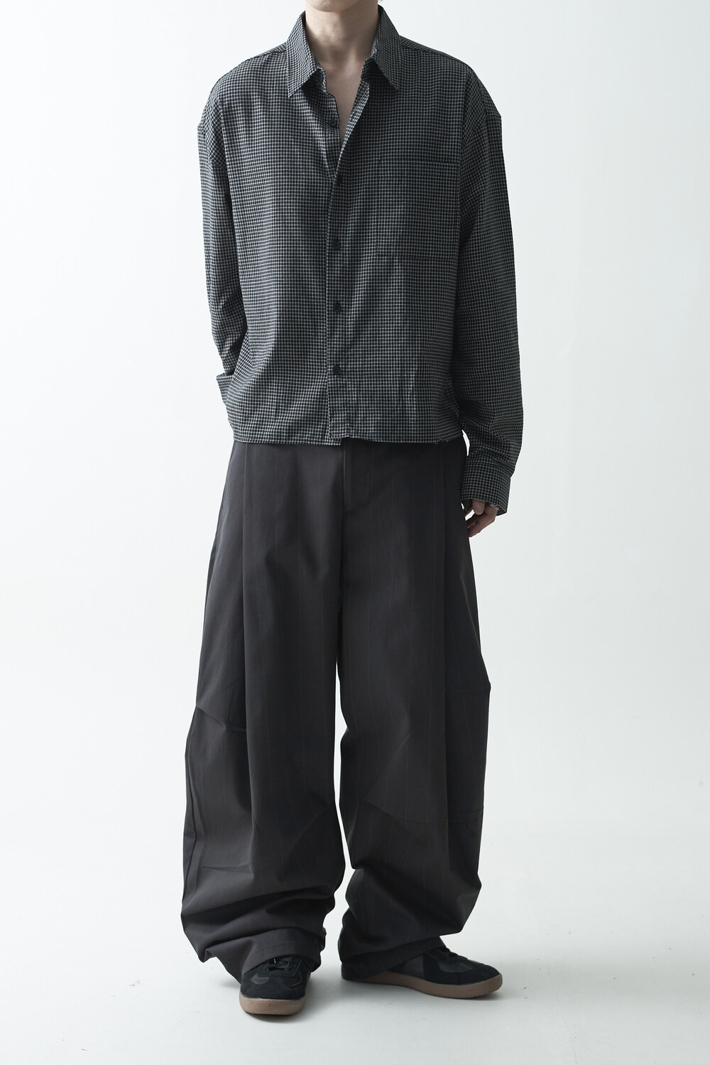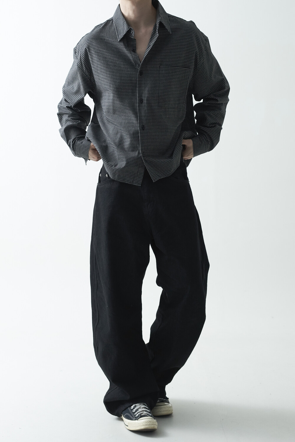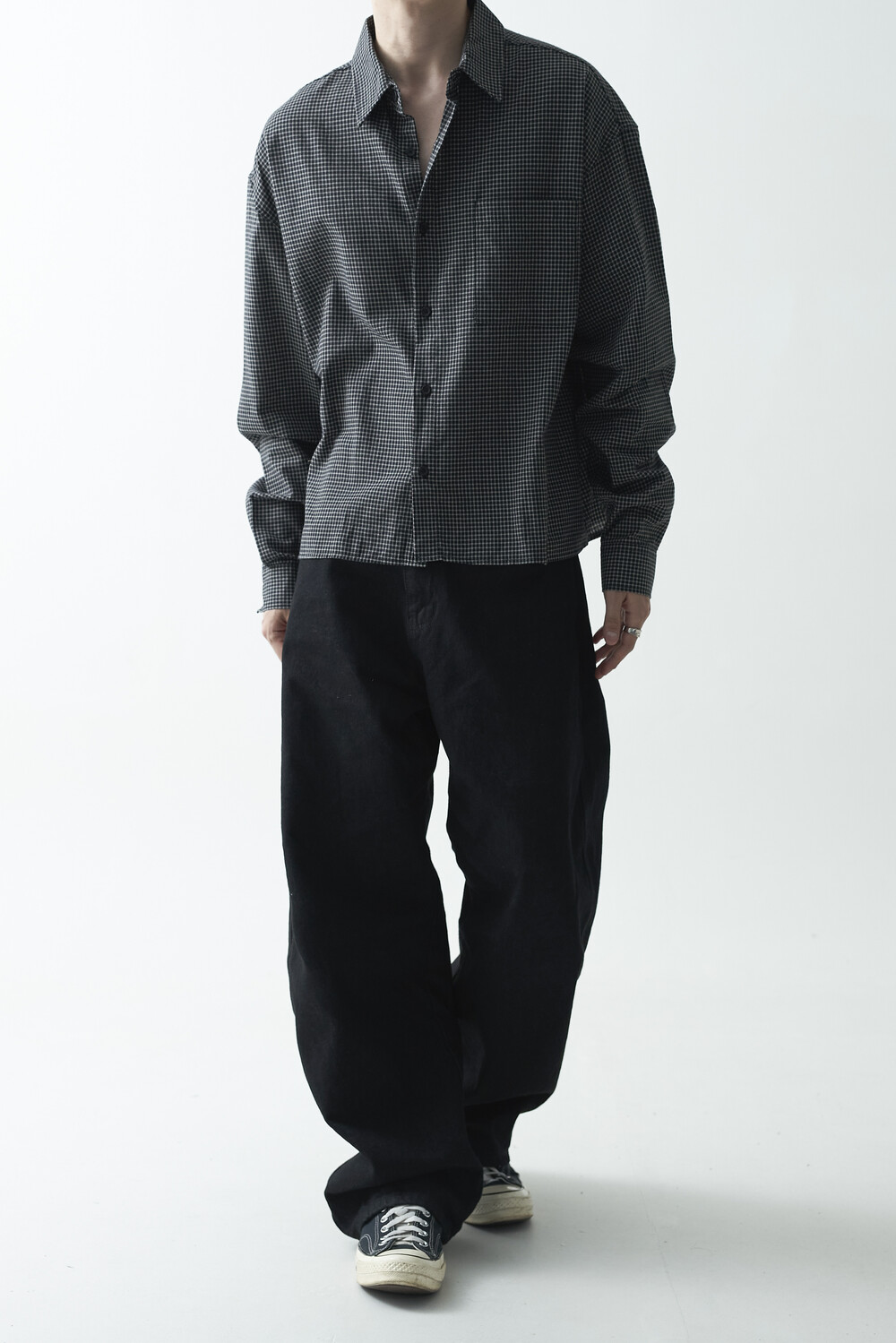 세밀한 체크 패턴으로 미니멀한 무드 연출에 효과적인 코튼 크롭 셔츠 제품입니다. 전면부 스퀘어 원포켓 디테일이 적용되어 더욱 깔끔한 아웃핏을 연출합니다.