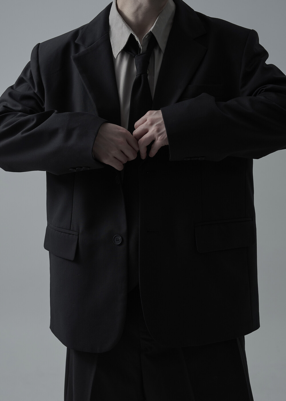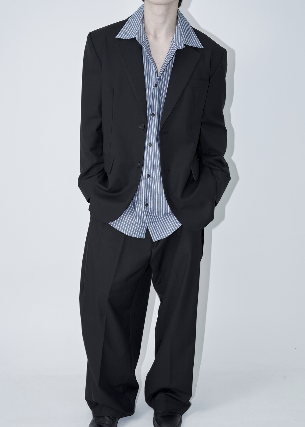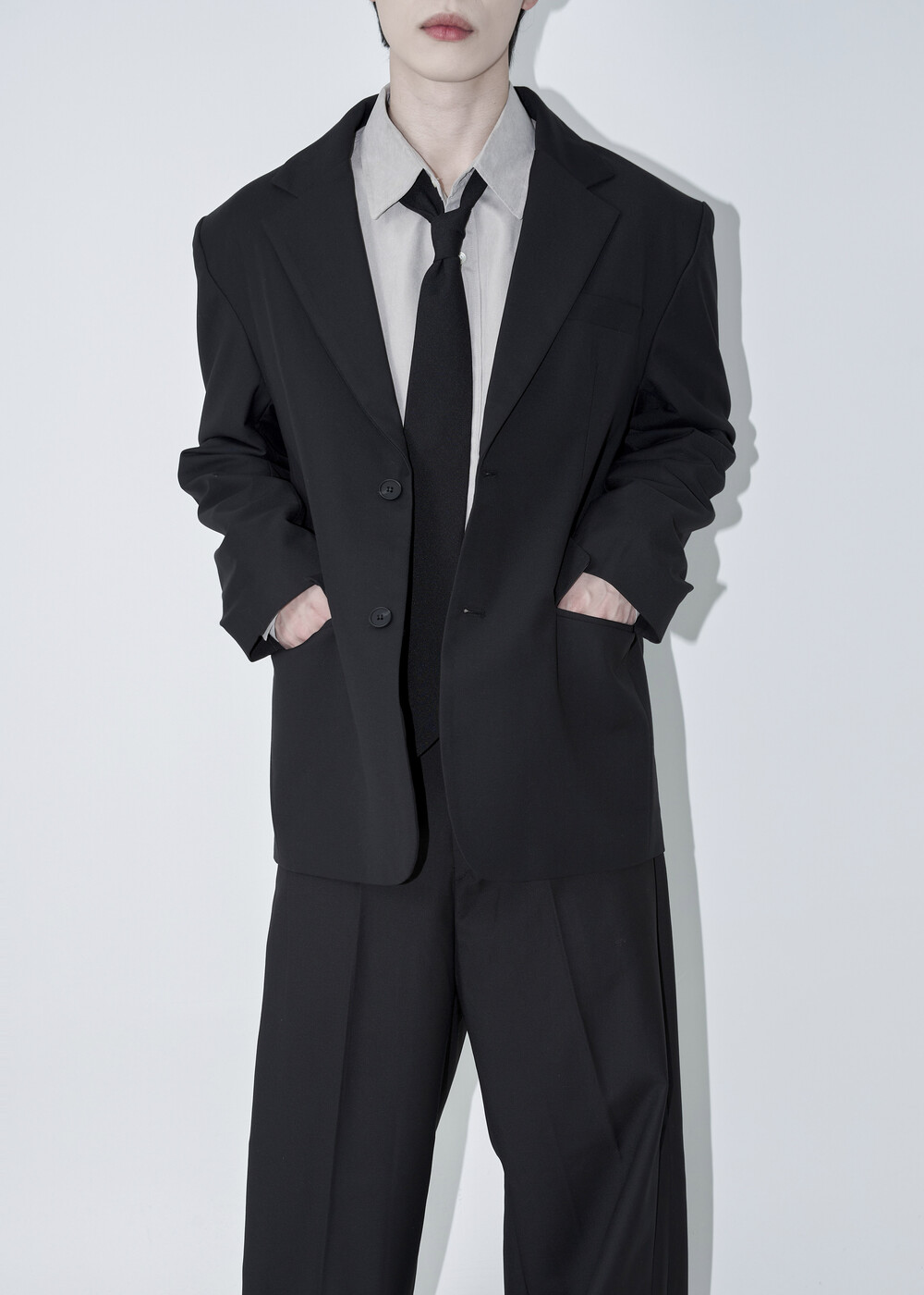 - 전체적으로 루즈한 핏감을 나타내는 현대적인 블레이져 자켓 제품