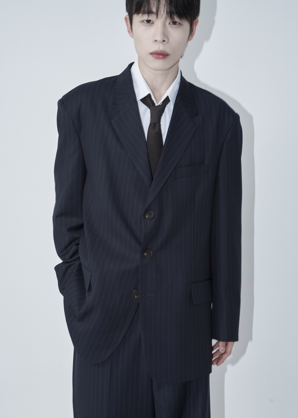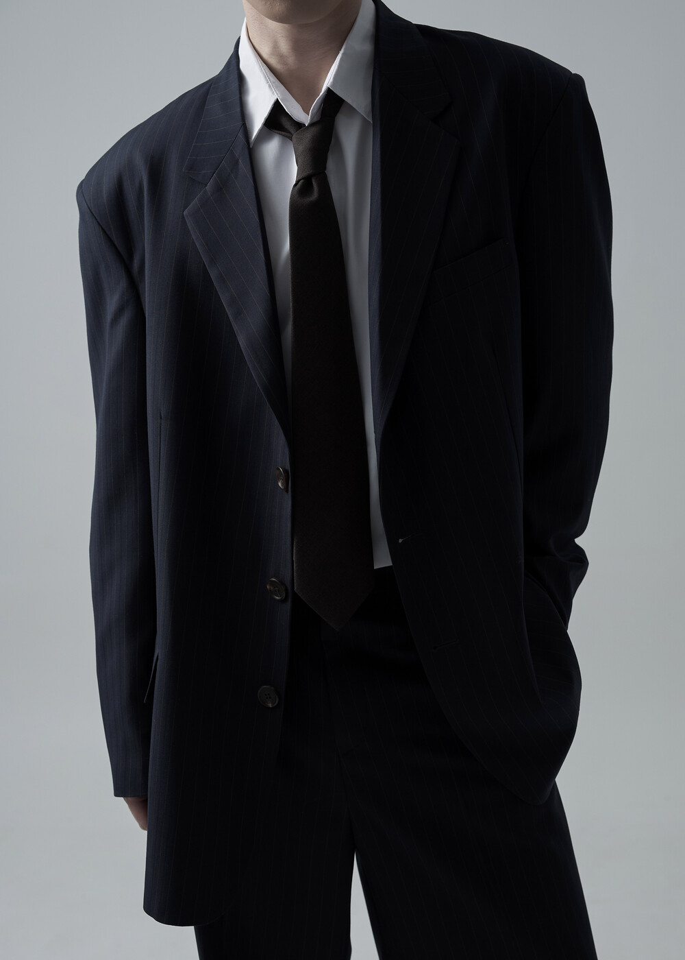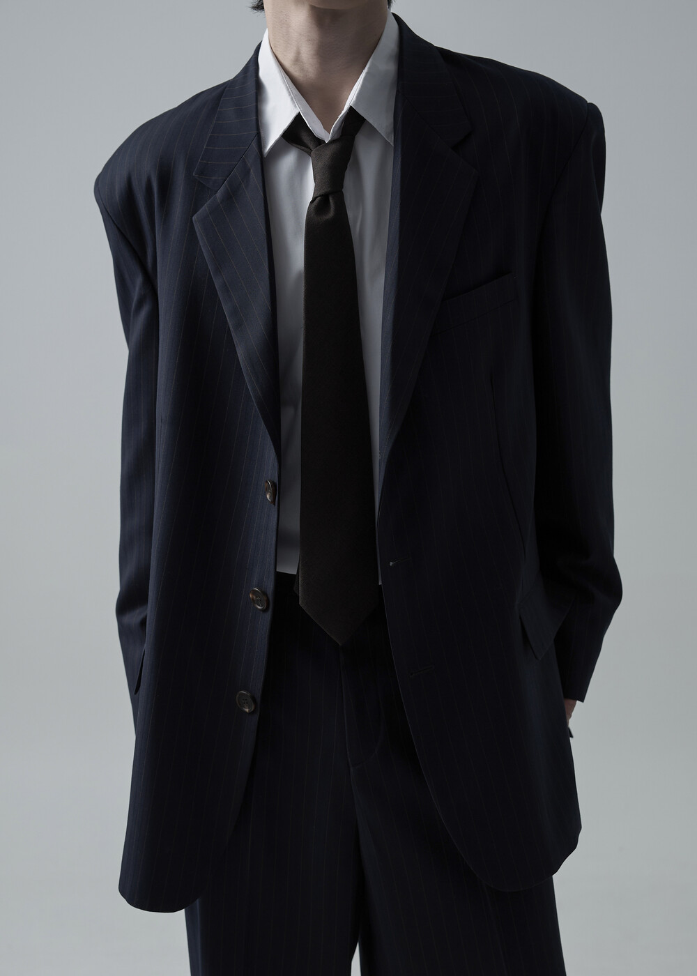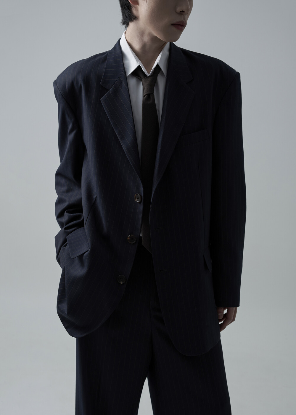 전체적으로 루즈한 실루엣의 싱글 3버튼 셋업 자켓