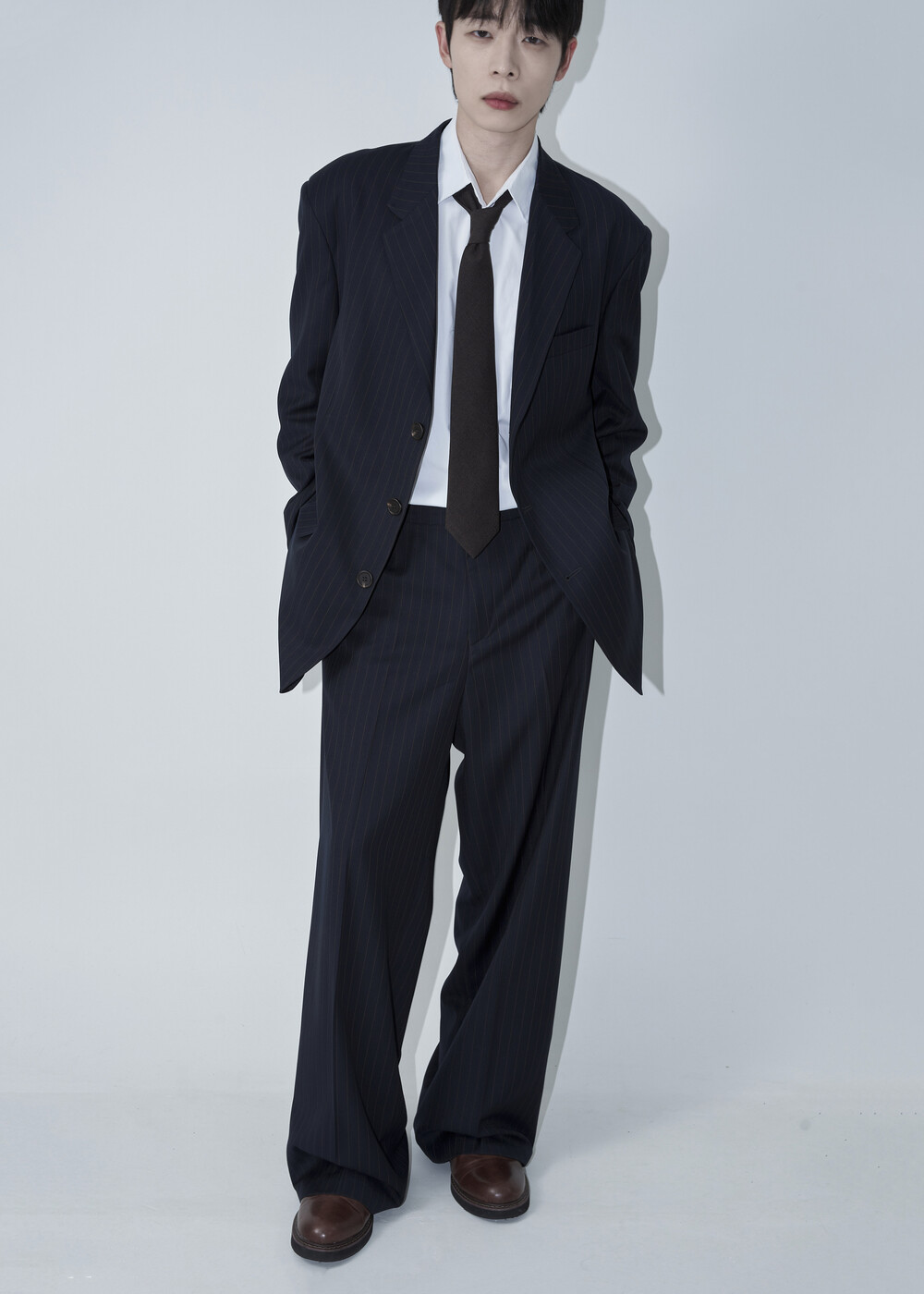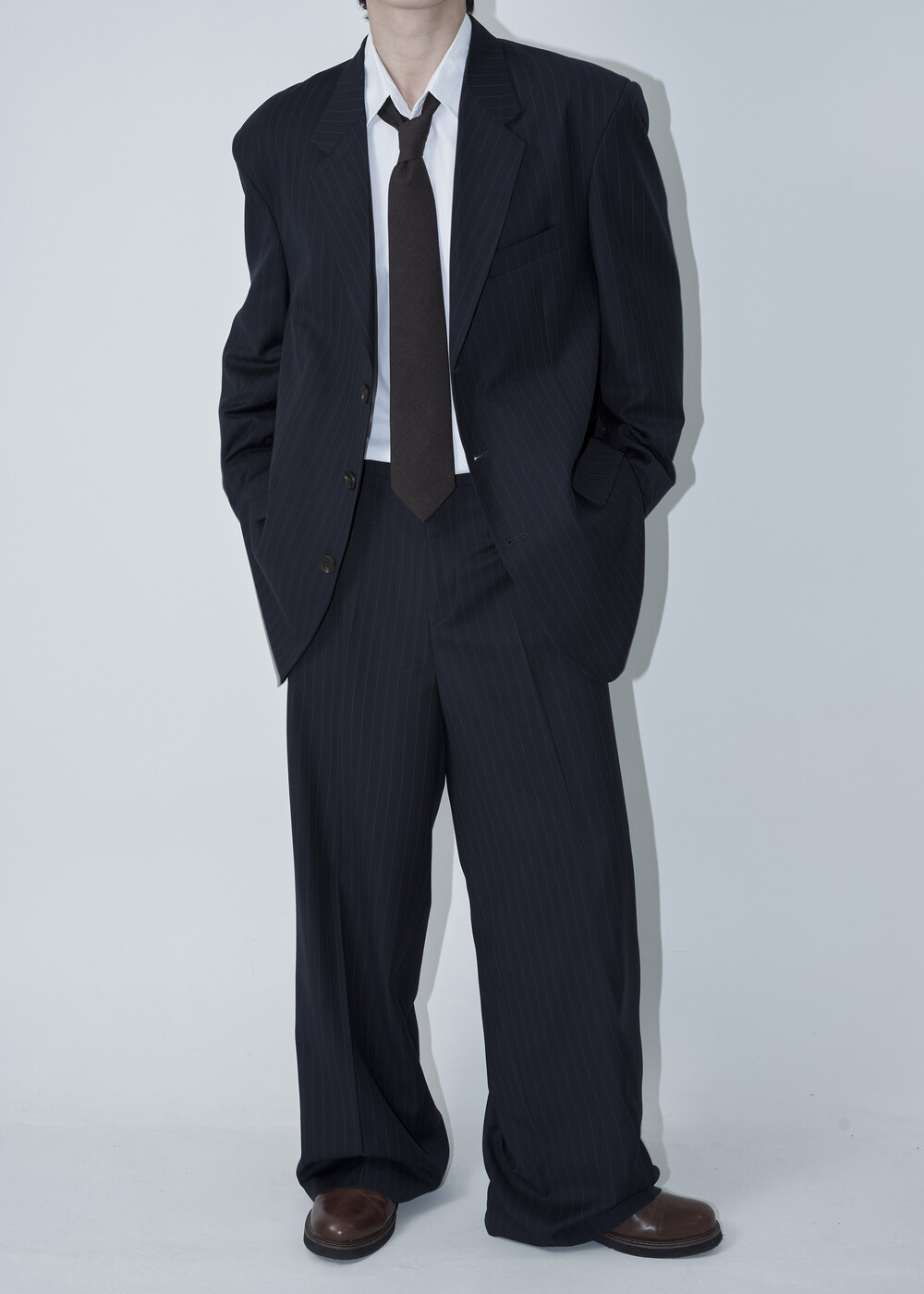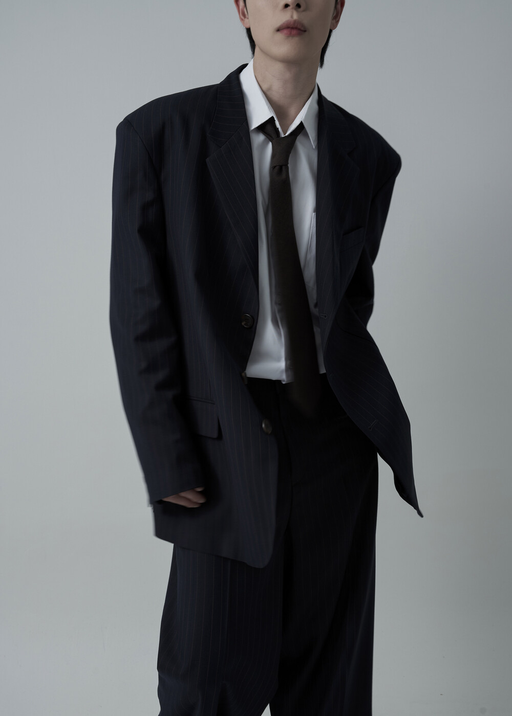 전체적으로 루즈한 실루엣의 싱글 3버튼 셋업 자켓