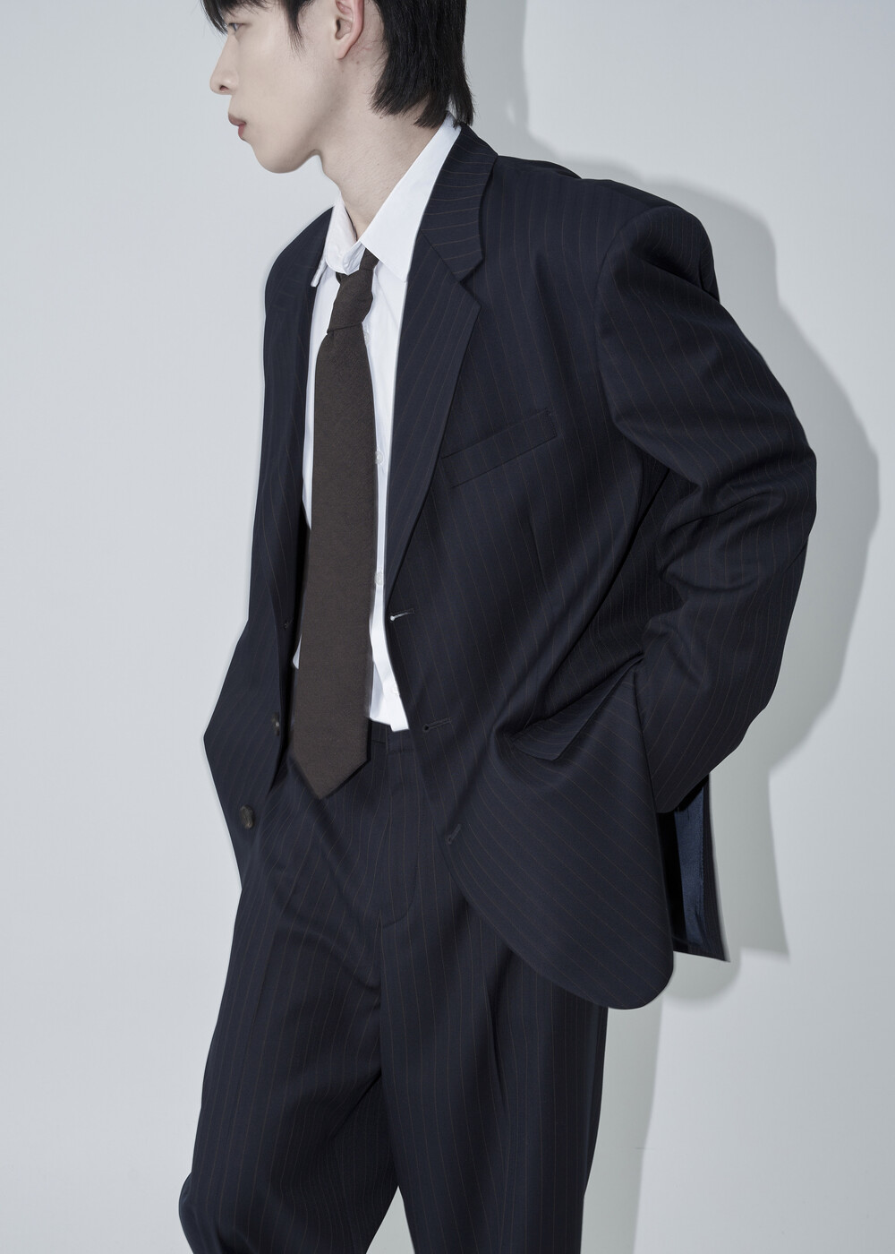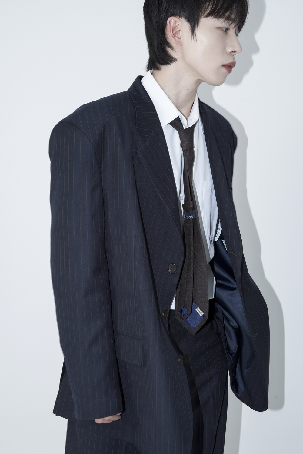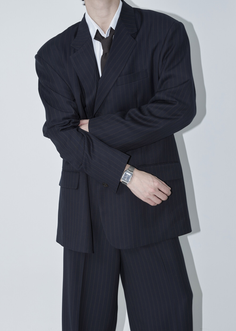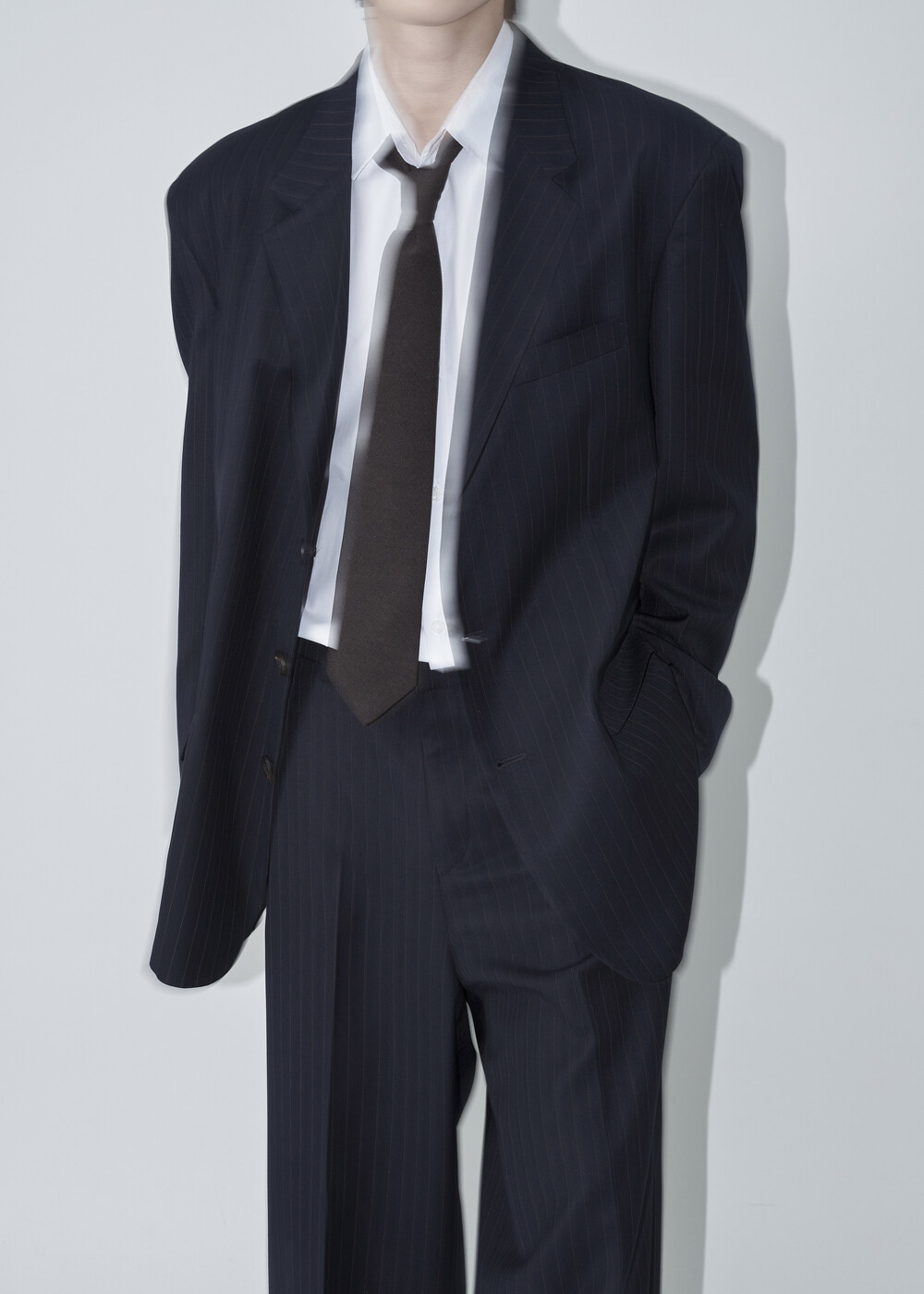 전체적으로 루즈한 실루엣의 싱글 3버튼 셋업 자켓