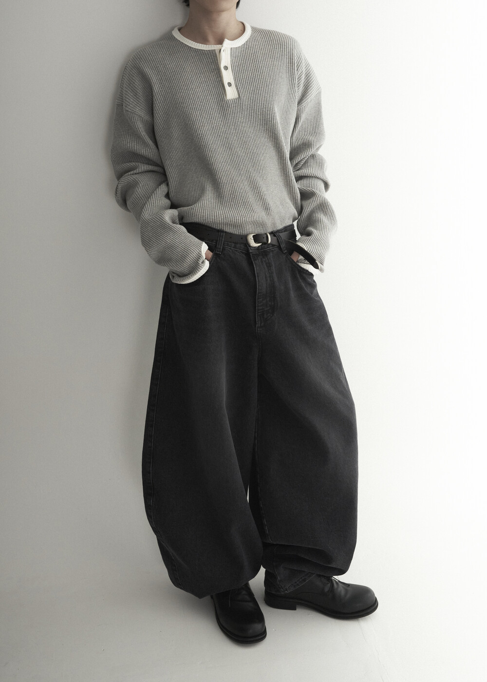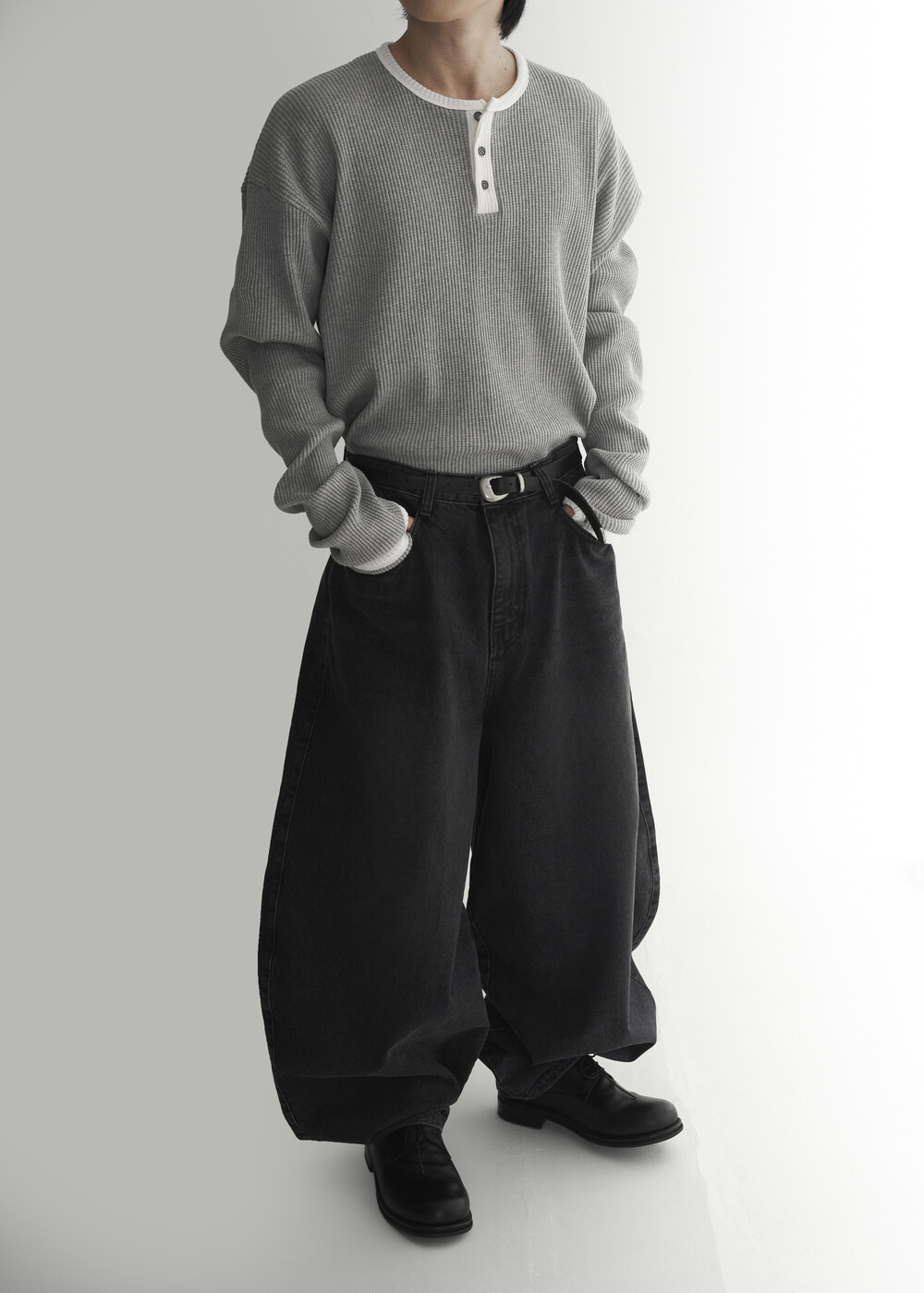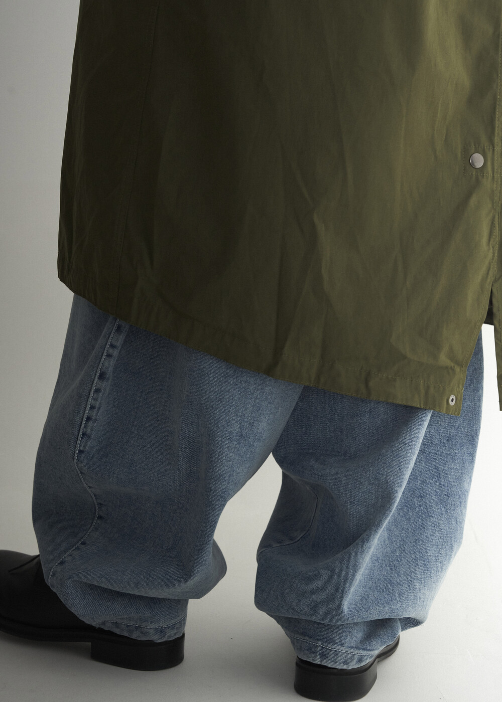 - 롱한 기장감과 여유로운 오버와이드 핏을 연출 해주면서도 좁은 밑단을 통해 밑단이 바닥에 쓸리는 현상 감소
