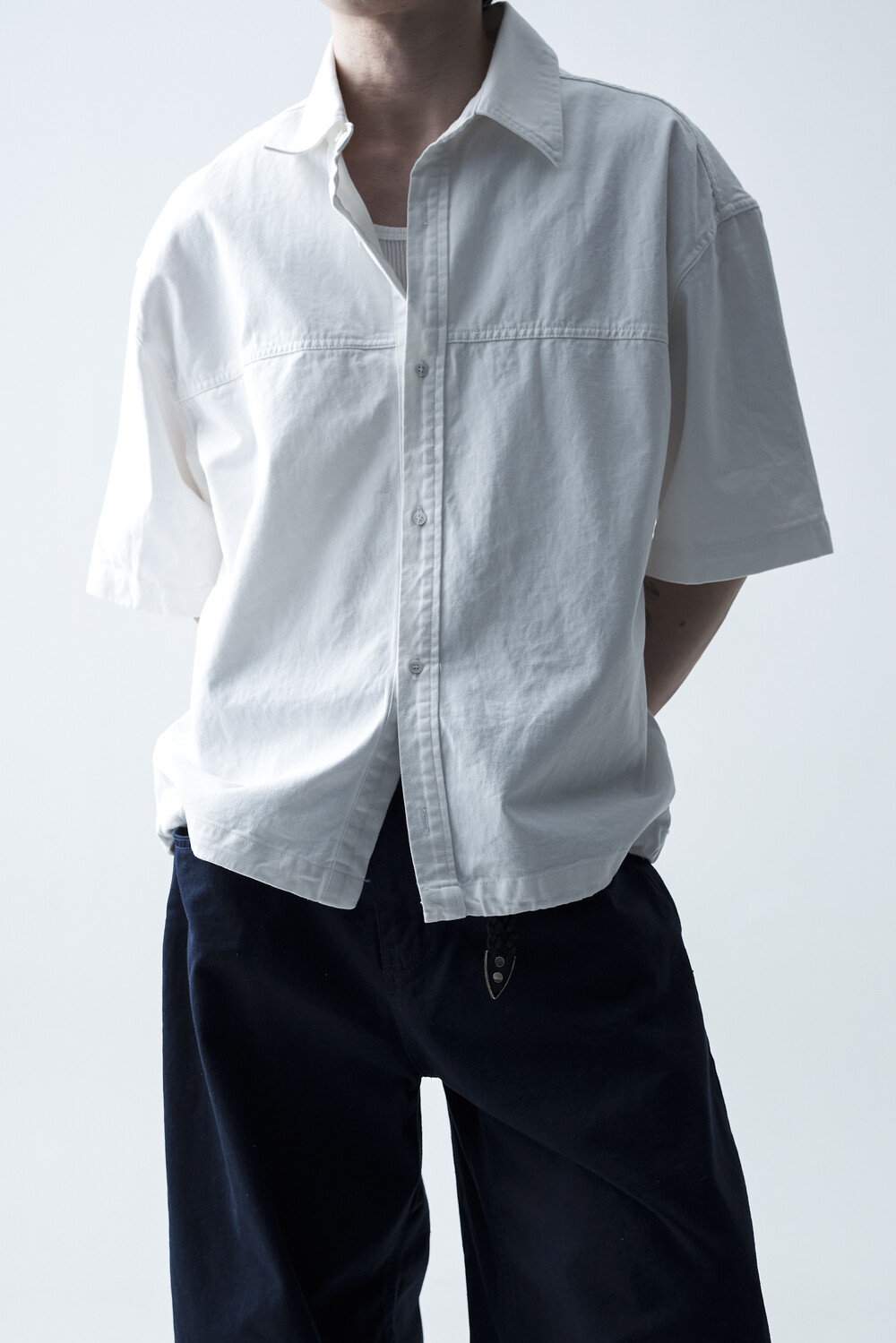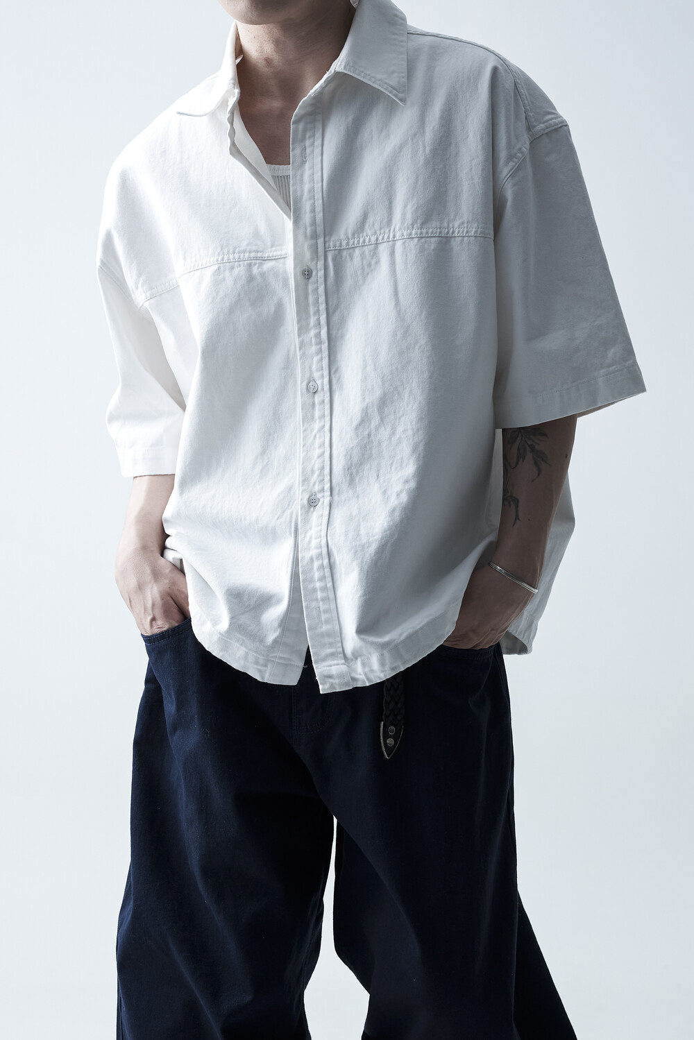 트렌디한 66cm의 크롭한 기장감으로 구성된 카치온 소재감의 세미 크롭 코튼 셔츠 제품입니다. 루즈 오버핏의 숄더라인과 크롭한 기장감의 안정적인 핏감 연출이 매력적이며 밑단의 스트링을 통해 다양한 실루엣을 연출하실 수 있습니다.