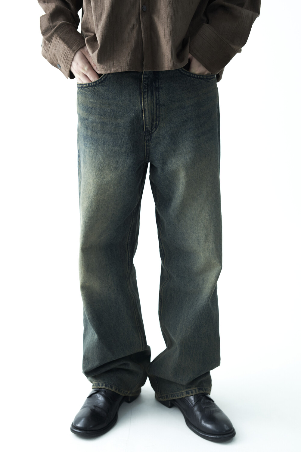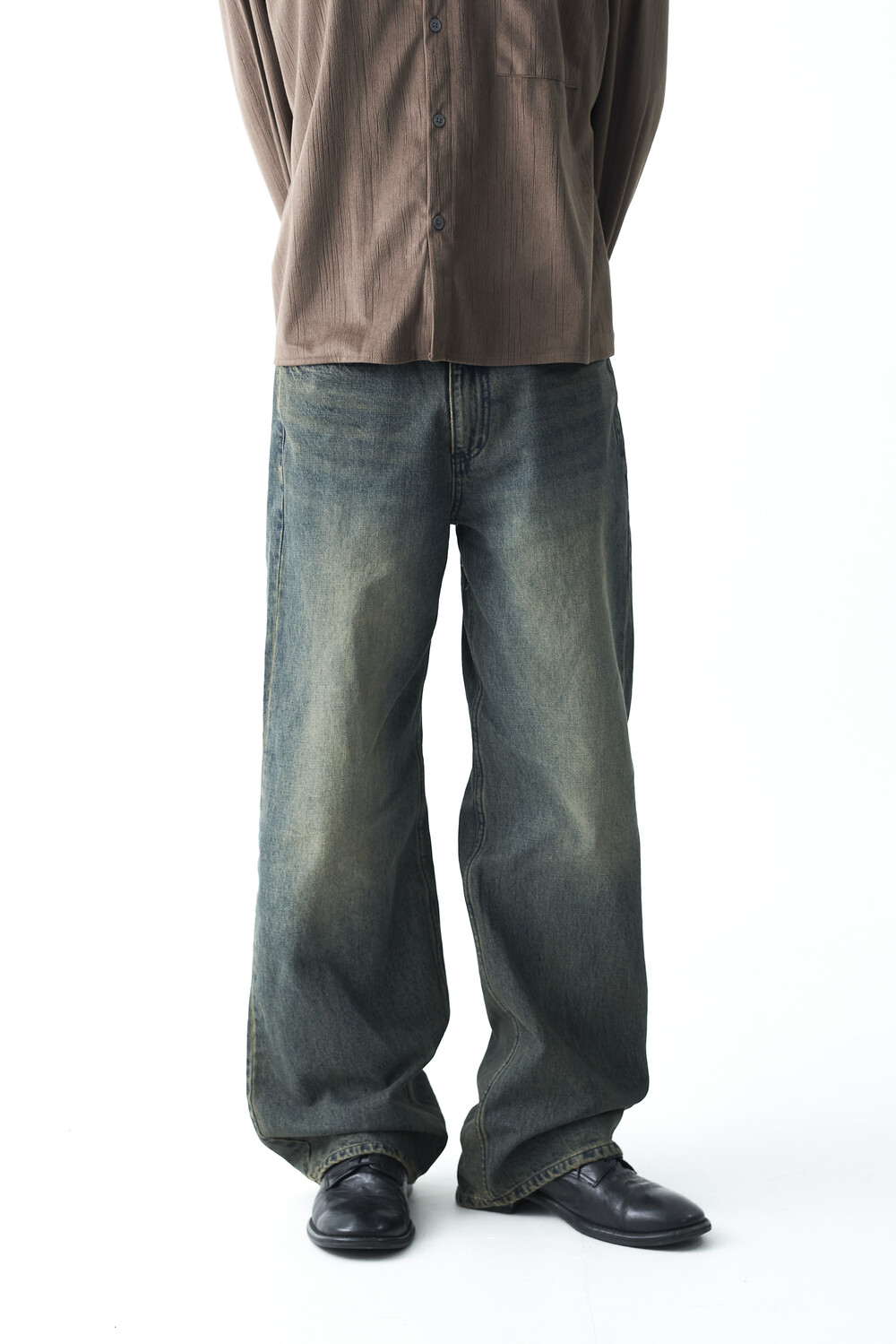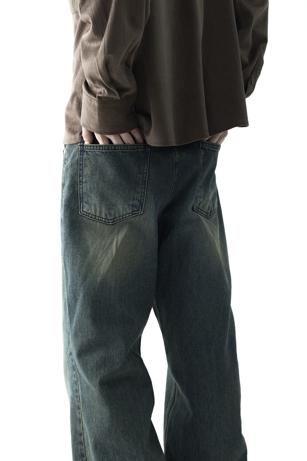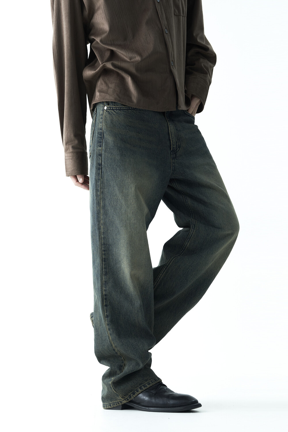 - 진청컬러 베이스에 오일리한 빈티지워싱이 적용되어 유니크한 컬러감을 표현한 세미와이드 데님 팬츠 제품입니다. 과하지 않은 와이드 핏으로 누구나 부담없이 착용하실 수 있습니다.