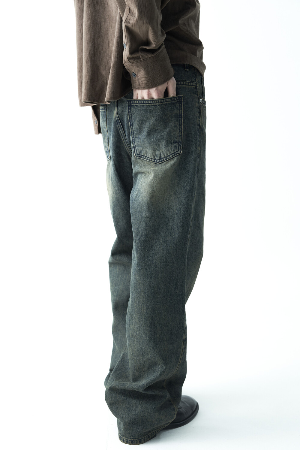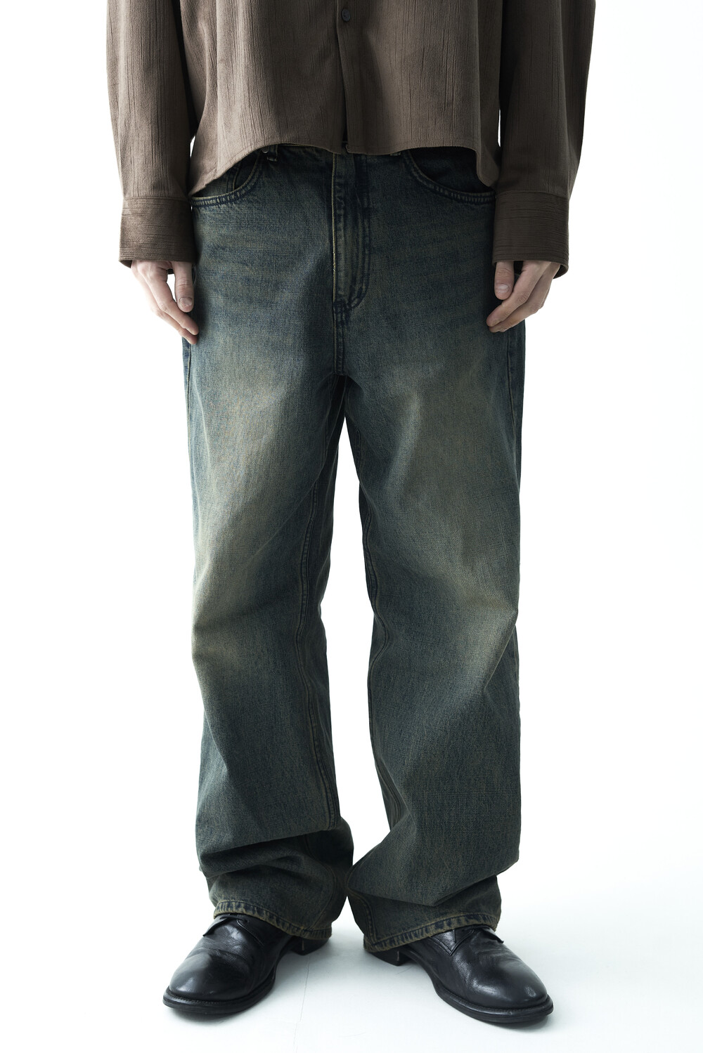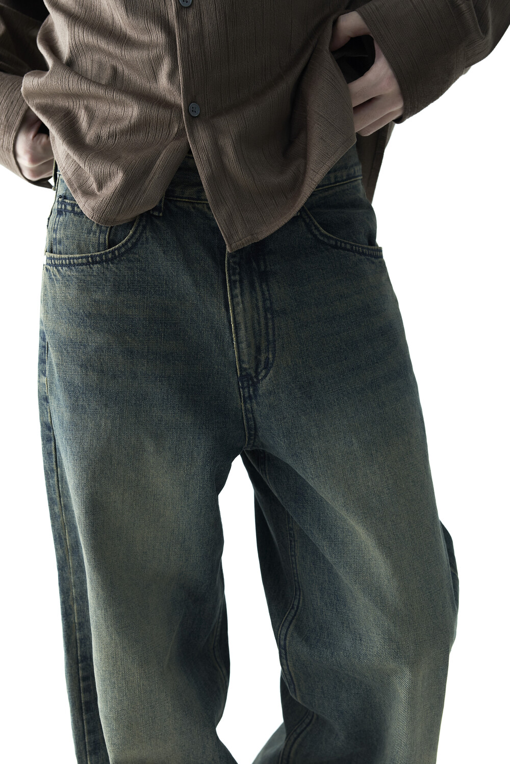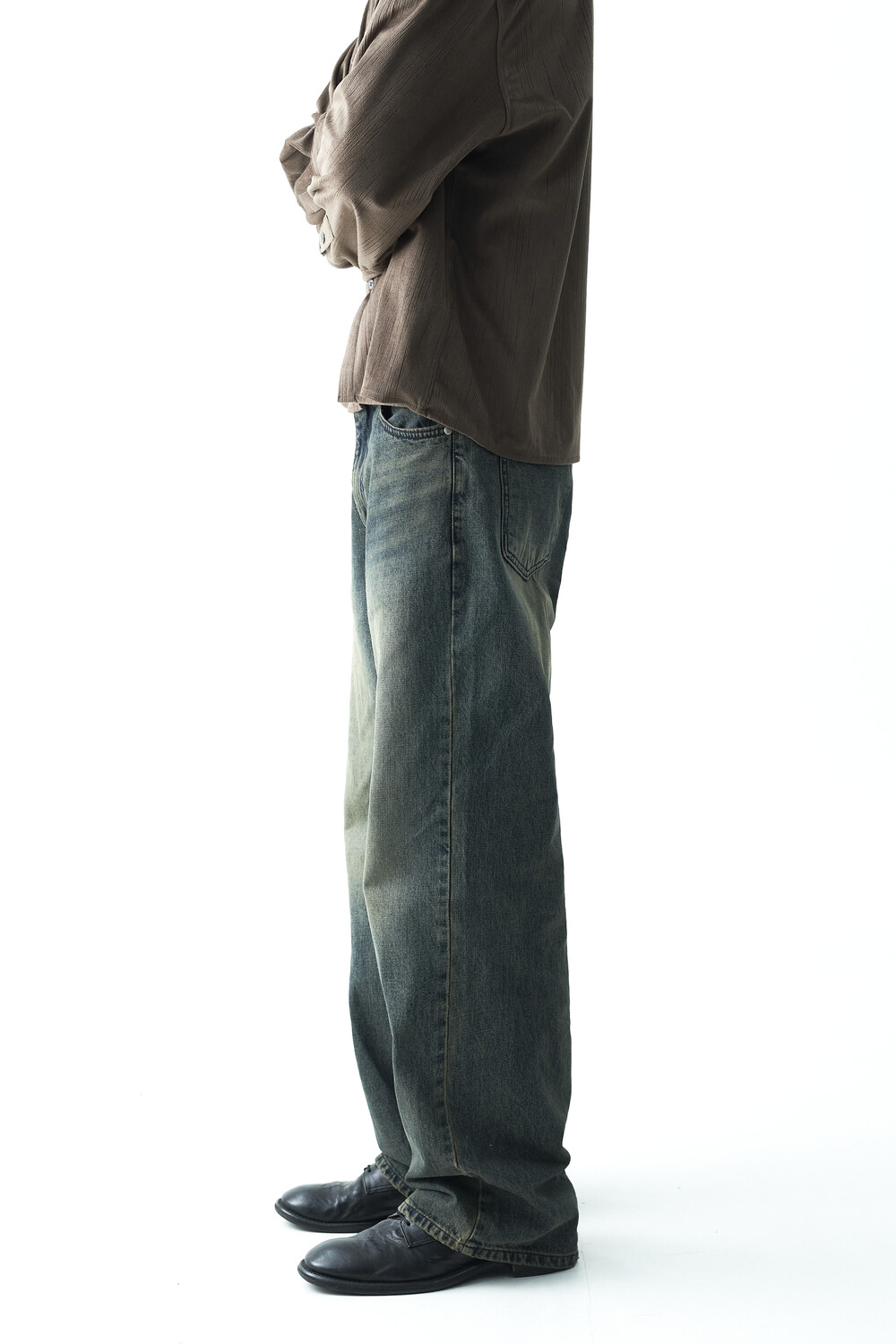- 진청컬러 베이스에 오일리한 빈티지워싱이 적용되어 유니크한 컬러감을 표현한 세미와이드 데님 팬츠 제품입니다. 과하지 않은 와이드 핏으로 누구나 부담없이 착용하실 수 있습니다.