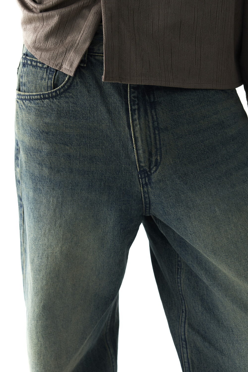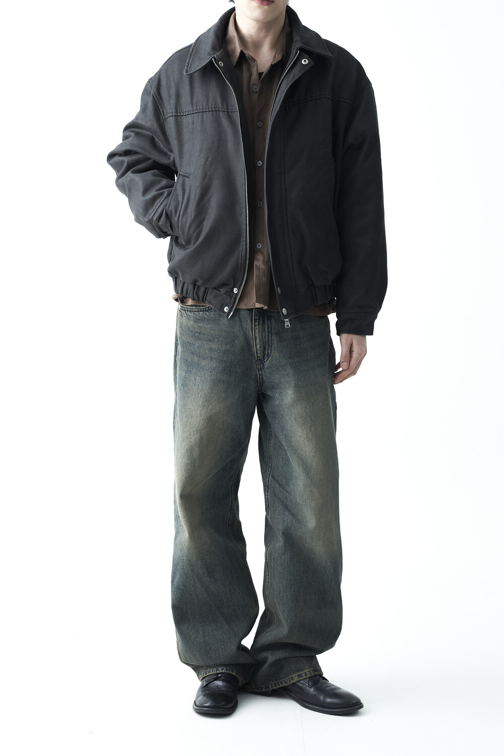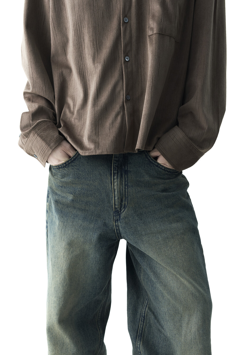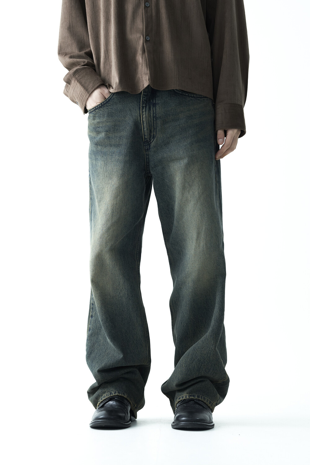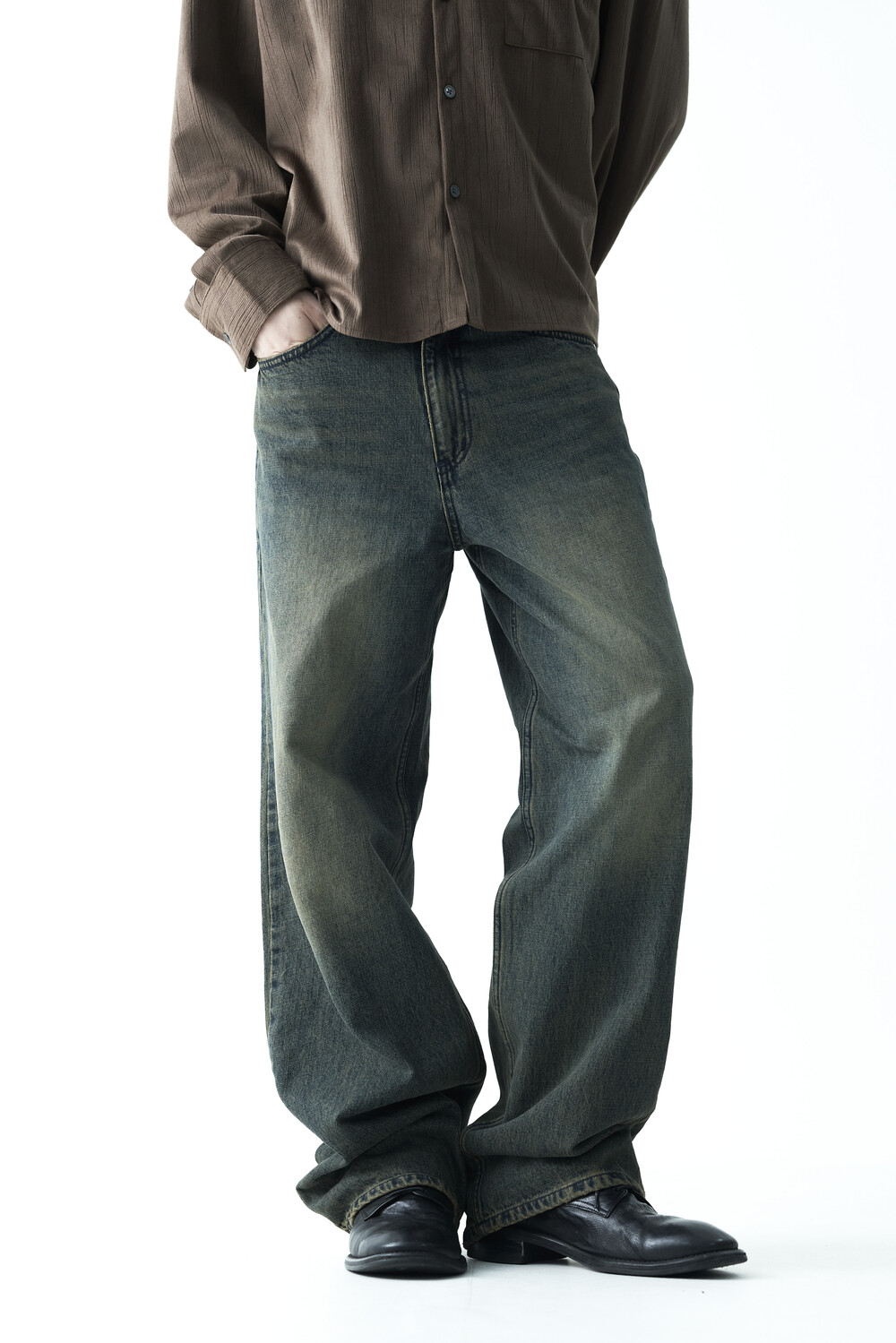 - 진청컬러 베이스에 오일리한 빈티지워싱이 적용되어 유니크한 컬러감을 표현한 세미와이드 데님 팬츠 제품입니다. 과하지 않은 와이드 핏으로 누구나 부담없이 착용하실 수 있습니다.