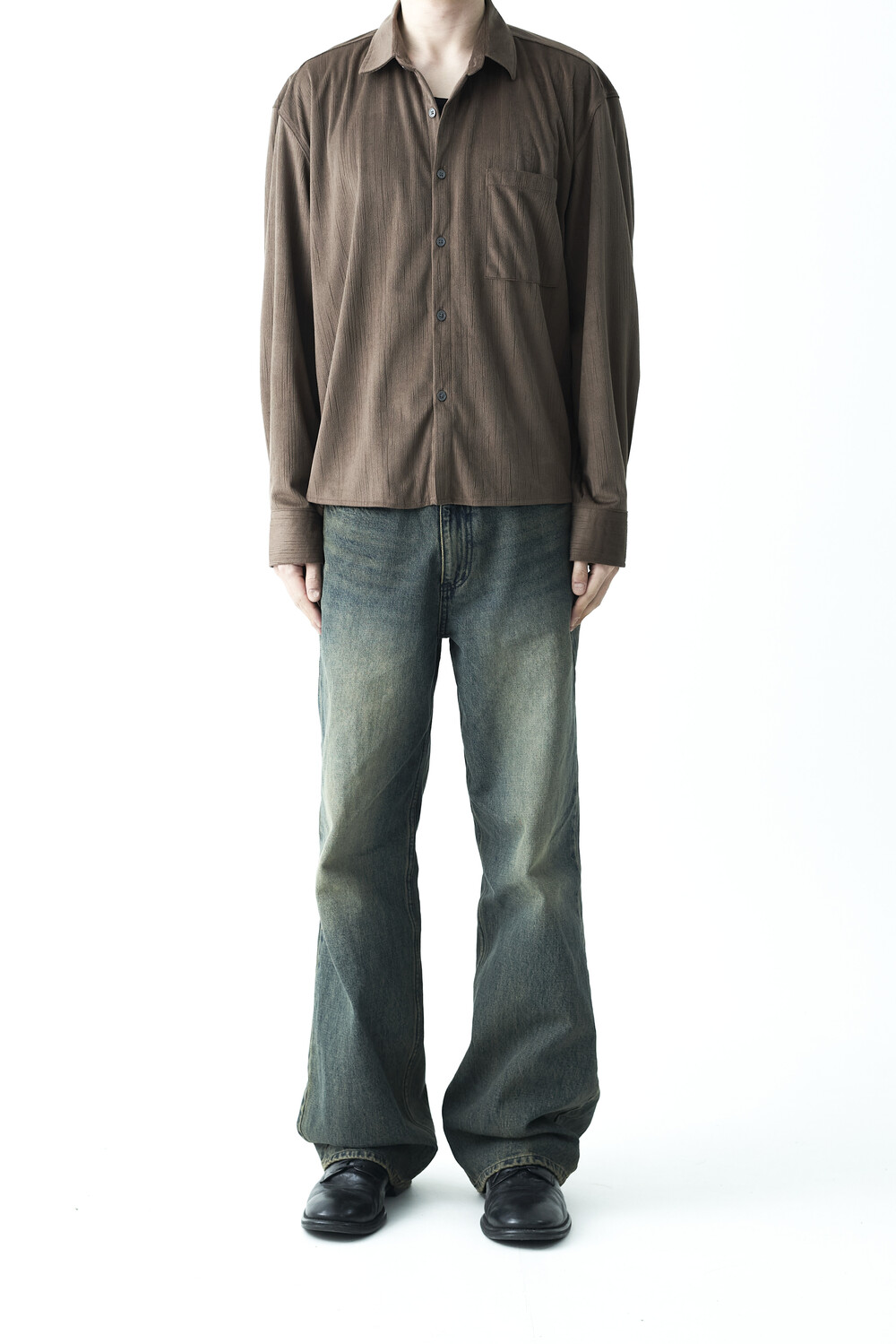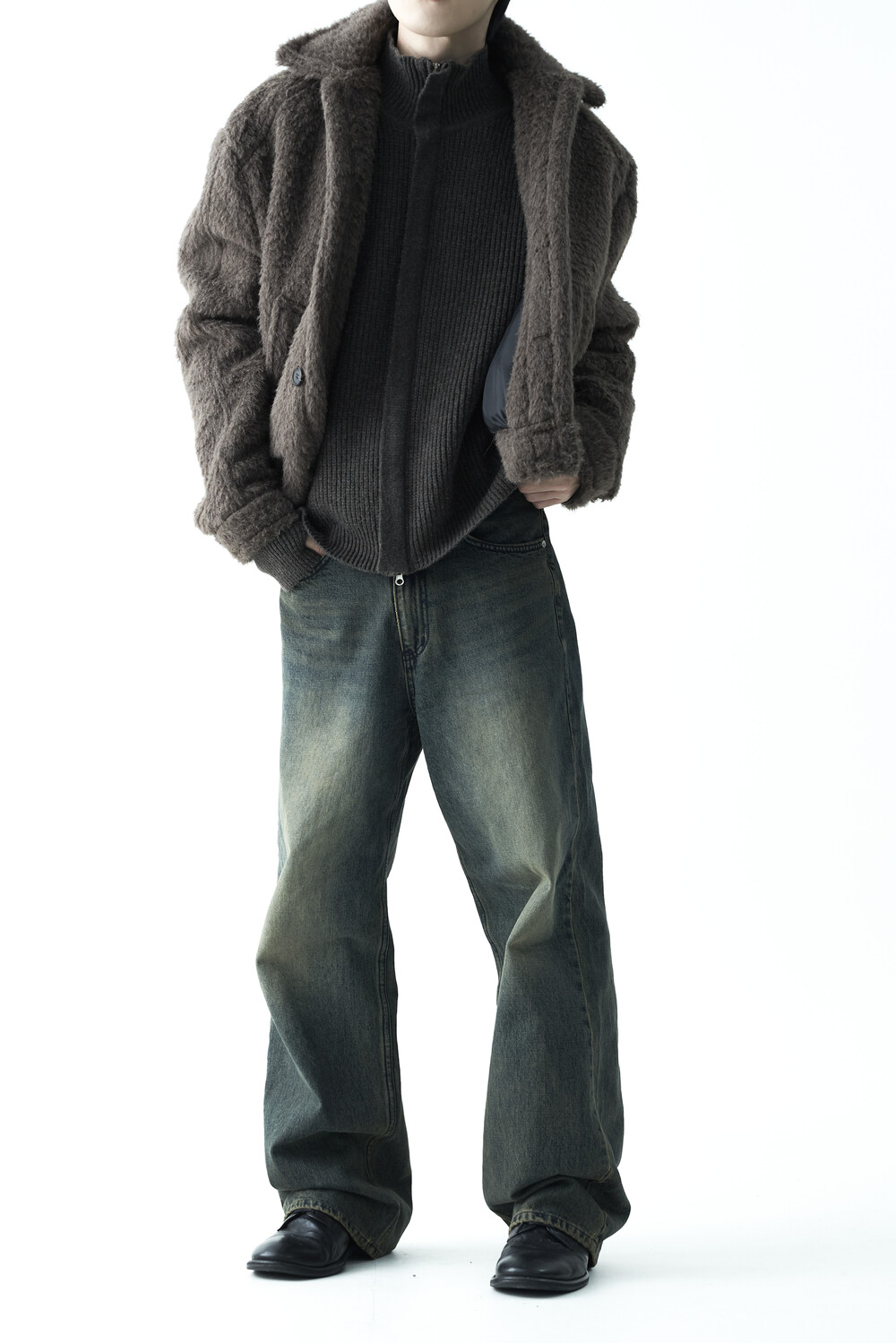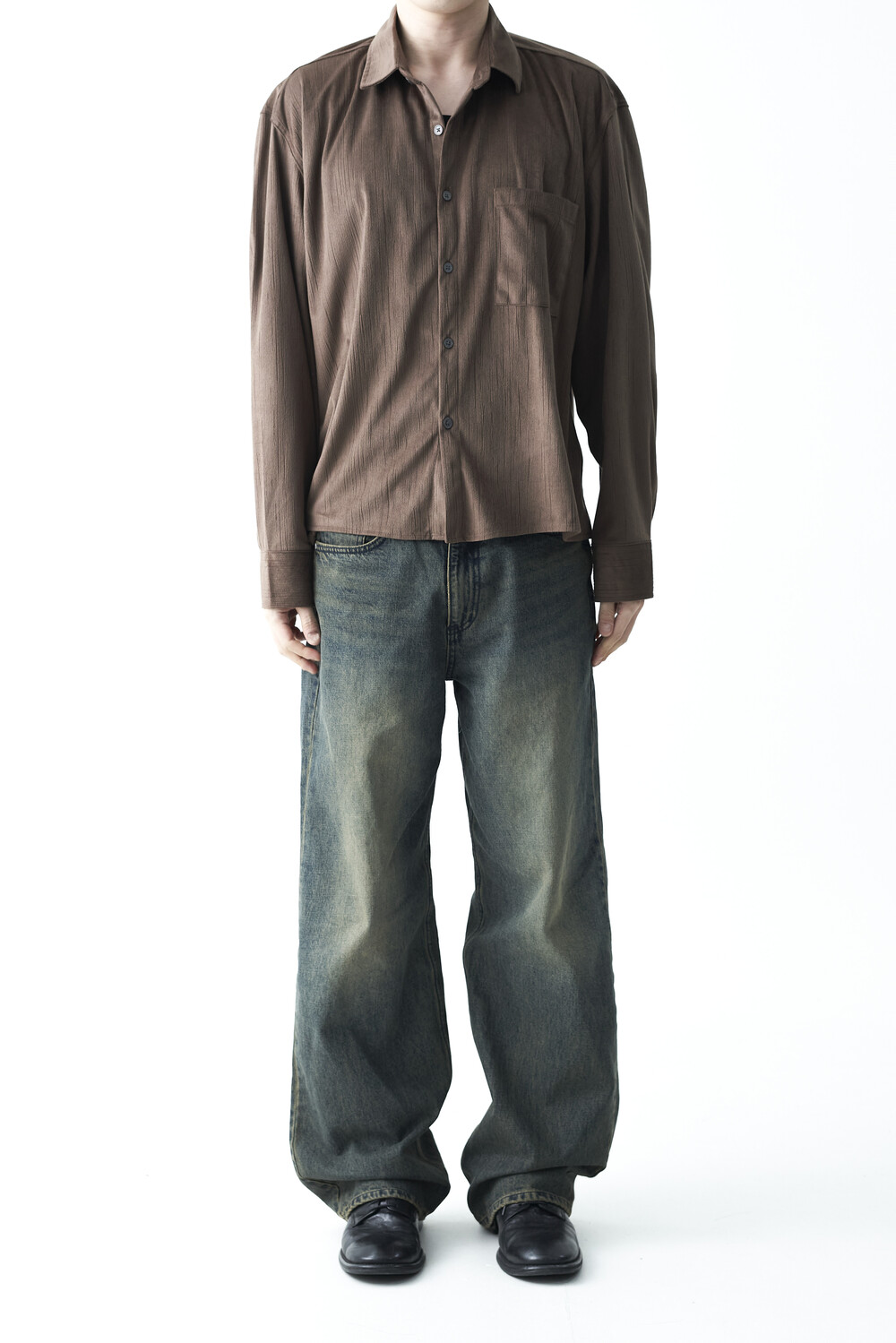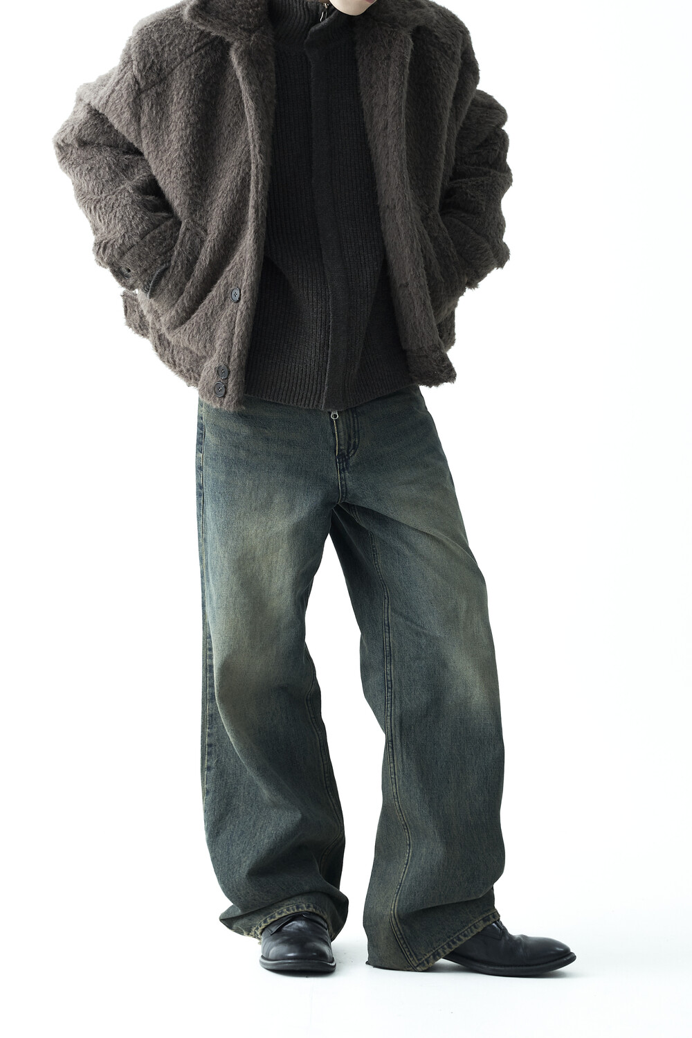 - 진청컬러 베이스에 오일리한 빈티지워싱이 적용되어 유니크한 컬러감을 표현한 세미와이드 데님 팬츠 제품입니다. 과하지 않은 와이드 핏으로 누구나 부담없이 착용하실 수 있습니다.