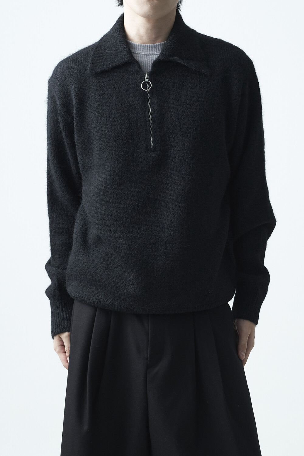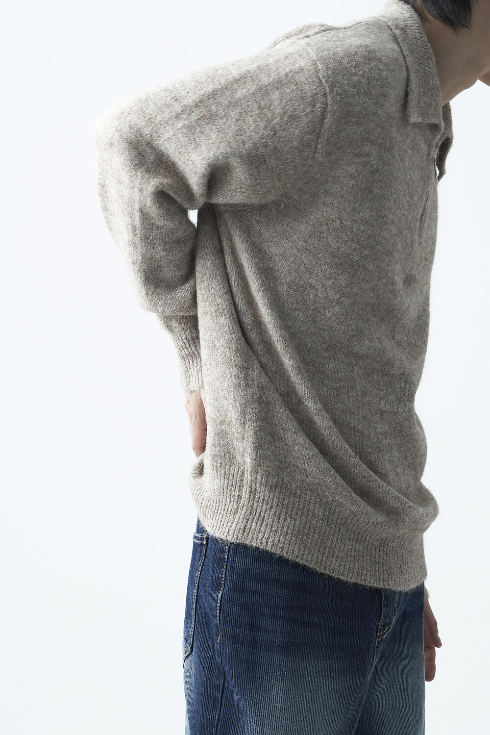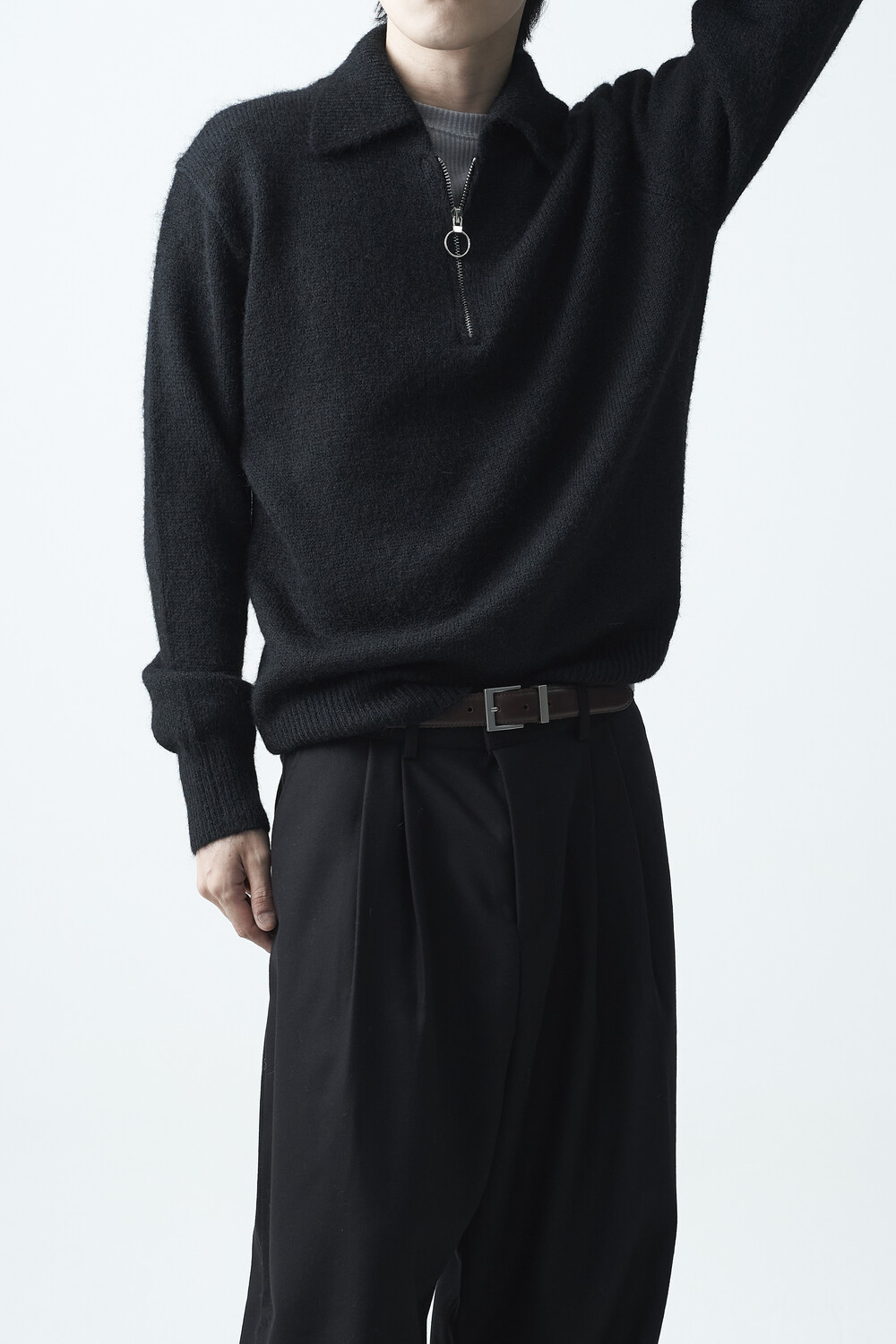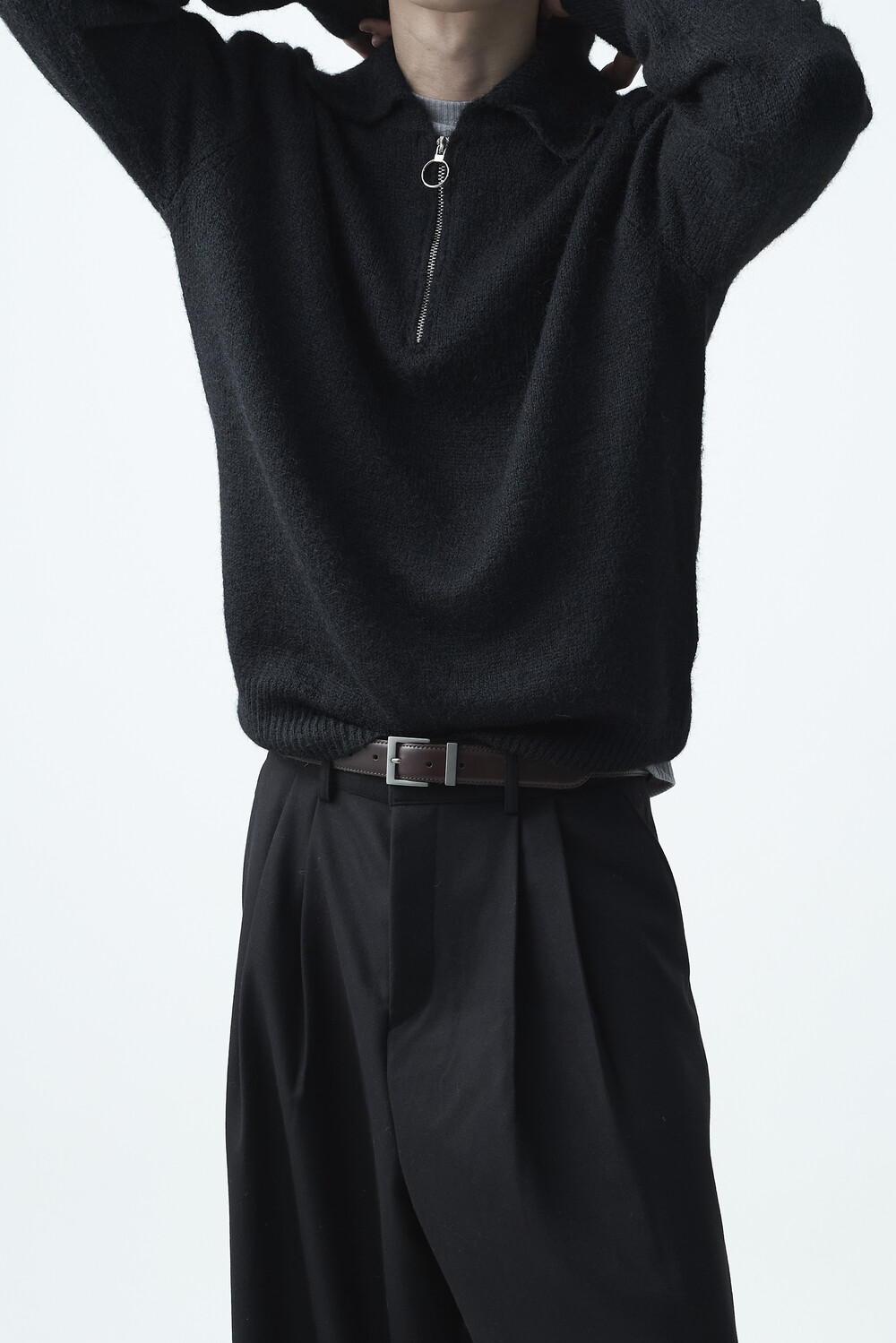 - 보카시 반집업 카라 니트 제품으로 오버한 카라라인이 유니크하게 적용되었습니다. 스판 소재 탄력감과 울/모 소재감의 따뜻한 보온성으로 겨울철 다양한 레이어드 코디가 가능하며 단품으로도 충분히 매력적인 아웃핏을 연출하실 수 있습니다.