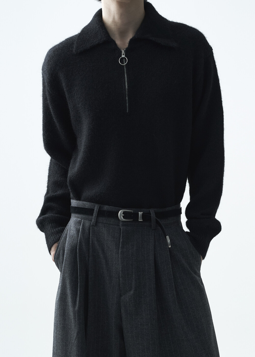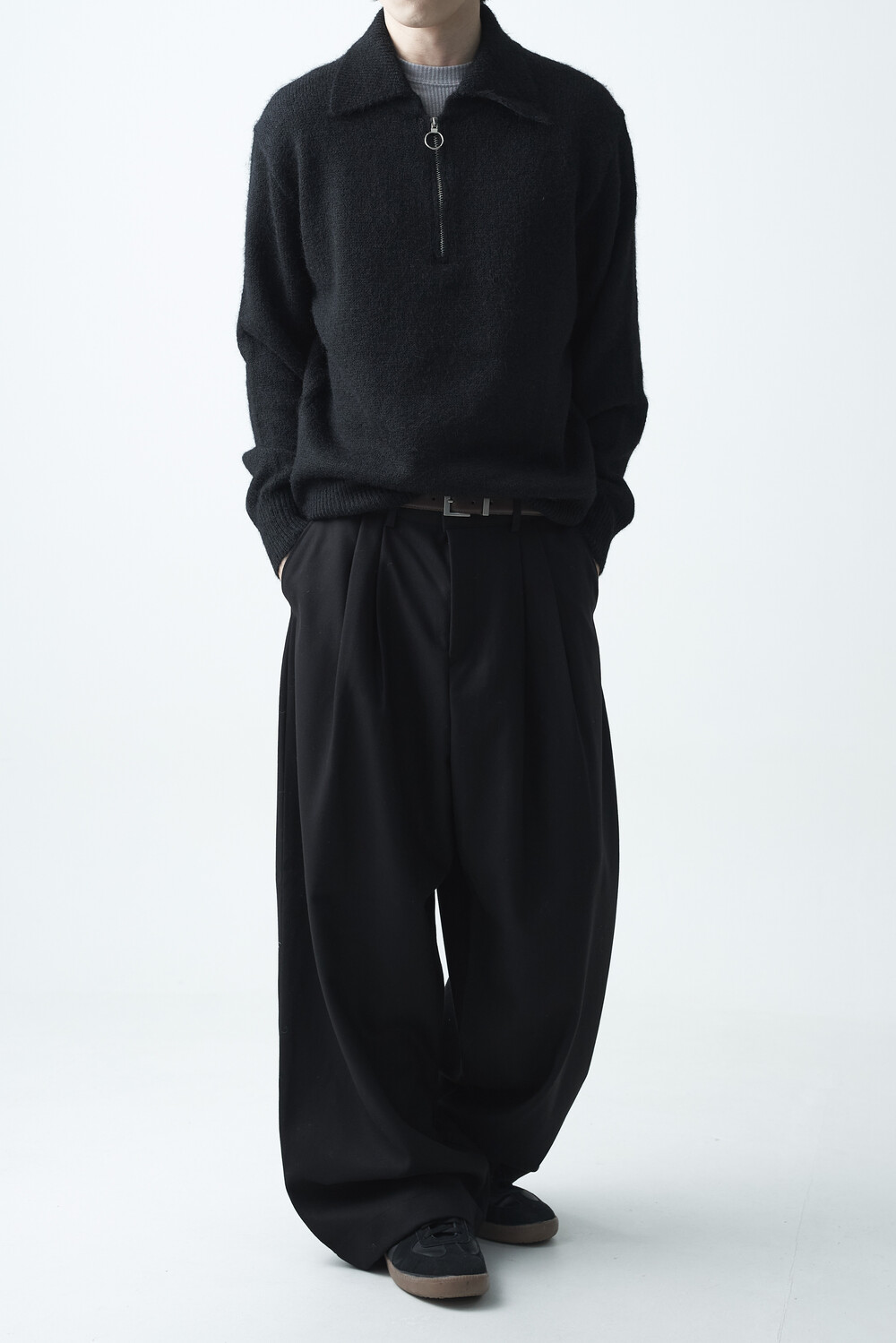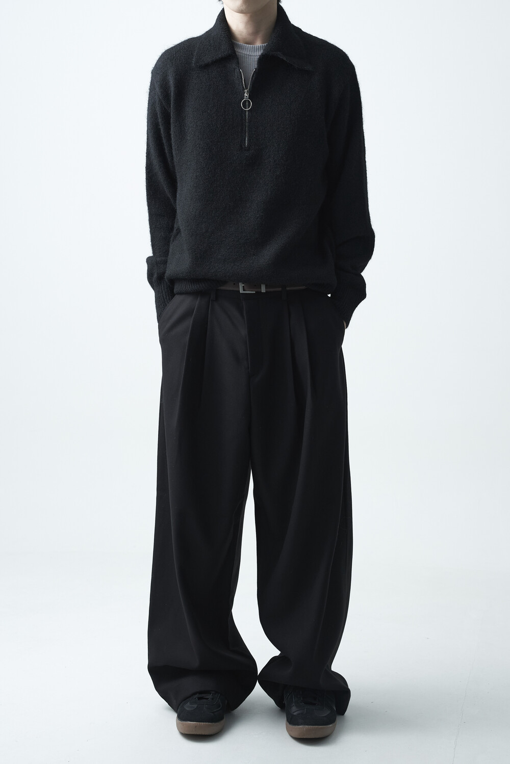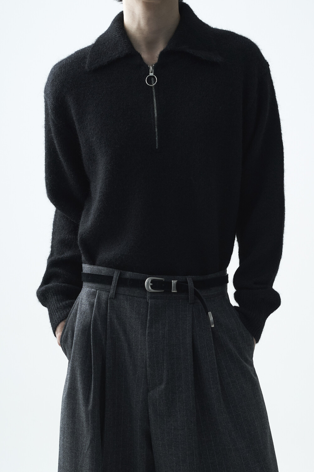 - 보카시 반집업 카라 니트 제품으로 오버한 카라라인이 유니크하게 적용되었습니다. 스판 소재 탄력감과 울/모 소재감의 따뜻한 보온성으로 겨울철 다양한 레이어드 코디가 가능하며 단품으로도 충분히 매력적인 아웃핏을 연출하실 수 있습니다.