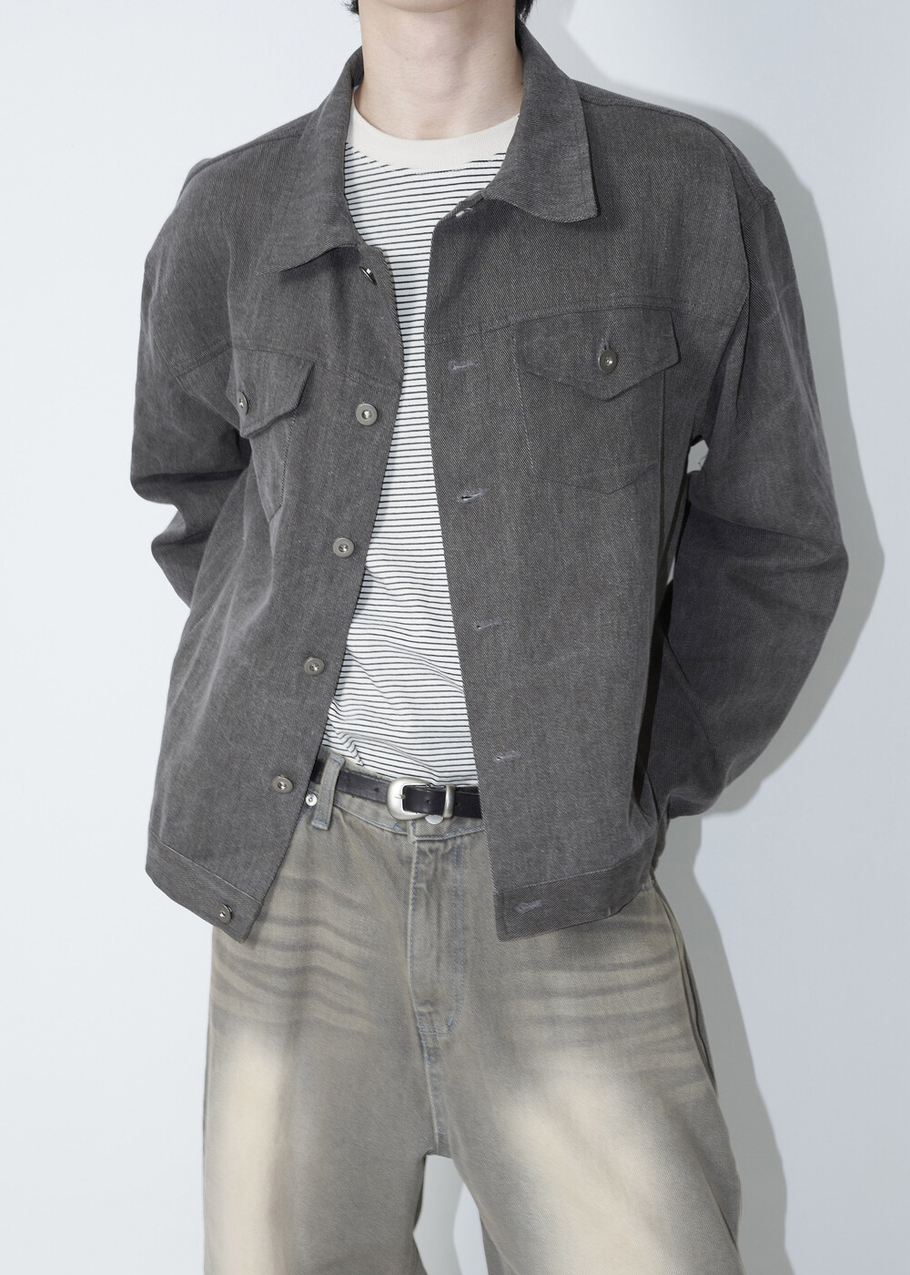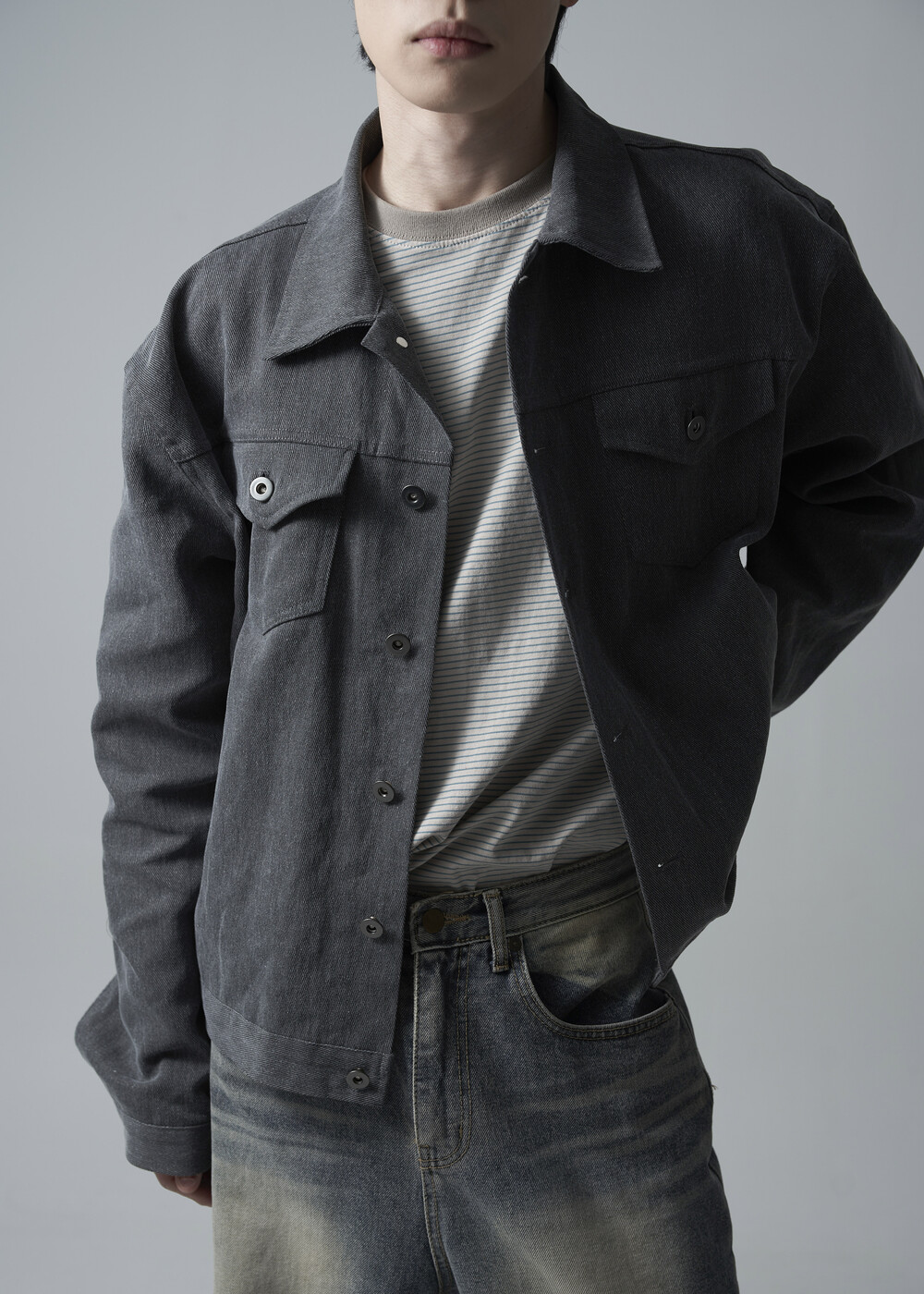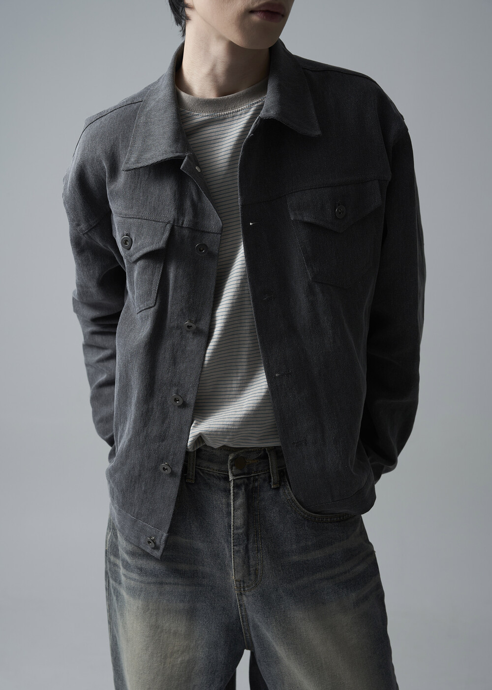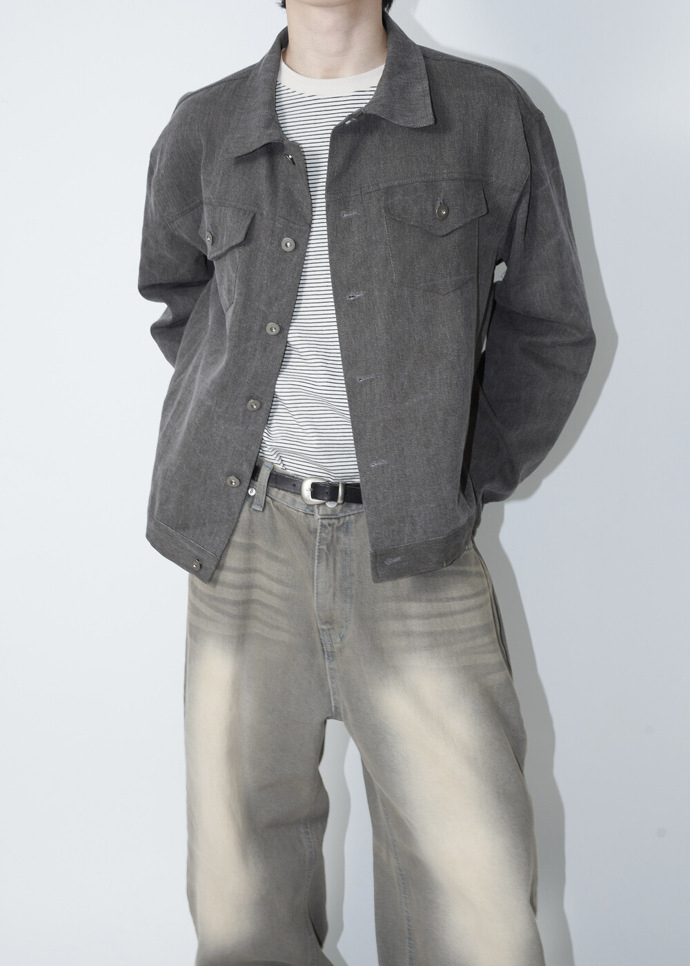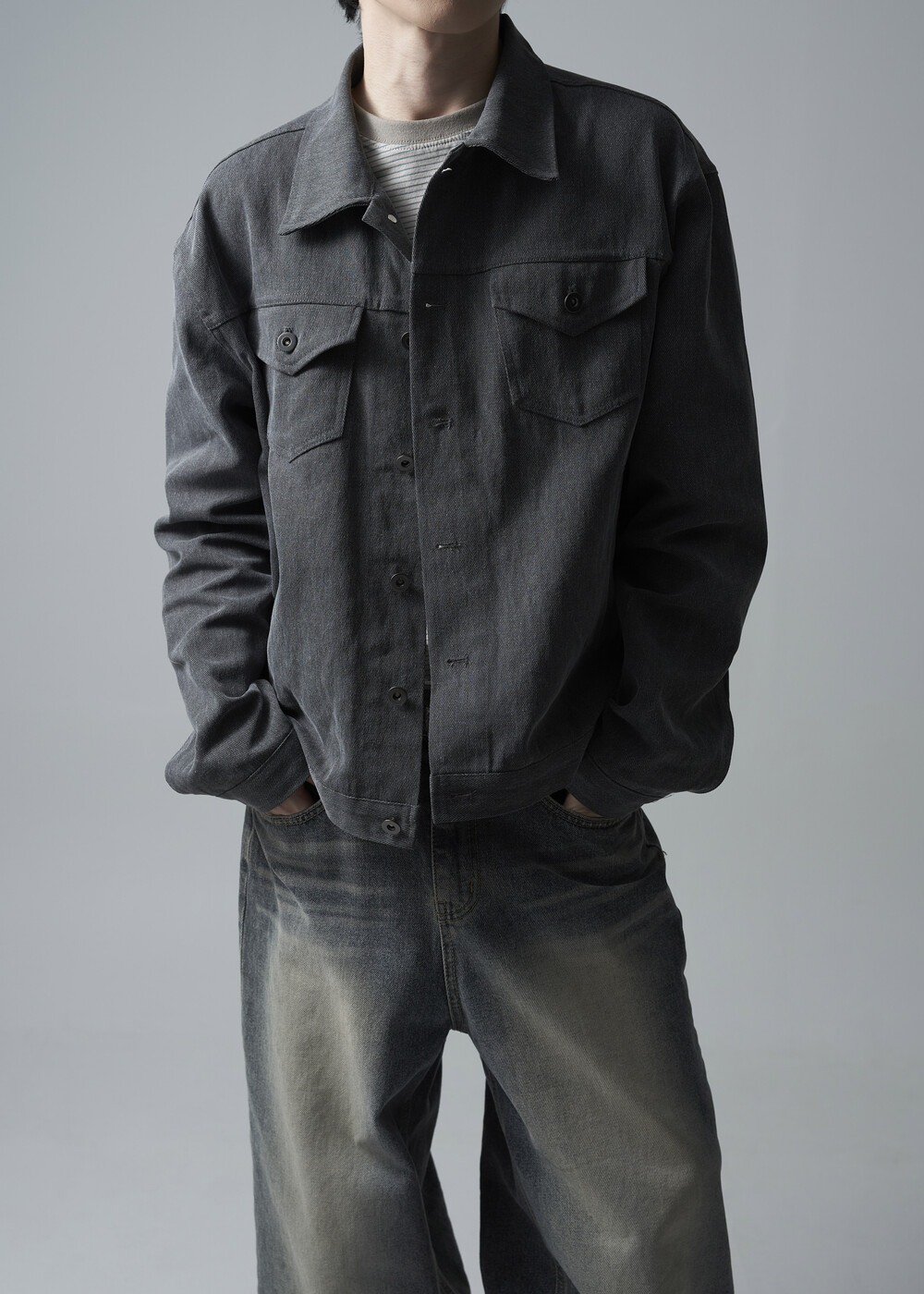 기존 코튼 소재감에 피그먼트 워싱이 더해져 한층 더 빈티지스러운 질감을 보여주는 투포켓 트러커 제품입니다.