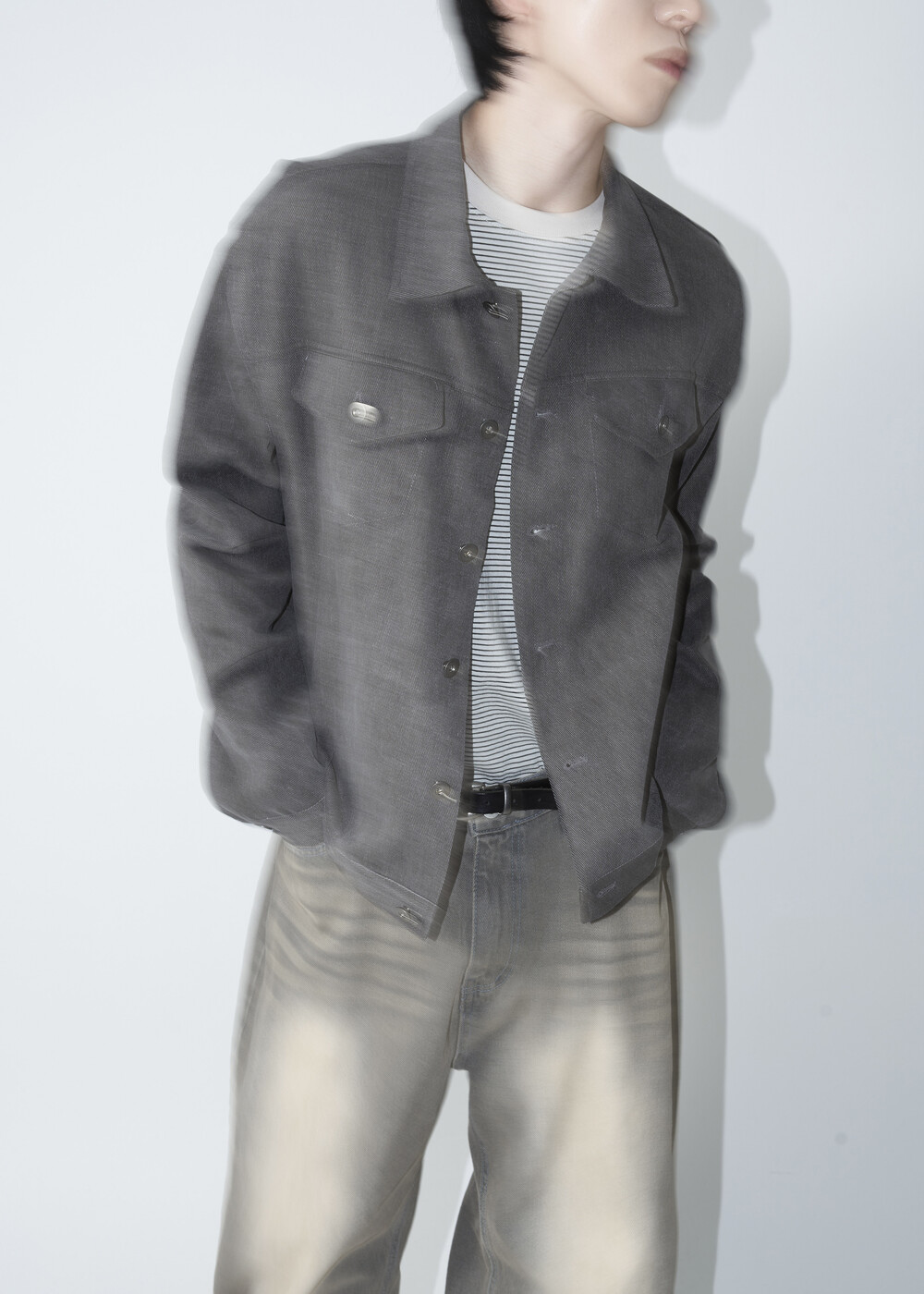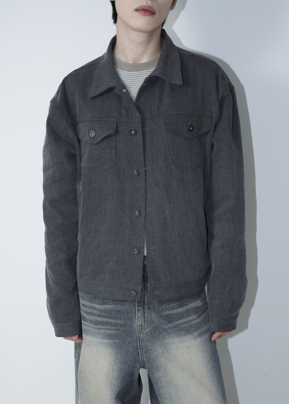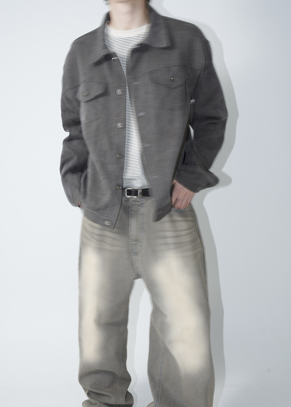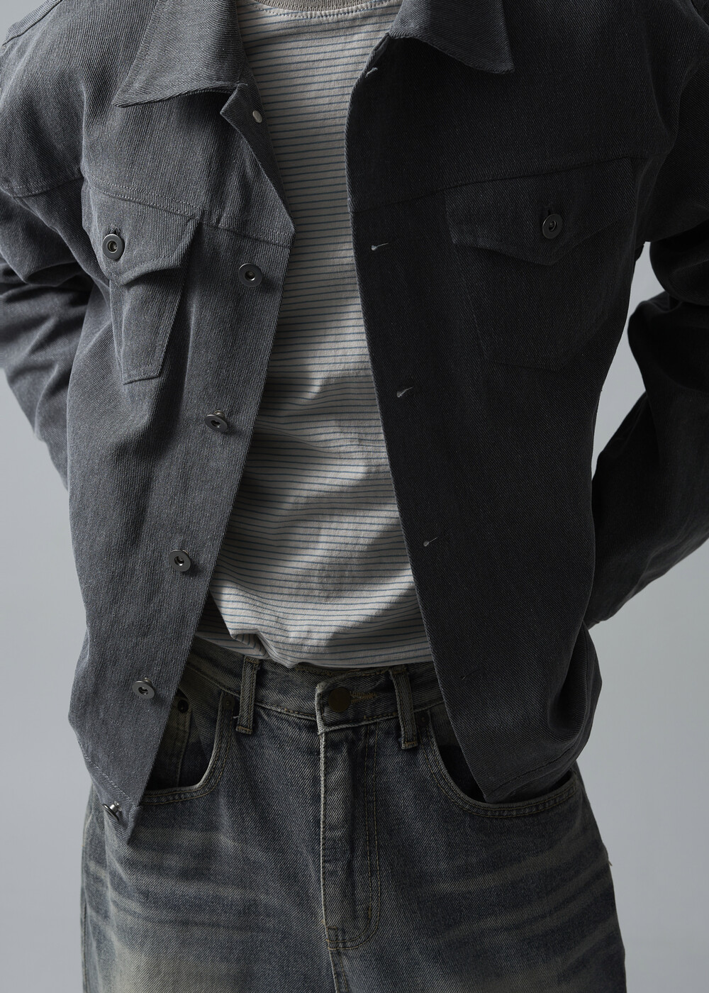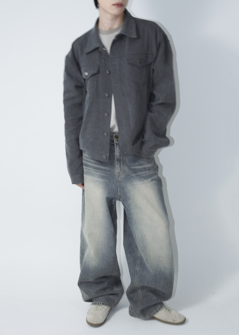기존 코튼 소재감에 피그먼트 워싱이 더해져 한층 더 빈티지스러운 질감을 보여주는 투포켓 트러커 제품입니다.