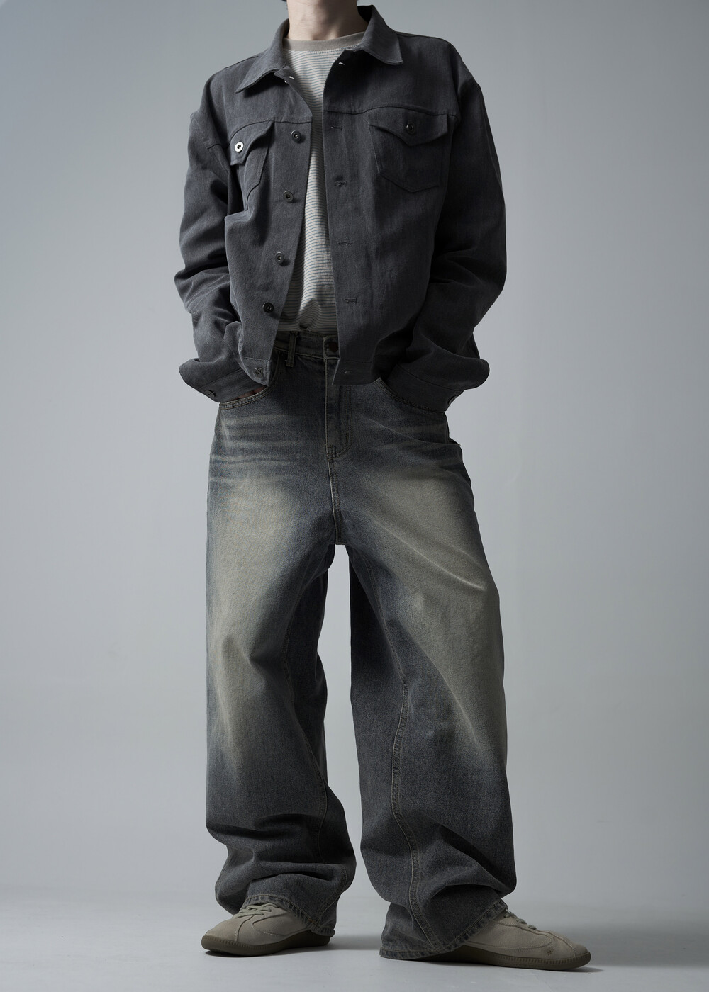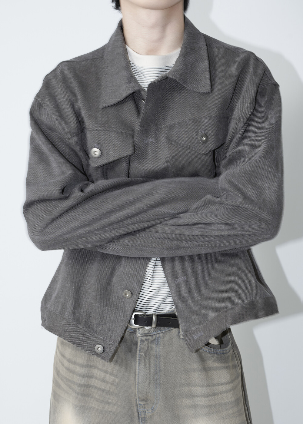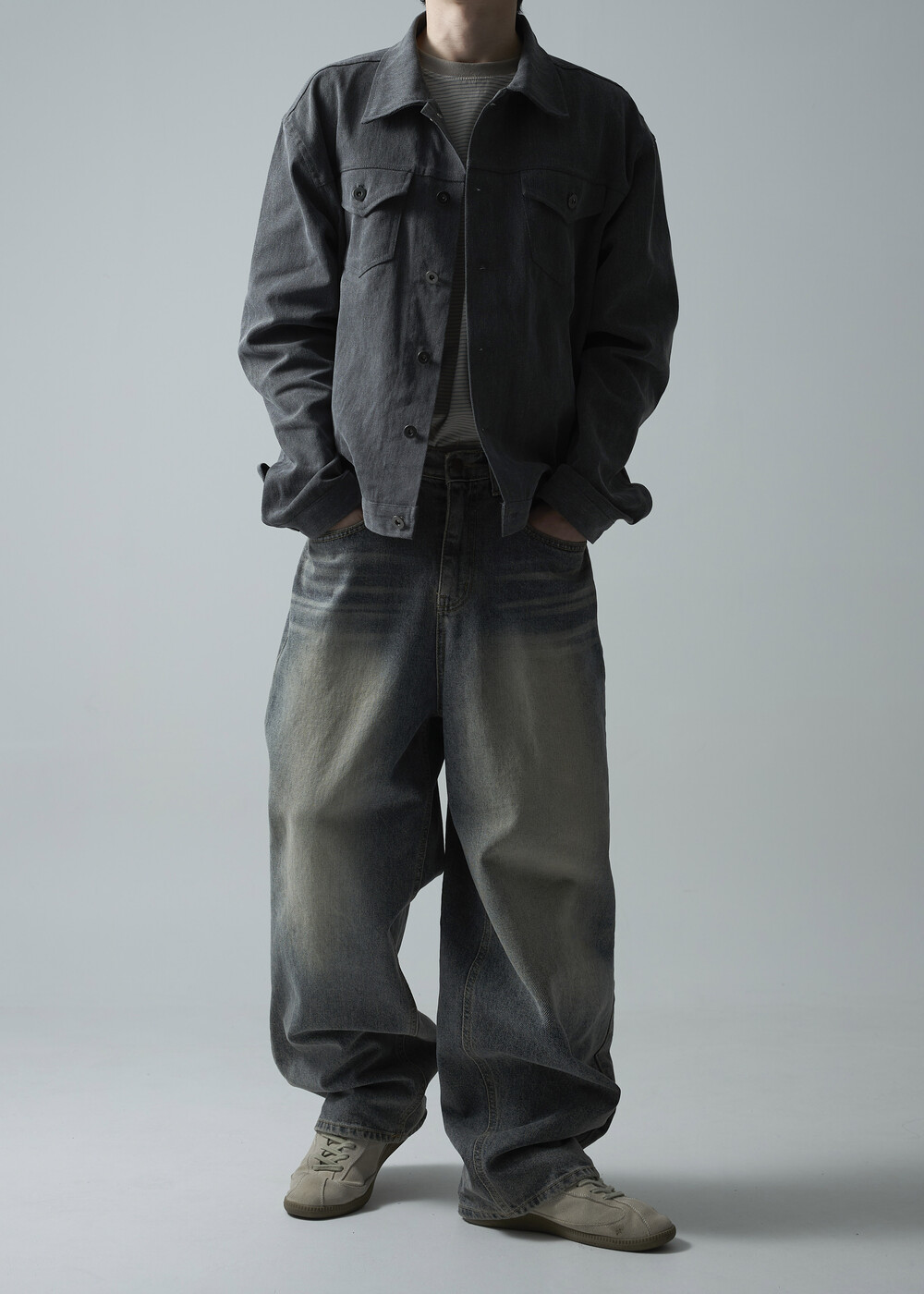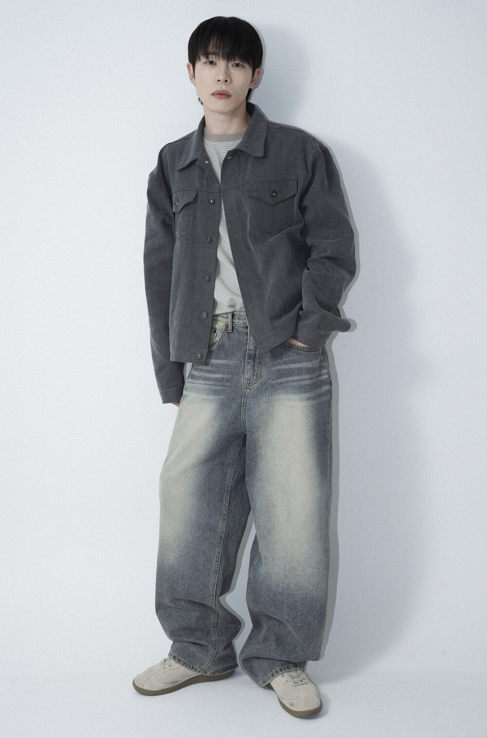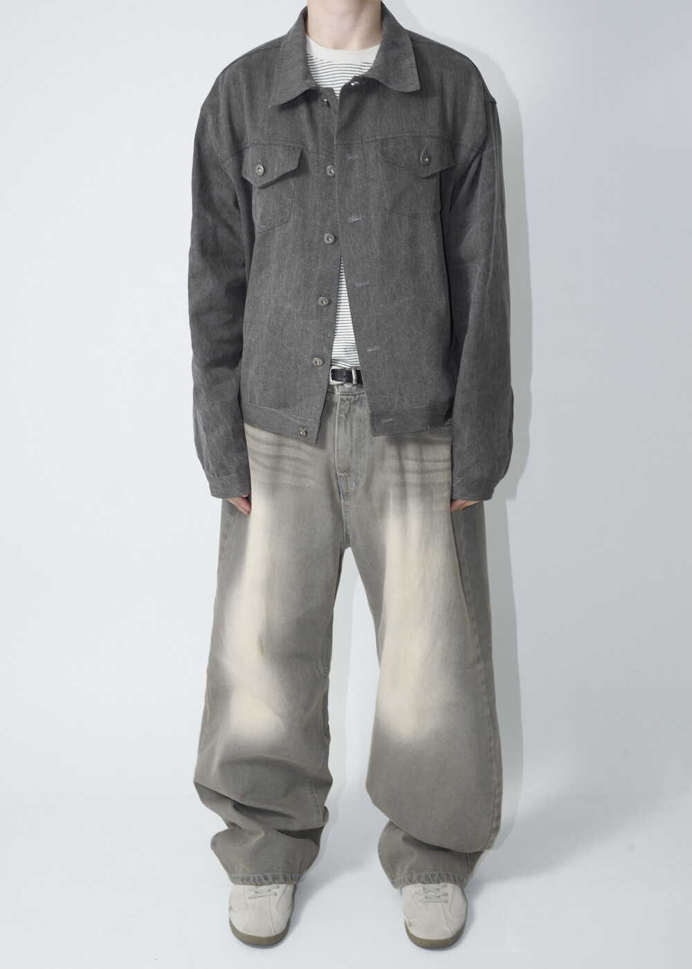 기존 코튼 소재감에 피그먼트 워싱이 더해져 한층 더 빈티지스러운 질감을 보여주는 투포켓 트러커 제품입니다.