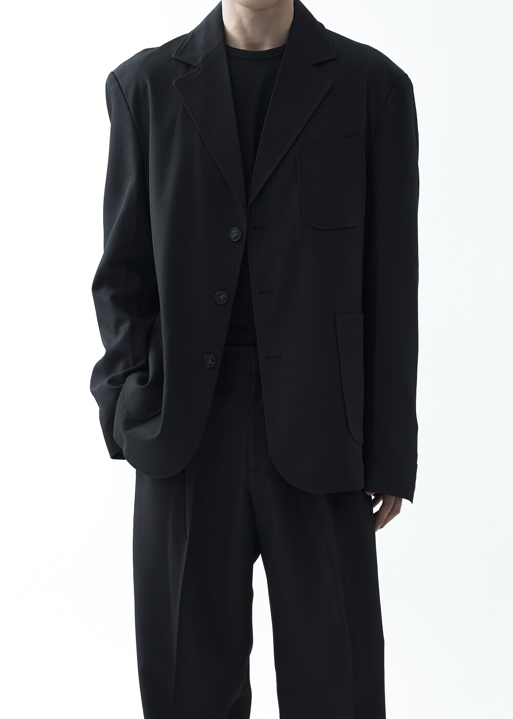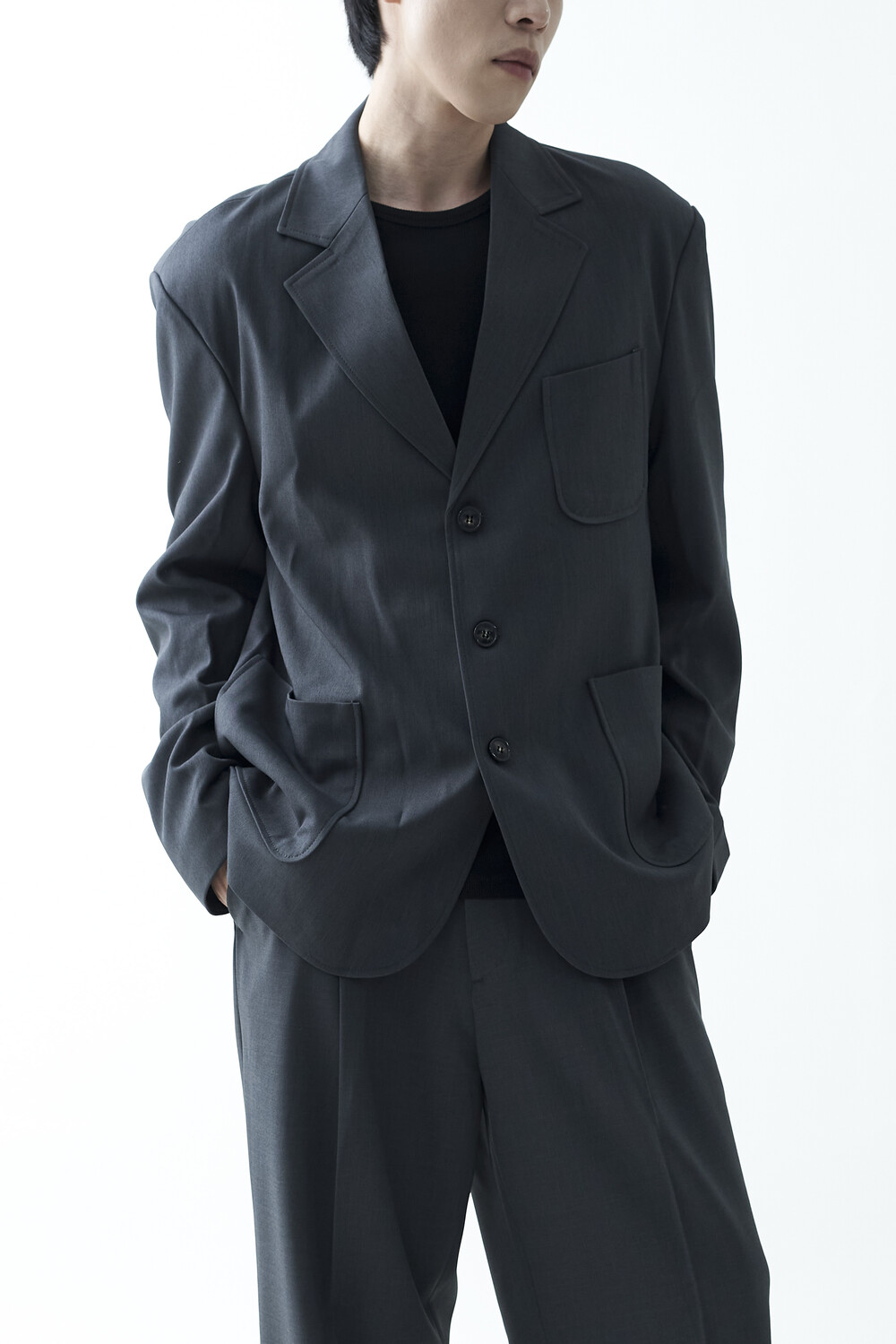 높은 밀도의 트윌 원단감으로 구성된 포켓 블레이져 자켓 제품입니다.